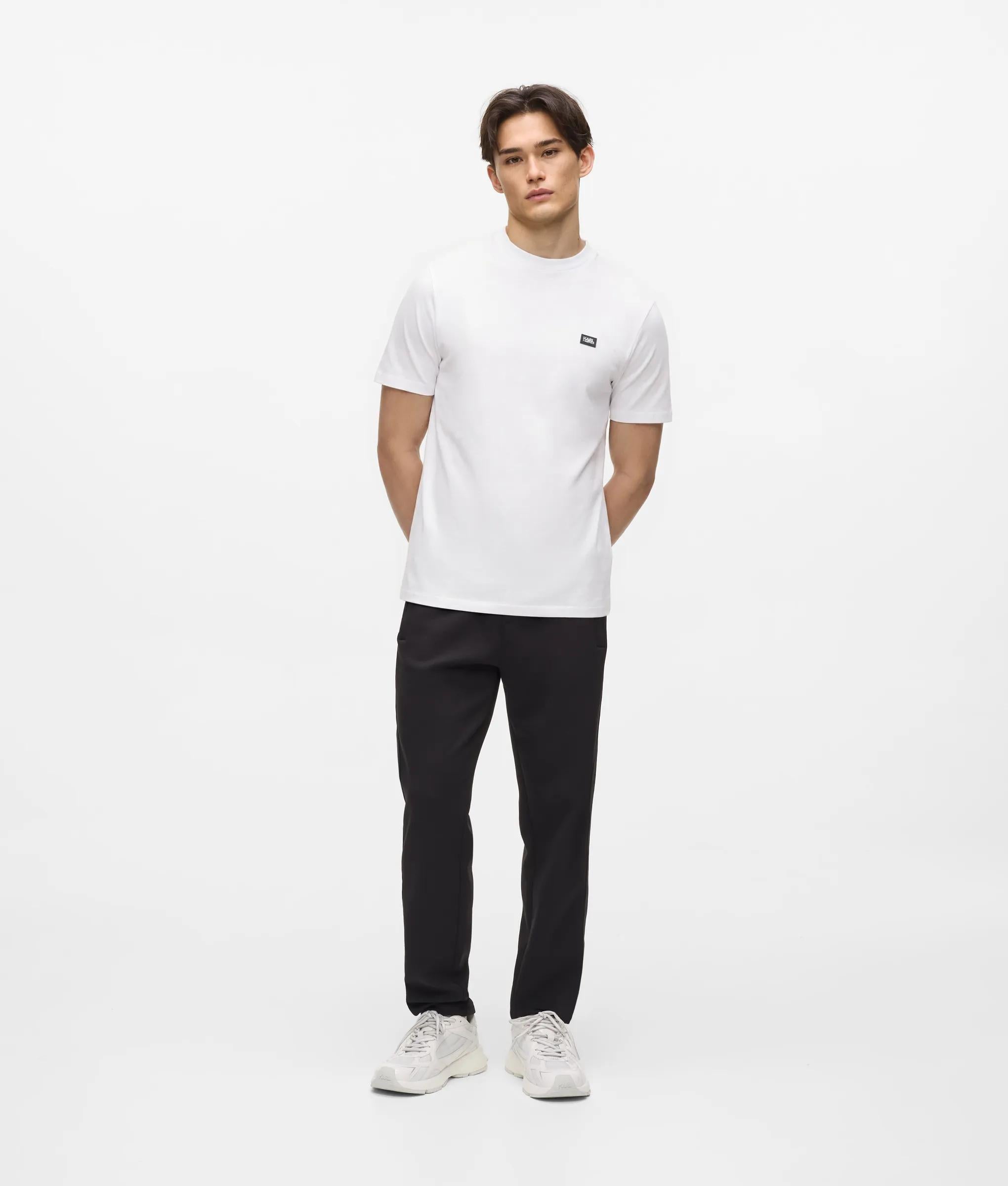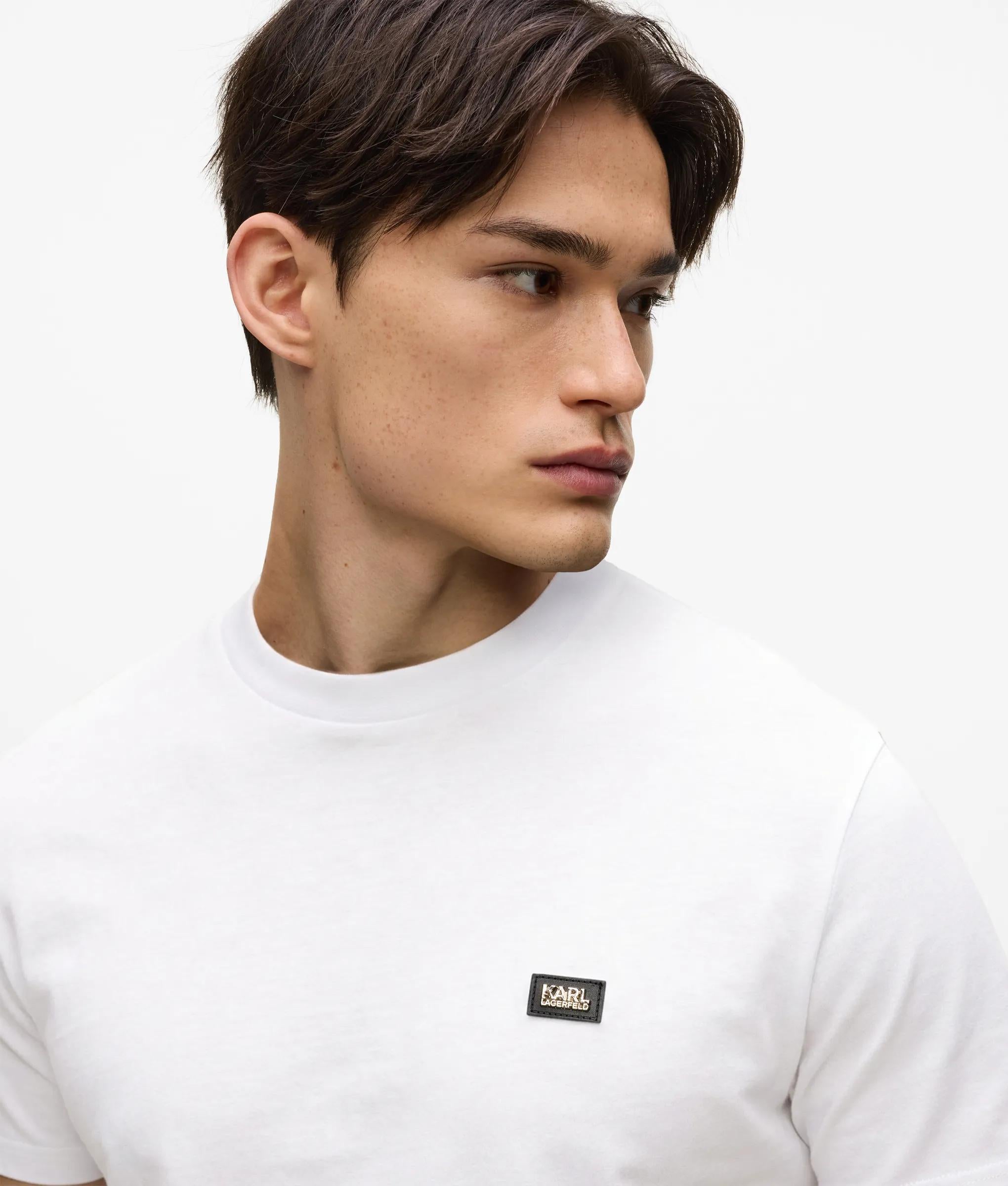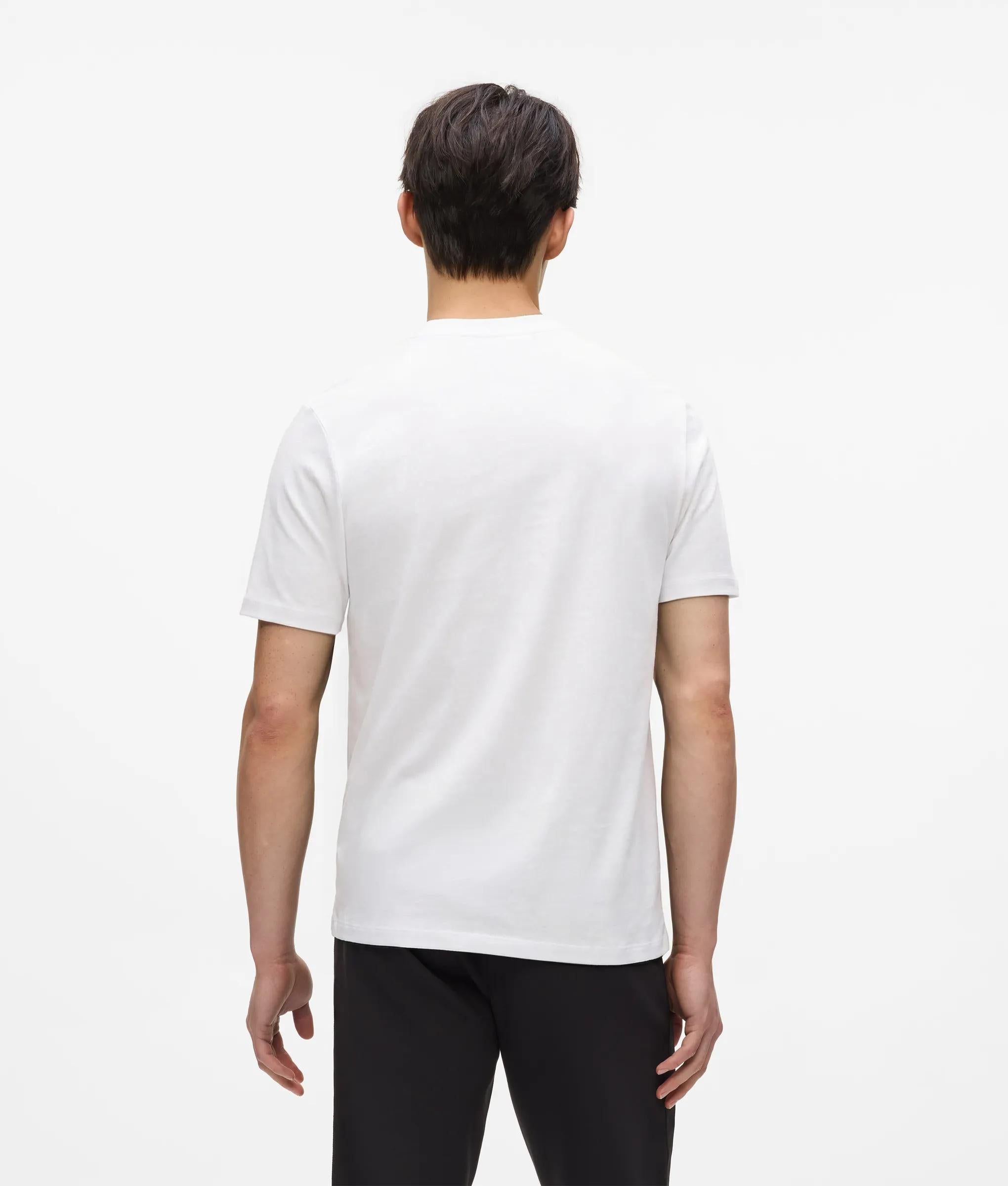 Délicatement structuré en coton extensible, ce t-shirt à col rond est orné d'un écusson discret lui apportant une touche de confiance tranquille. Parfait pour une tenue décontractée raffinée.