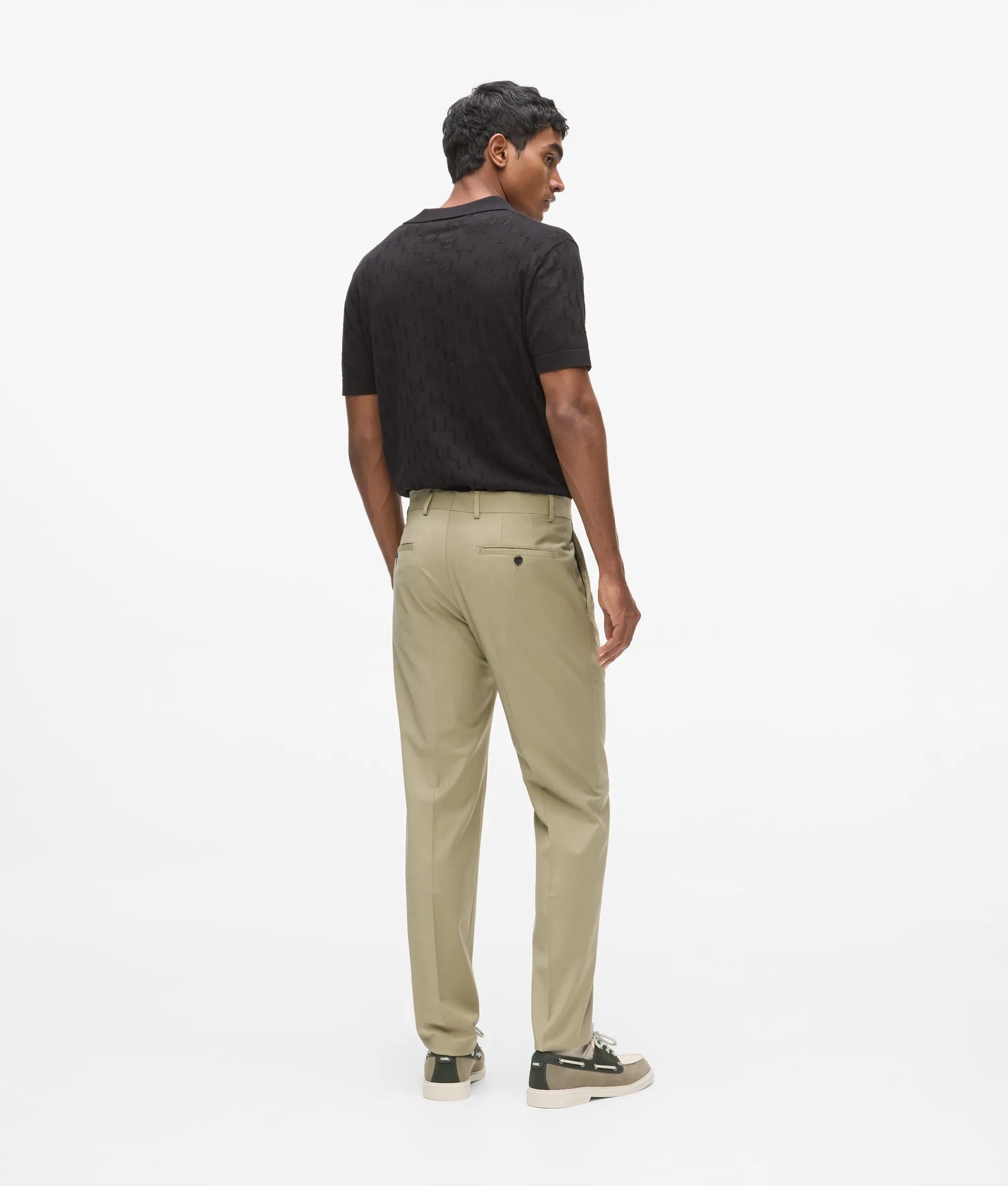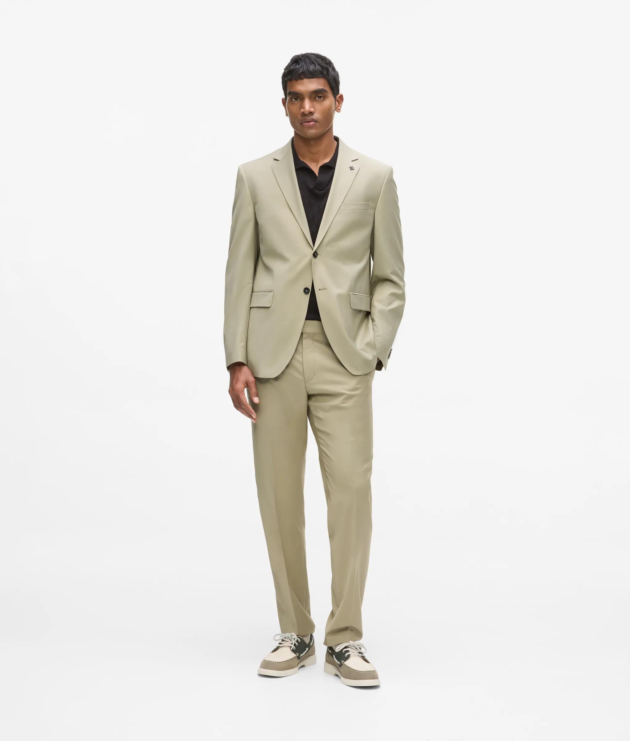 Optez pour l'élégance raffinée de ce pantalon à la coupe moderne, taillé pour souligner votre silhouette. Les pans latéraux inclinés et les poches plaquées boutonnées affinent le look, parfaitement associé au blazer à la coupe slim assorti.