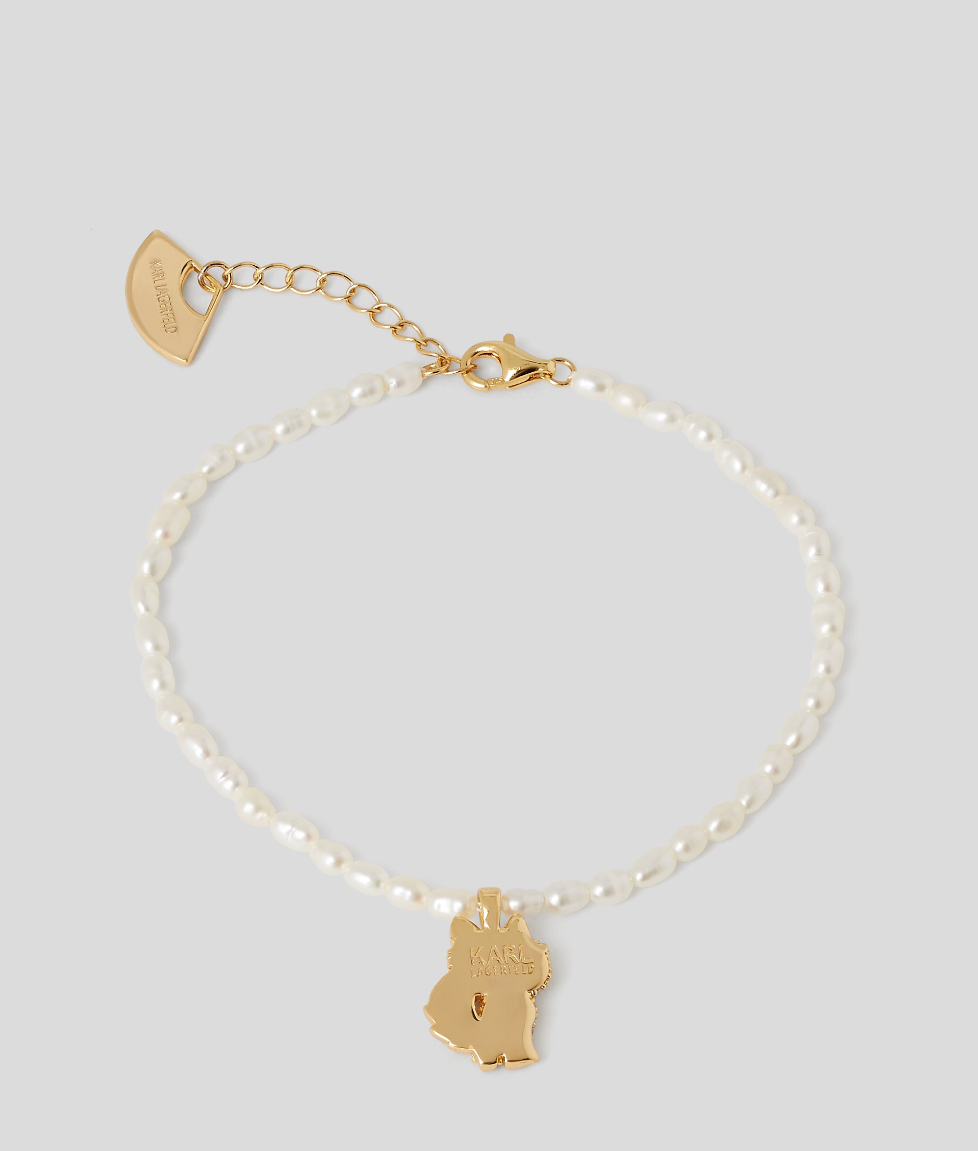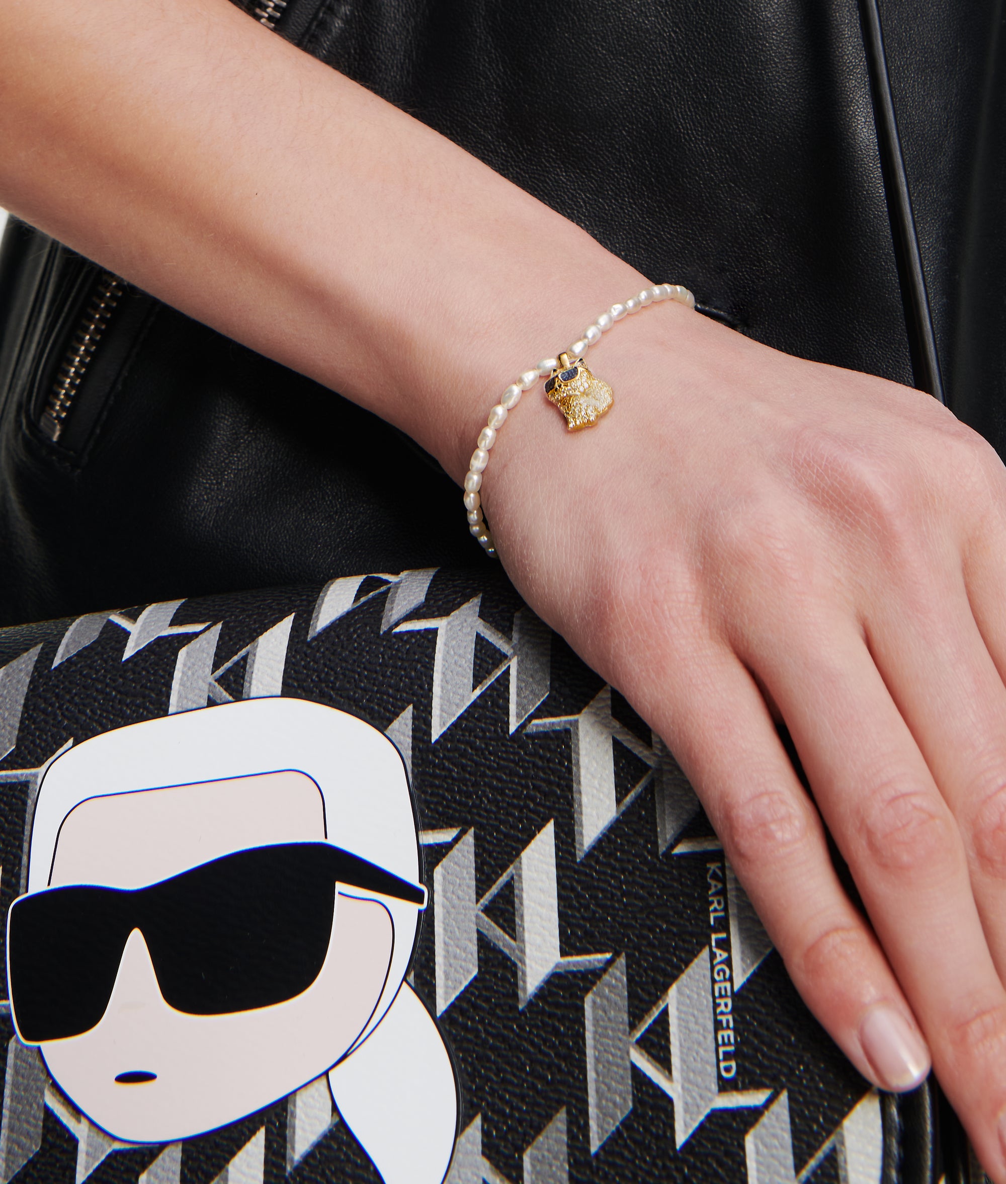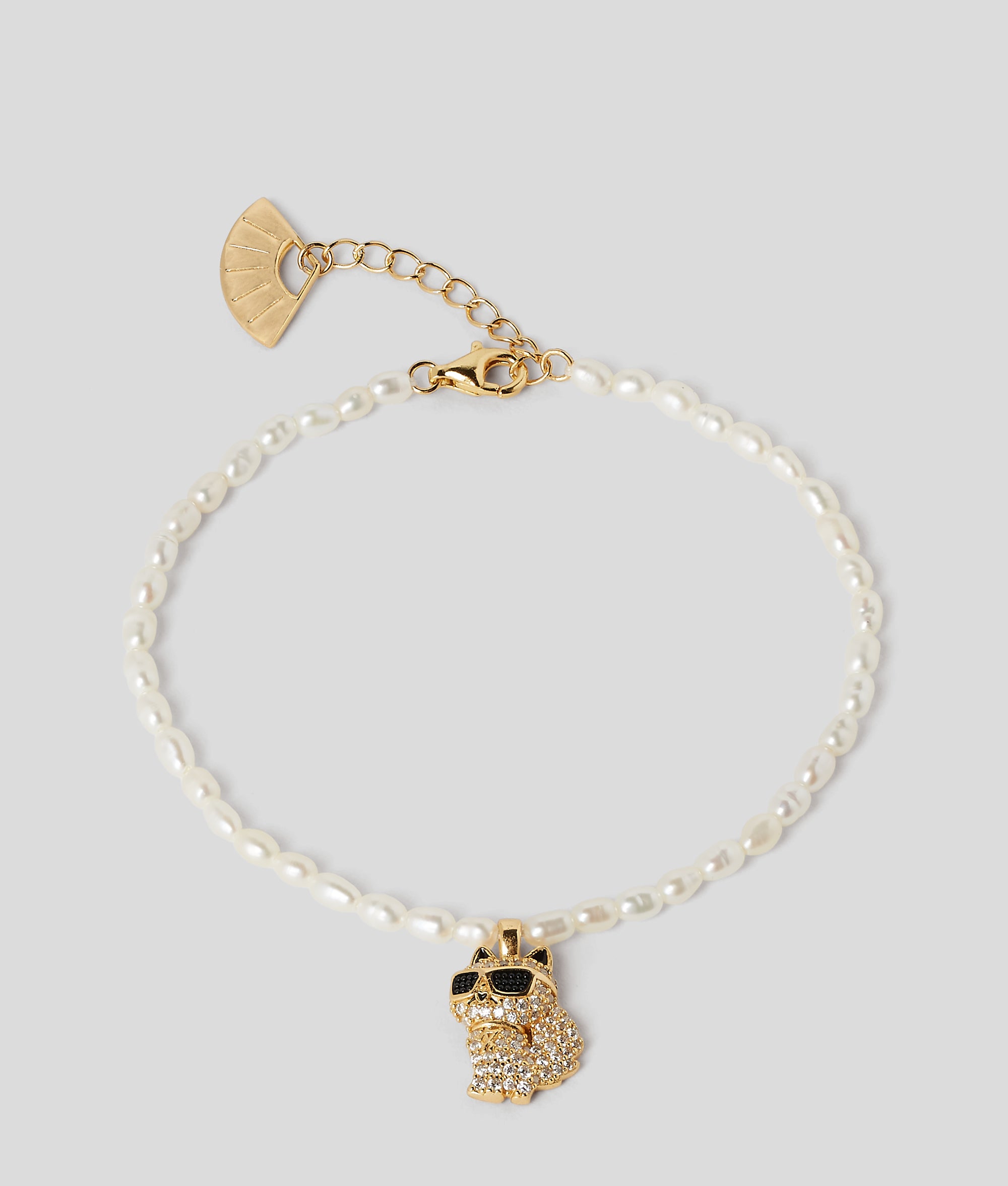 Questo elegante bracciale è caratterizzato da un charm Choupette impreziosito da micro pavé e da perle d'acqua dolce.