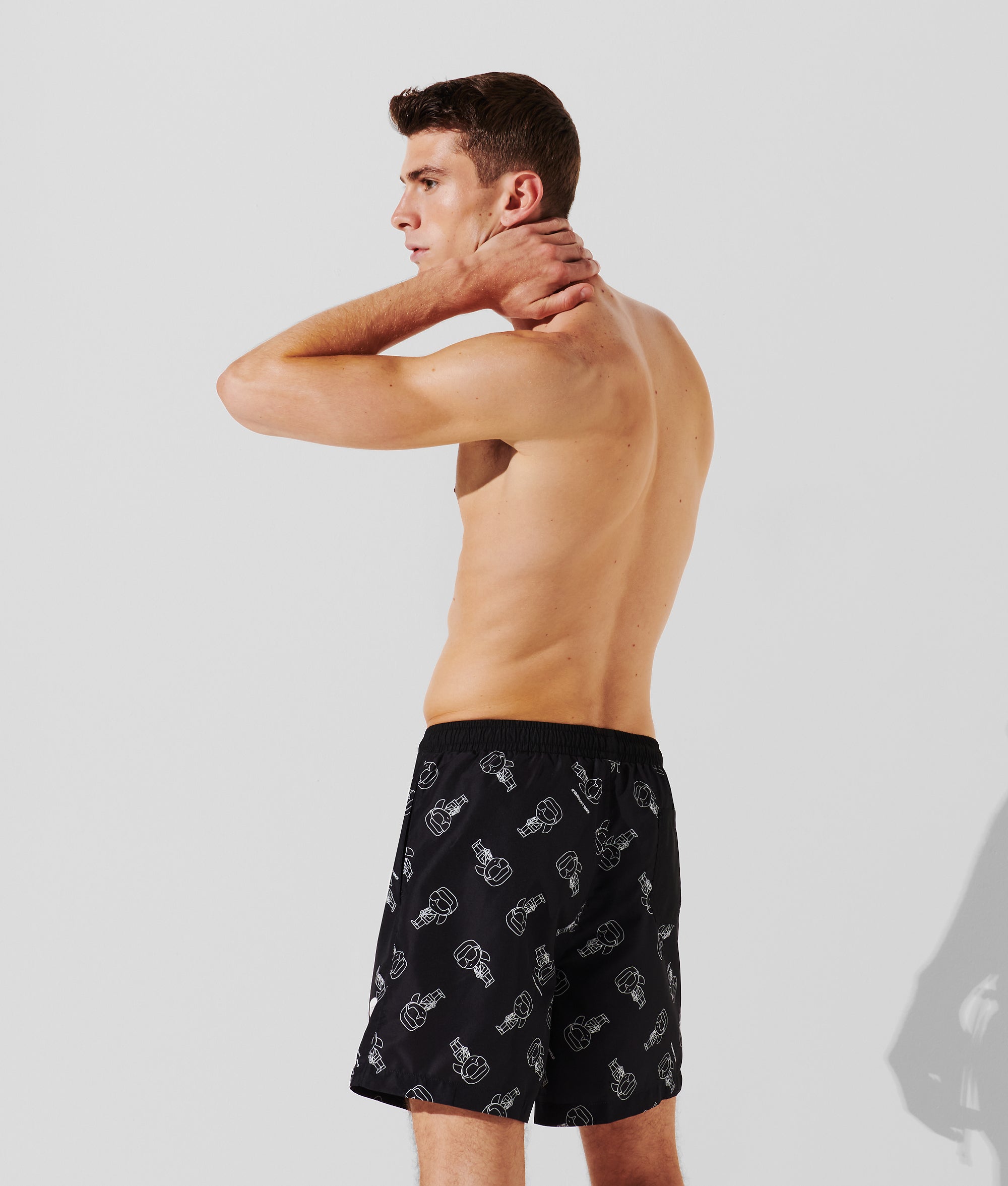 Realizzati in poliestere, questi pantaloncini da surf di media lunghezza uniscono praticità e stile; sono dotati di cordoncino in vita e slip interno in rete per un maggiore comfort. Il design IKON Karl all-over dona una nota accattivante a bordo piscina, mentre la toppa stampata sulla gamba sinistra aggiunge una finitura allegra.