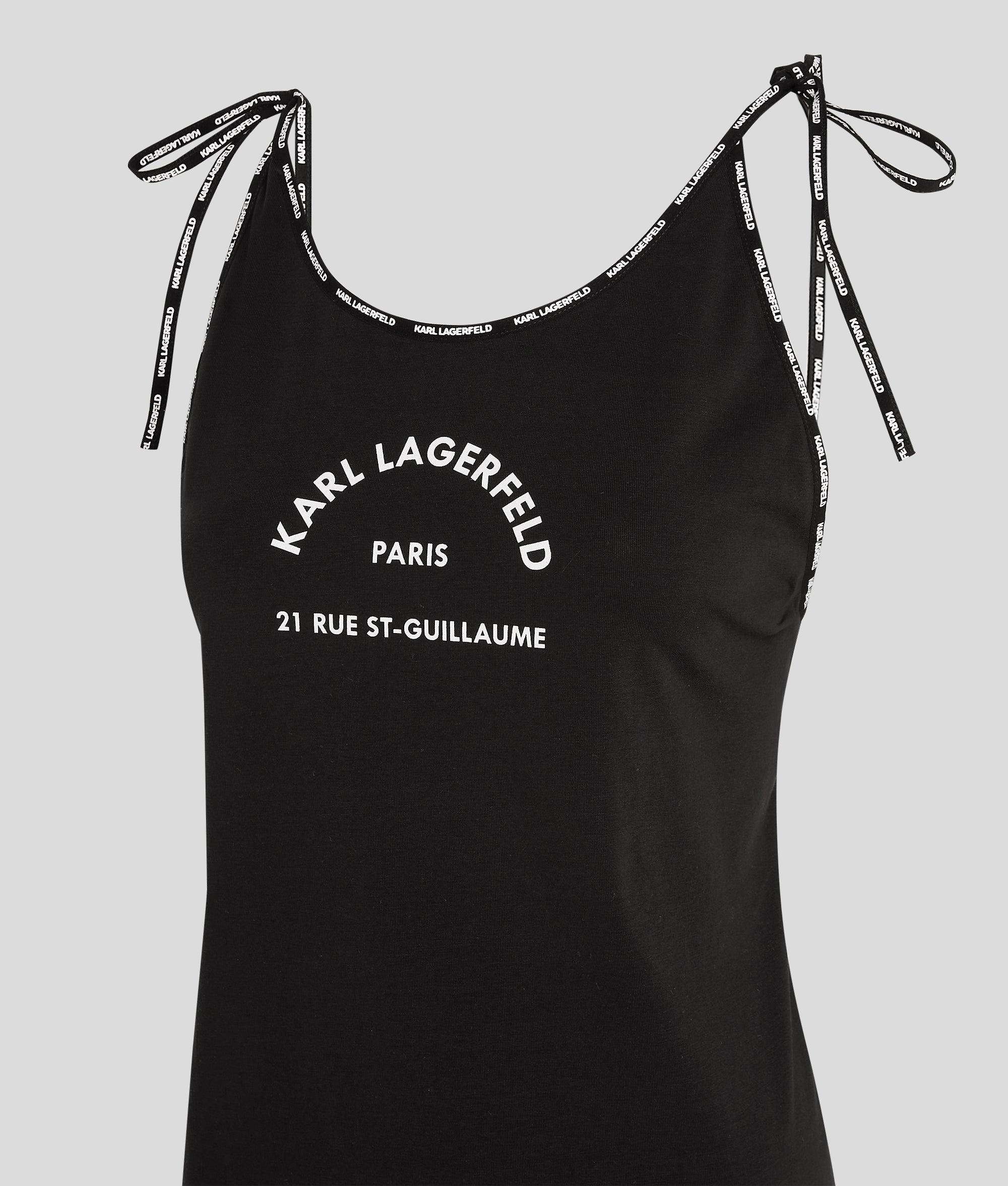 Immergiti nell'essenza dell'estate con questo copricostume in cotone biologico. Il modello corto con scollo rotondo si allinea a uno stile di vita moderno e cosmopolita, mentre le spalline incrociate sulla schiena regolabili aggiungono un tocco allegro ma al tempo stesso sofisticato. Gli accenti con logo KARL lungo le spalline e lo scollo, e il logo Rue St-Guillaume sul petto completano questo capo inconfondibile, confermandone lo status di capo essenziale per il guardaroba e non solo.