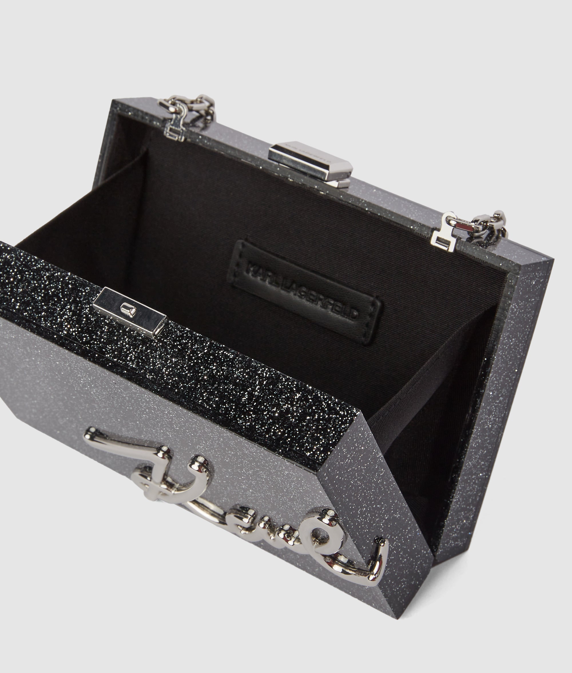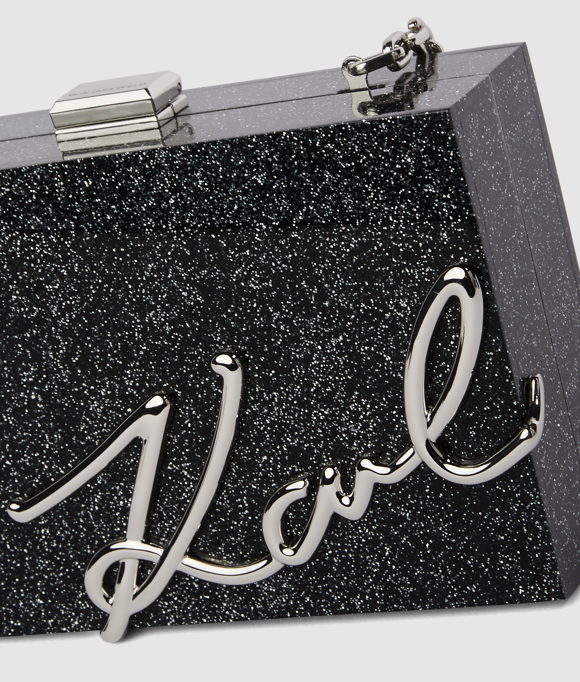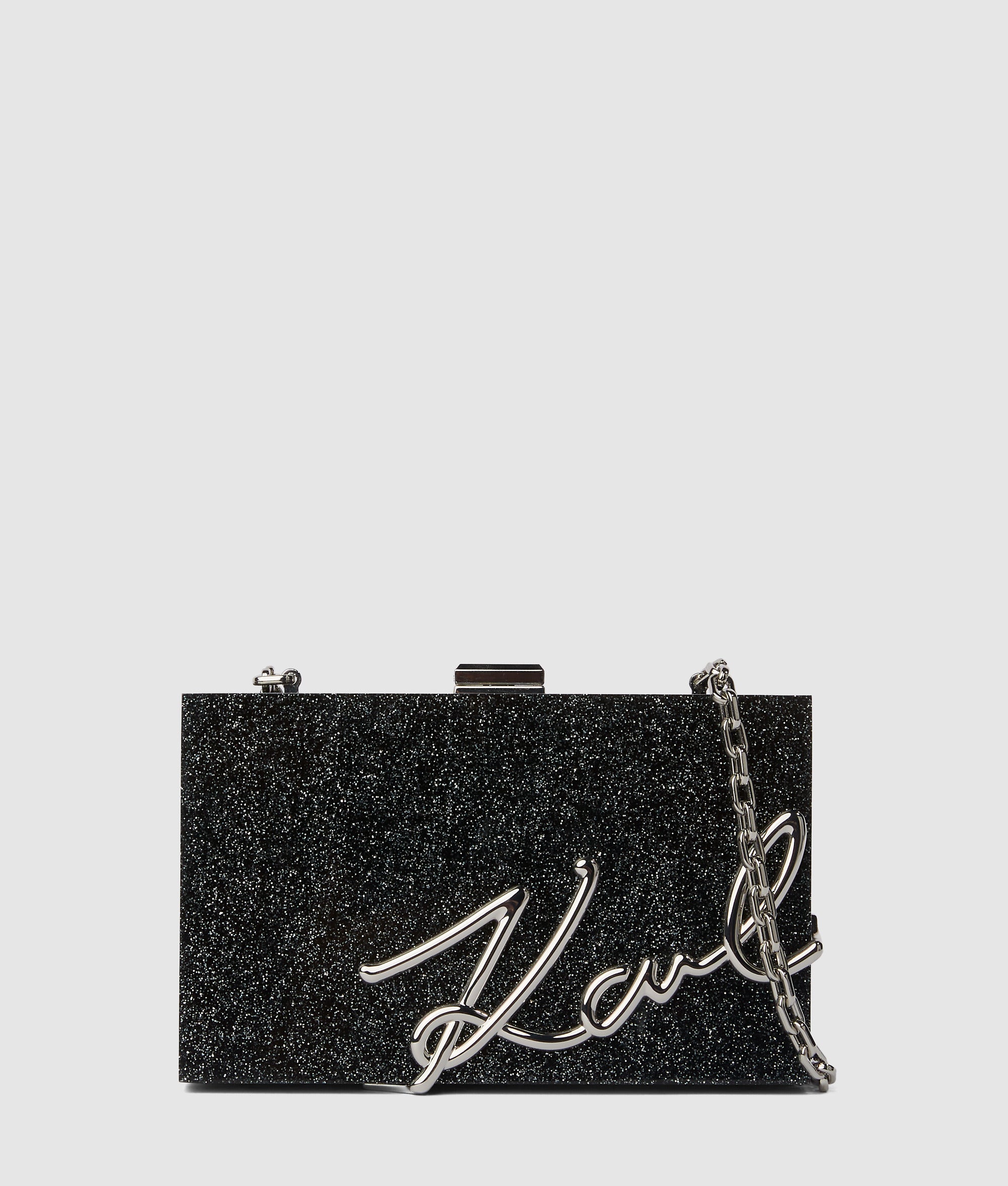 CHF229Questa elegante clutch quadrata vanta una linea moderna, impreziosita da uno straordinario logo KARL Signature 3D. Una tracolla con catena staccabile permette di trasportarla come preferisci, perfetta per ogni party di stagione.
