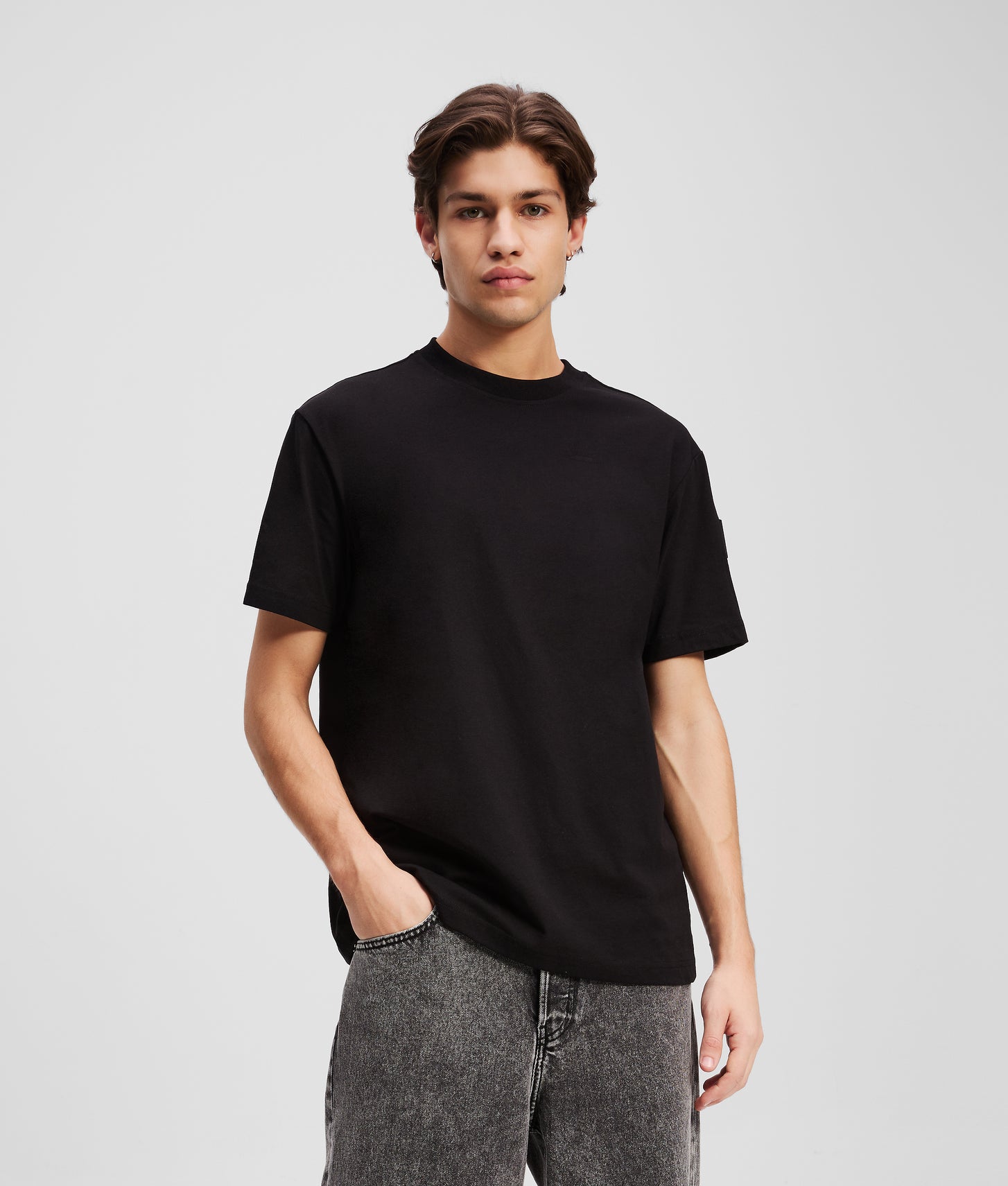 Una T-shirt versatile, perfetta per look disinvolti. Il classico girocollo e le maniche corte garantiscono comfort, mentre la caratteristica toppa in silicone KARL LAGERFELD JEANS sulla manica sinistra aggiunge un tocco unico.