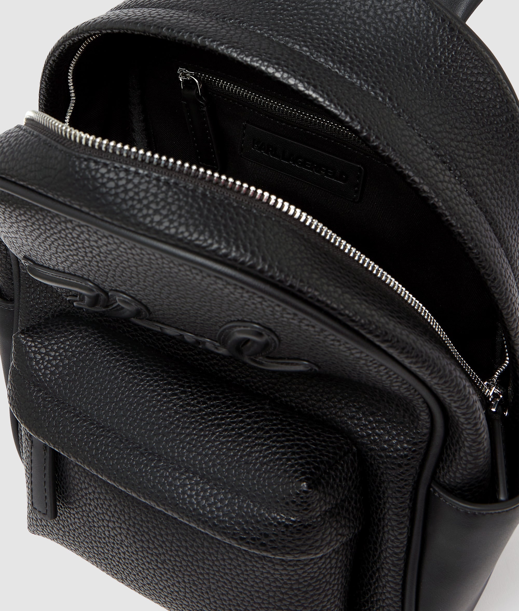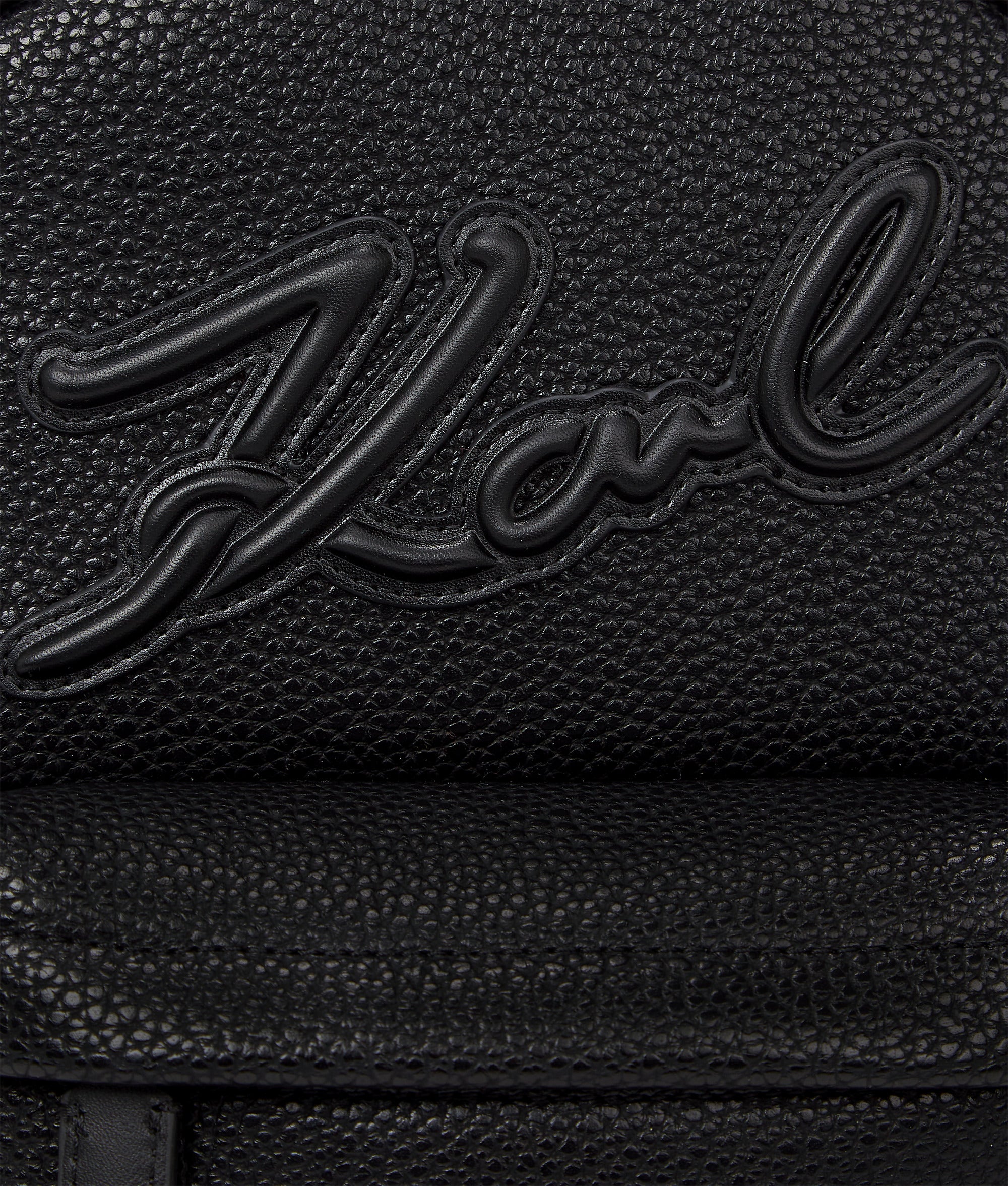 La pelle tecnica con texture conferisce un tocco di lusso a questo zaino, perfetto per le sue avventure urbane. La sua chiusura sicura con zip, le pratiche tasche e la tracolla offrono funzionalità, mentre il logo Karl Signature aggiunge un tocco distintivo.