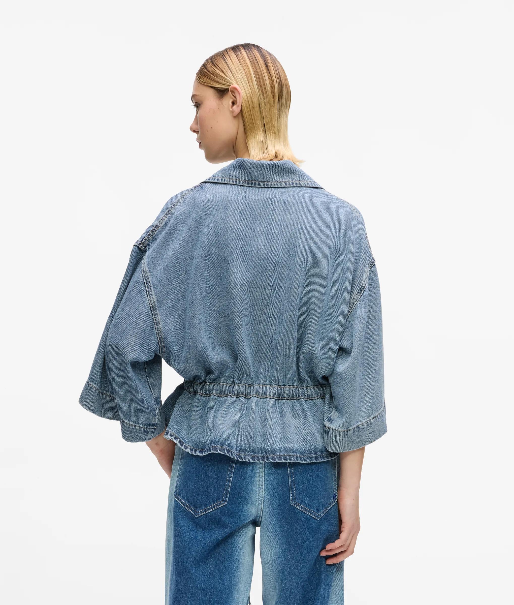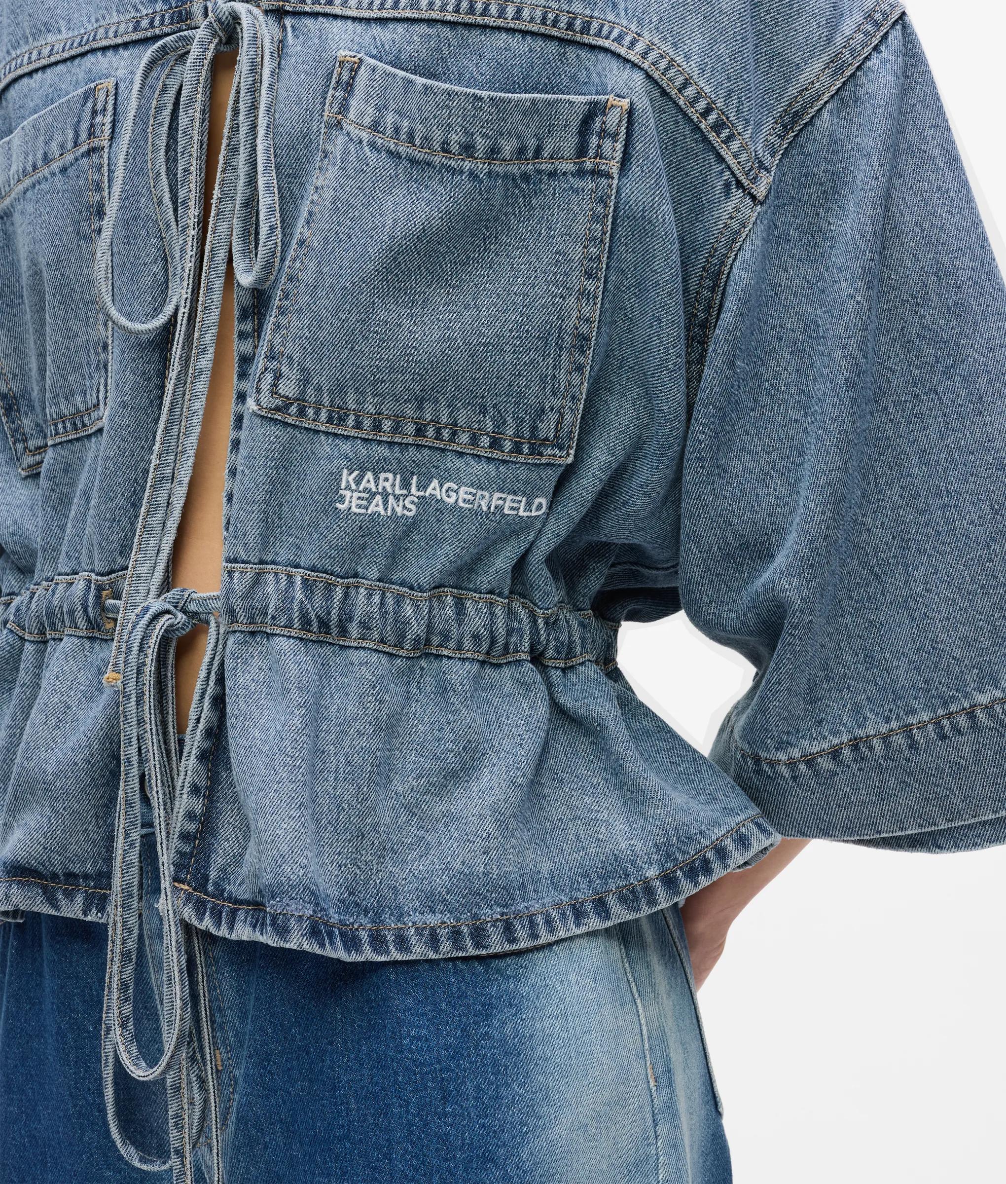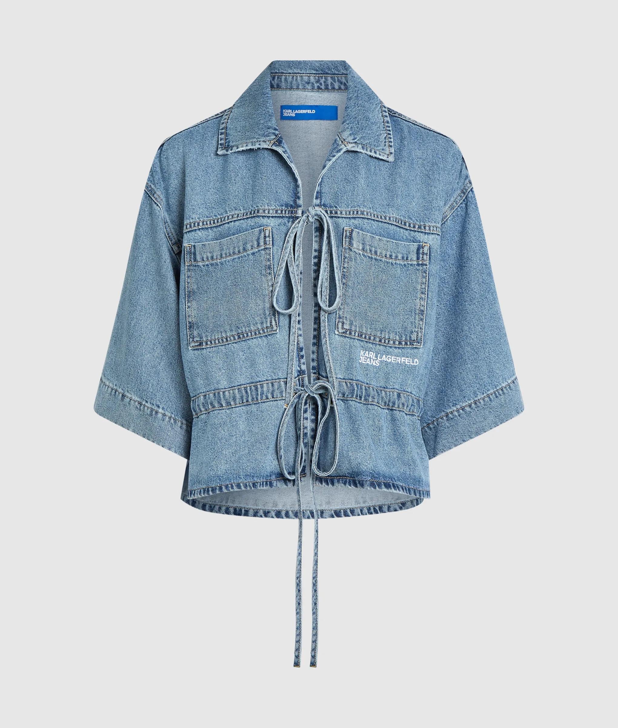 Camicia in denim con laccetti sul davanti e maniche corte