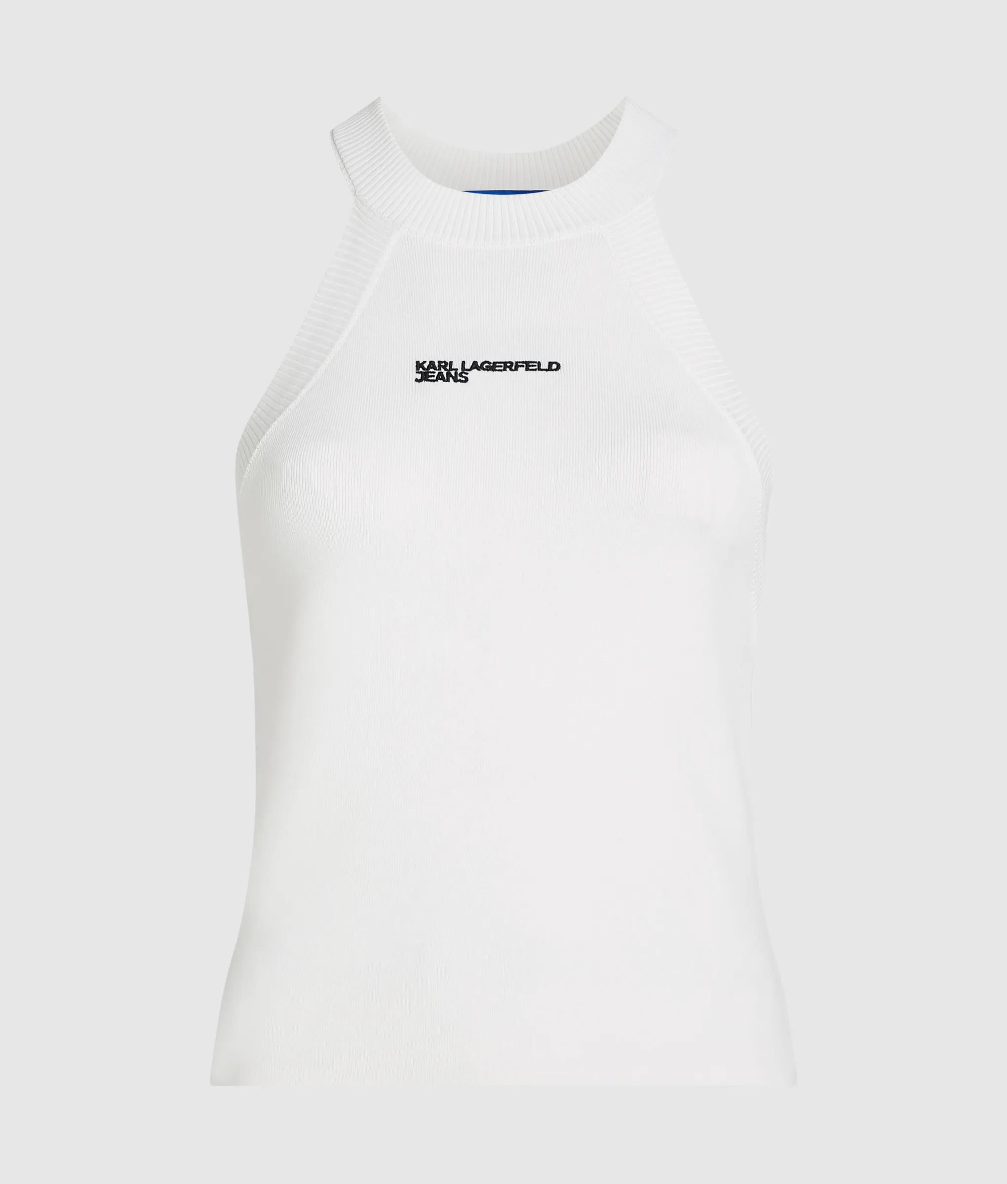 La trama a costine caratterizza questa canotta in maglia, dove lo scollo a V incontra l'audace ricamo del logo per un look deciso e sicuro di sé.