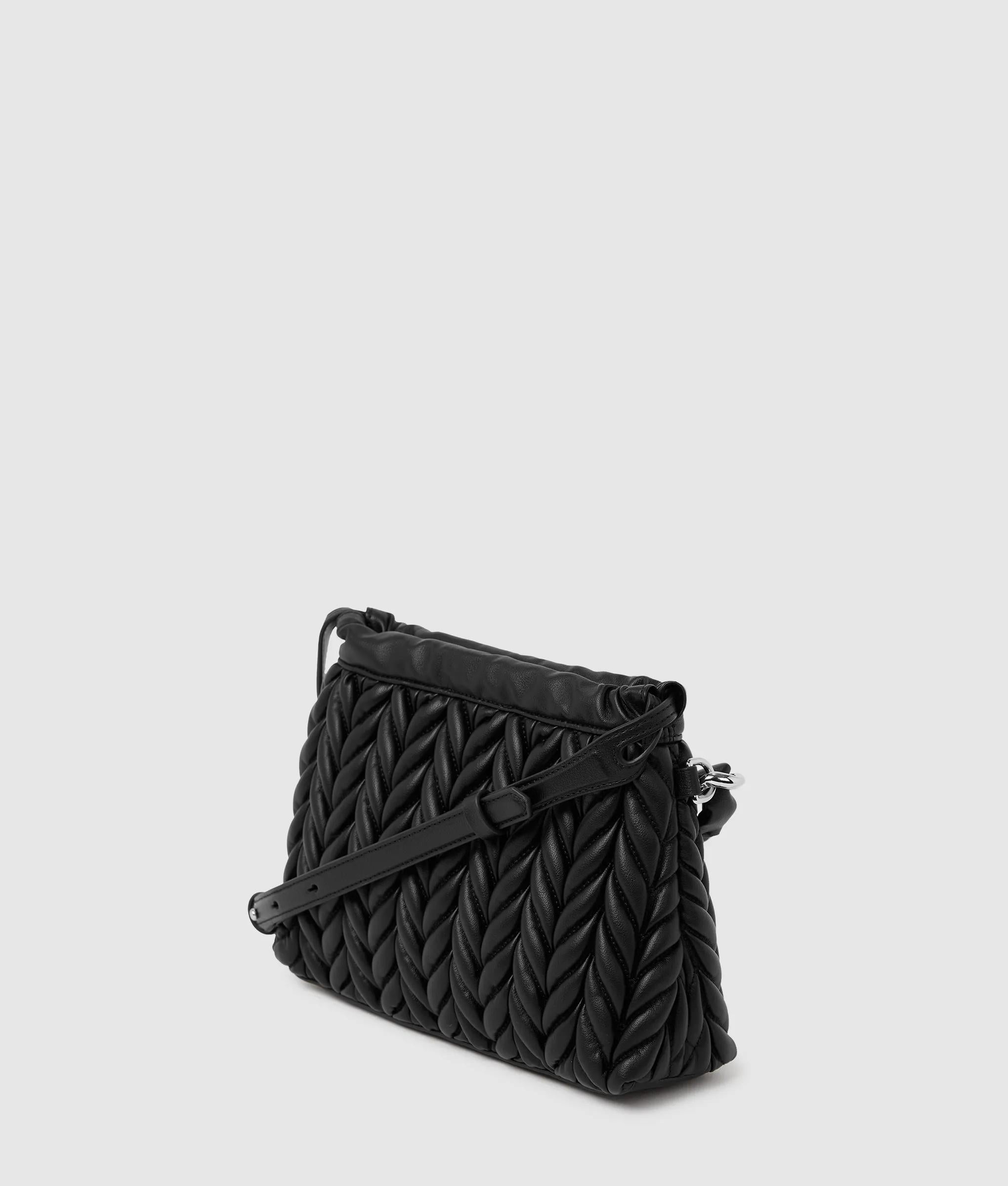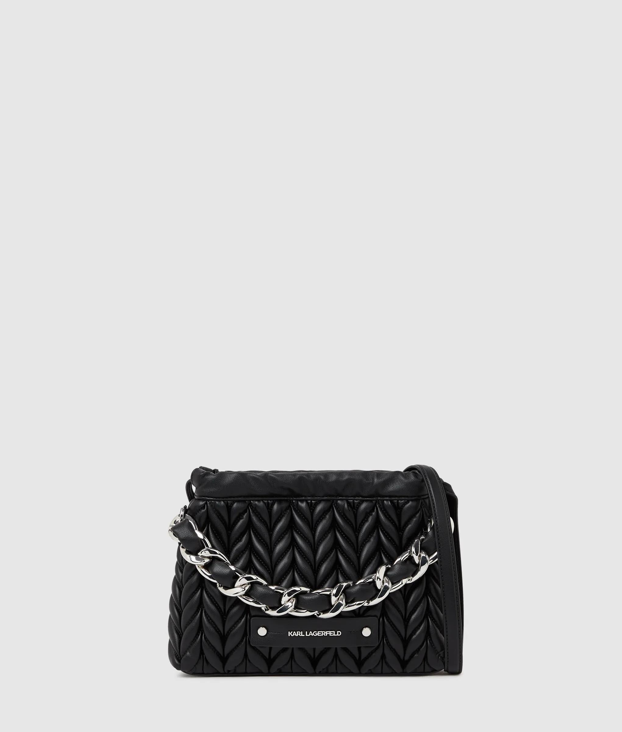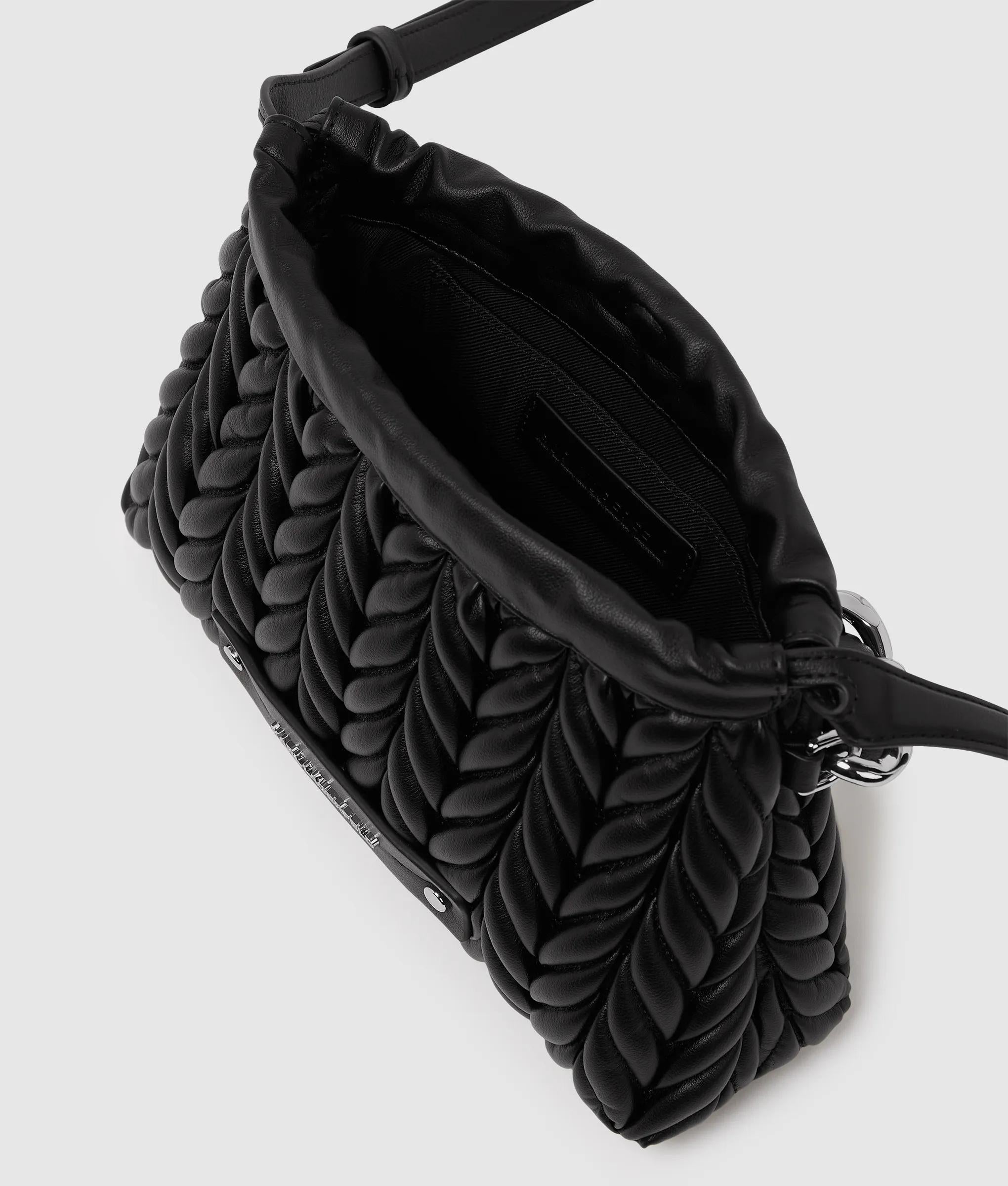 Fatti notare con questa piccola borsa a tracolla dal design caratteristico con motivo intrecciato trapuntato e decorazione in catena rock-chic. La chiusura magnetica mantiene al sicuro gli articoli essenziali, mentre la tracolla offre una comodità di utilizzo ottimale.