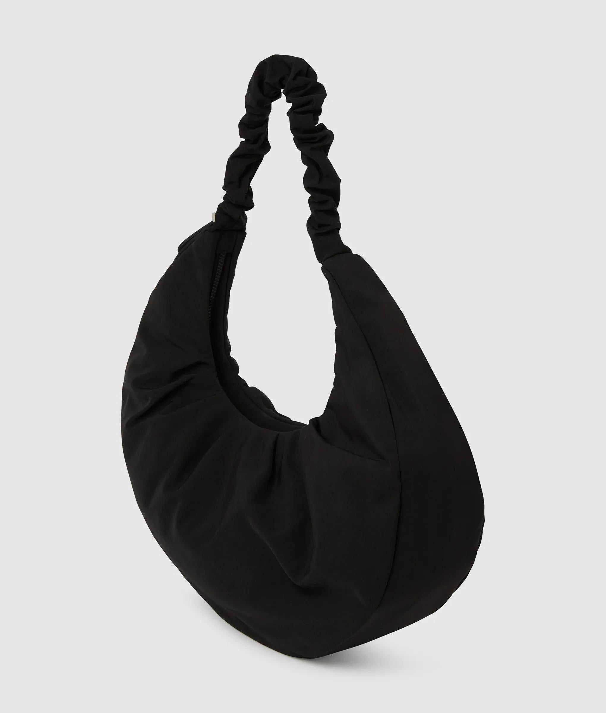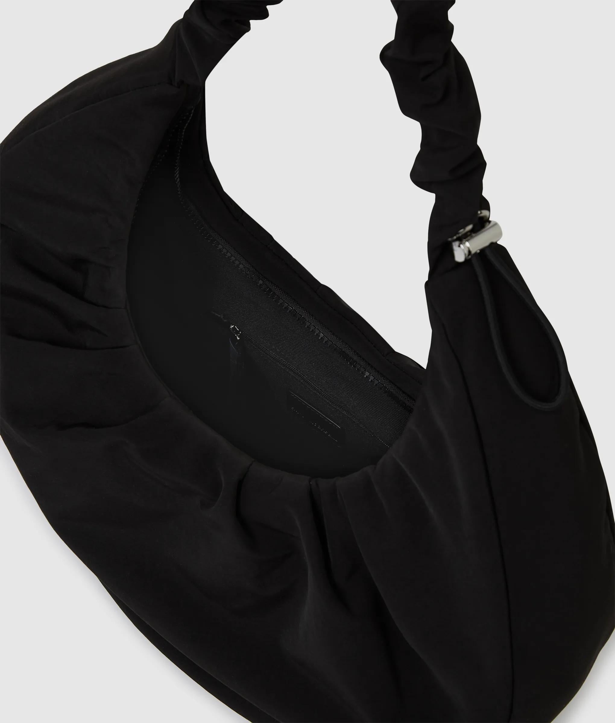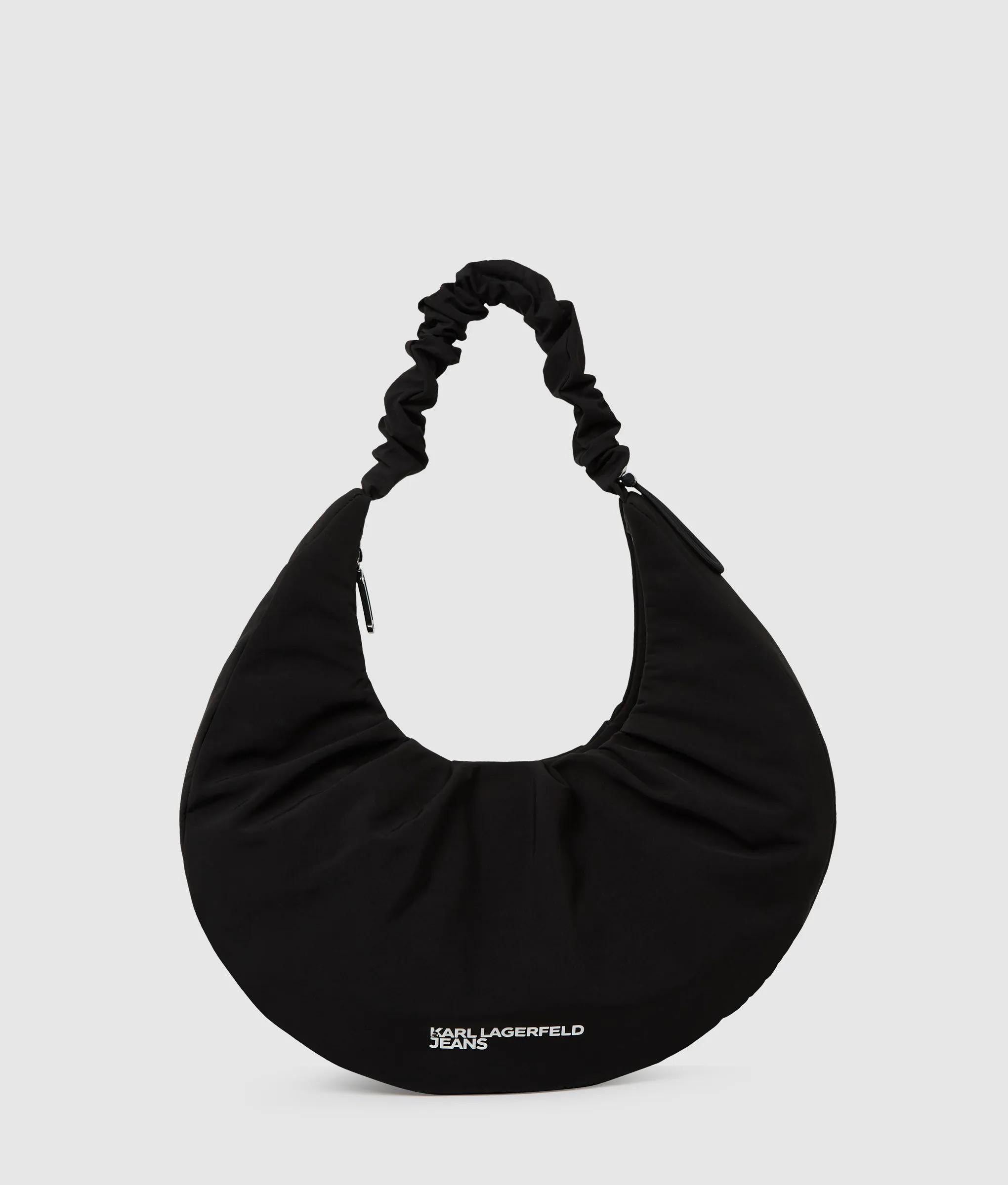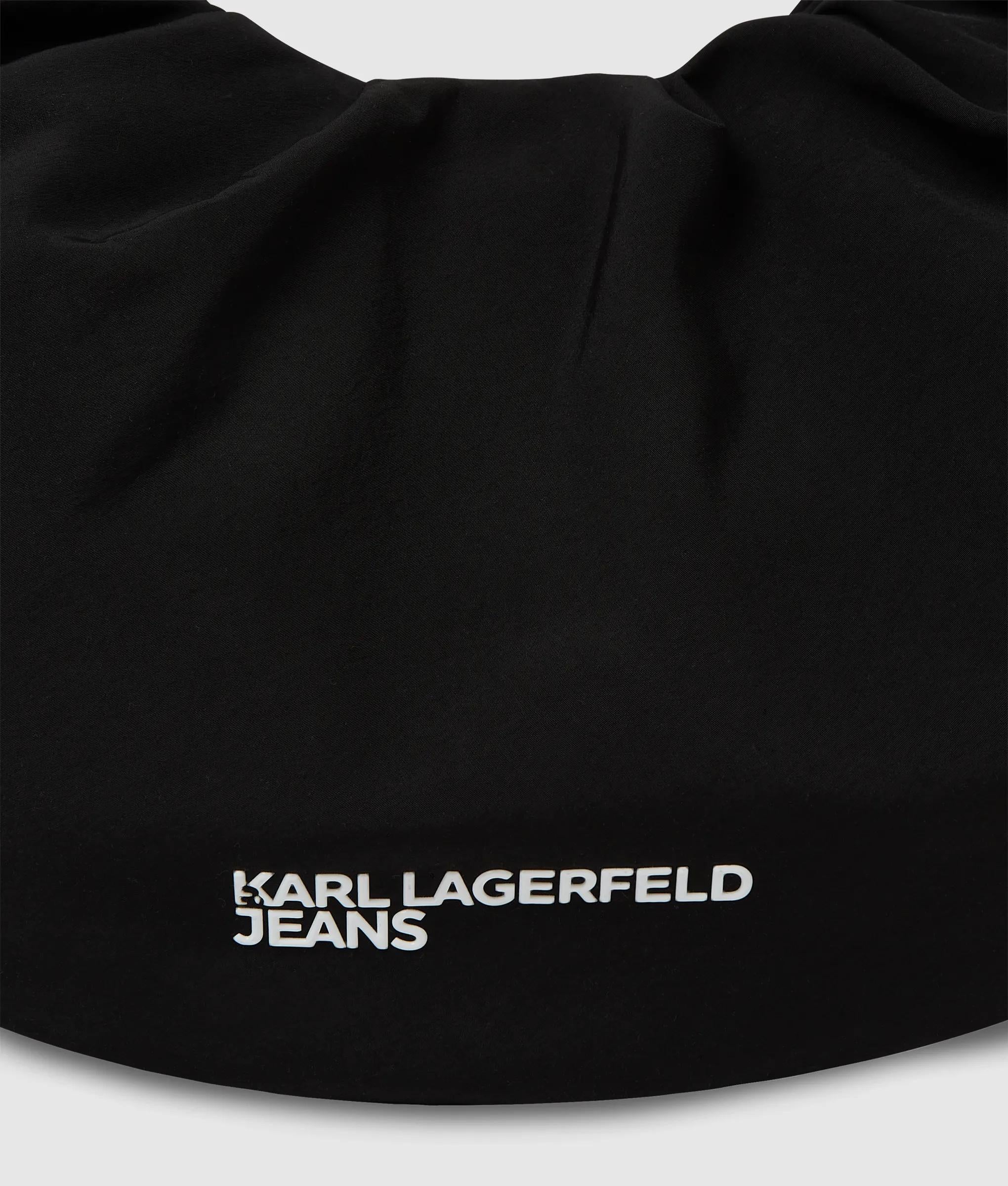 Una capiente borsa hobo in nylon con arricciatura e una tracolla regolabile e arricciata che si adatta a te, chiusa con una zip superiore e impreziosita dall'audace logo KARL LAGERFELD JEANS.