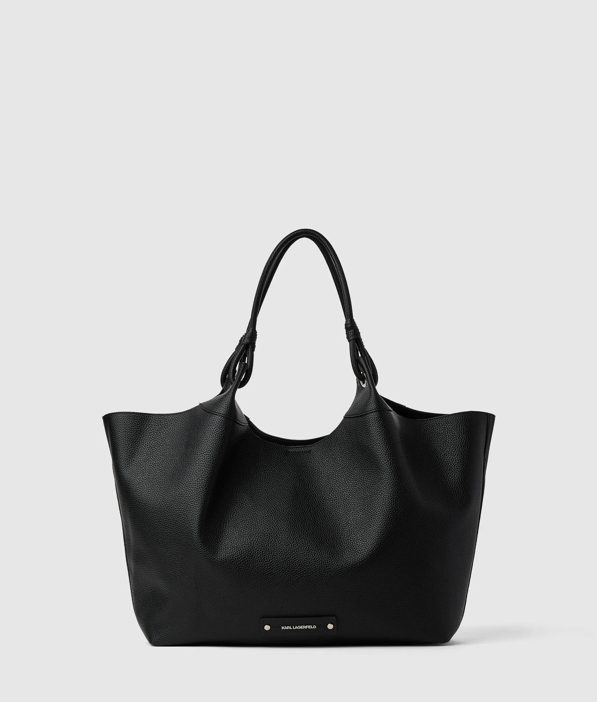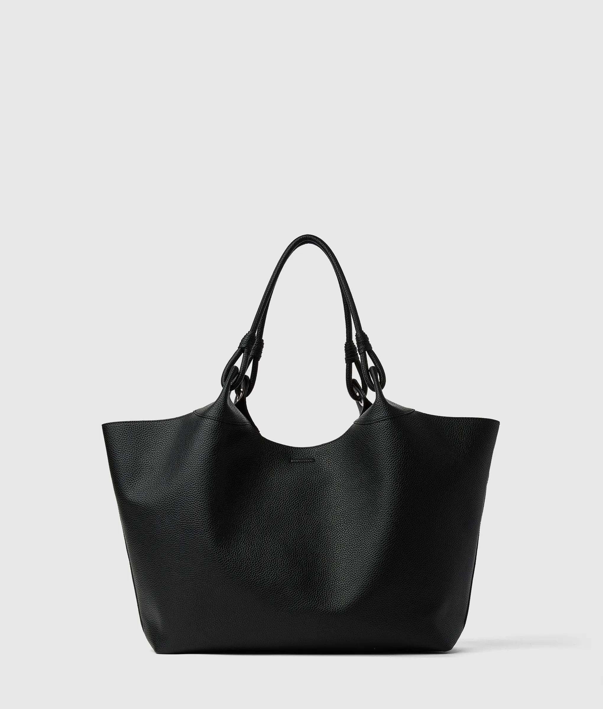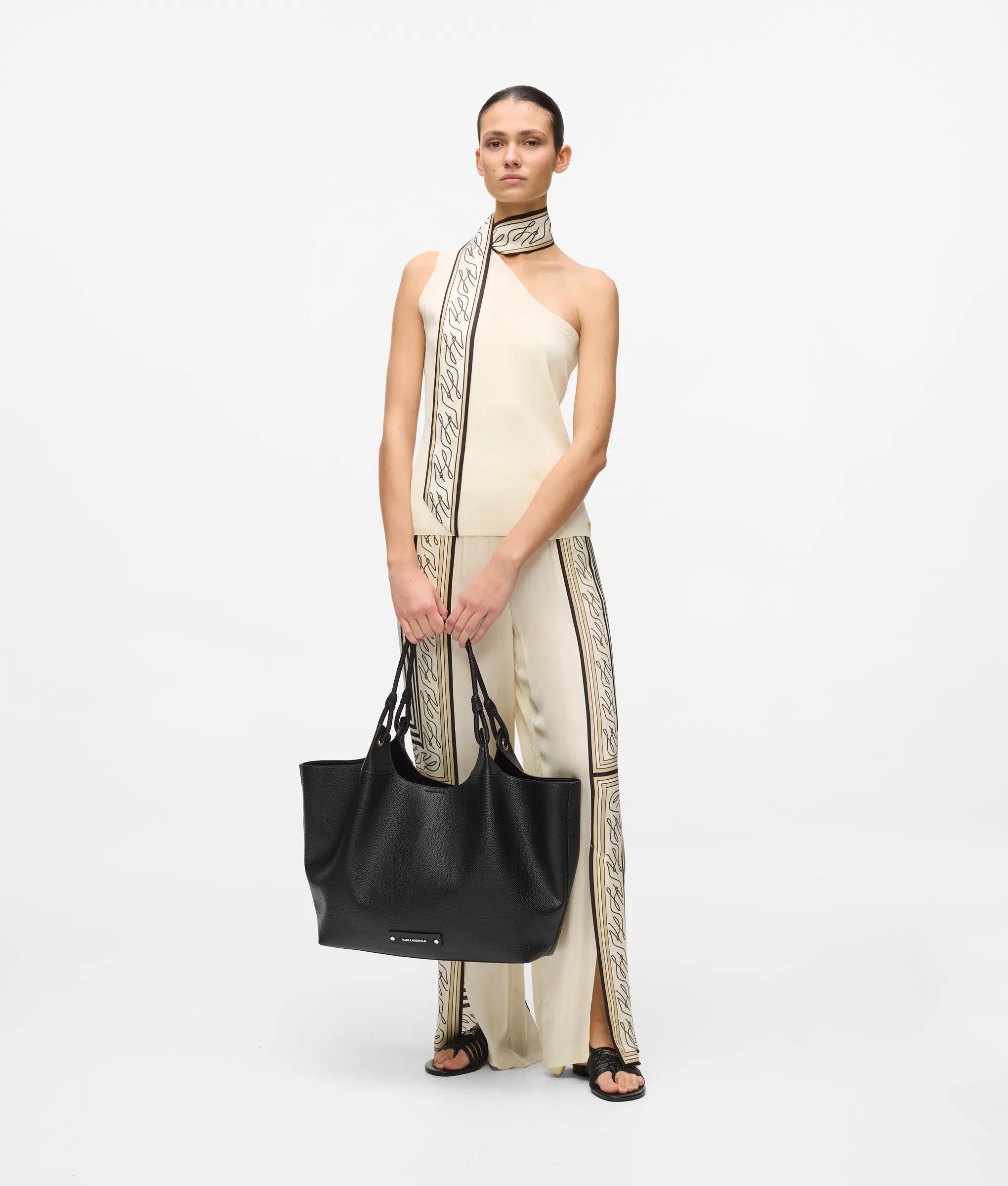 Eleva il tuo guardaroba quotidiano con questa borsa tote grande, realizzata in morbida pelle tecnica. La sua silhouette adatta per il laptop e le comode tracolle la rendono la compagna perfetta dal giorno alla sera.