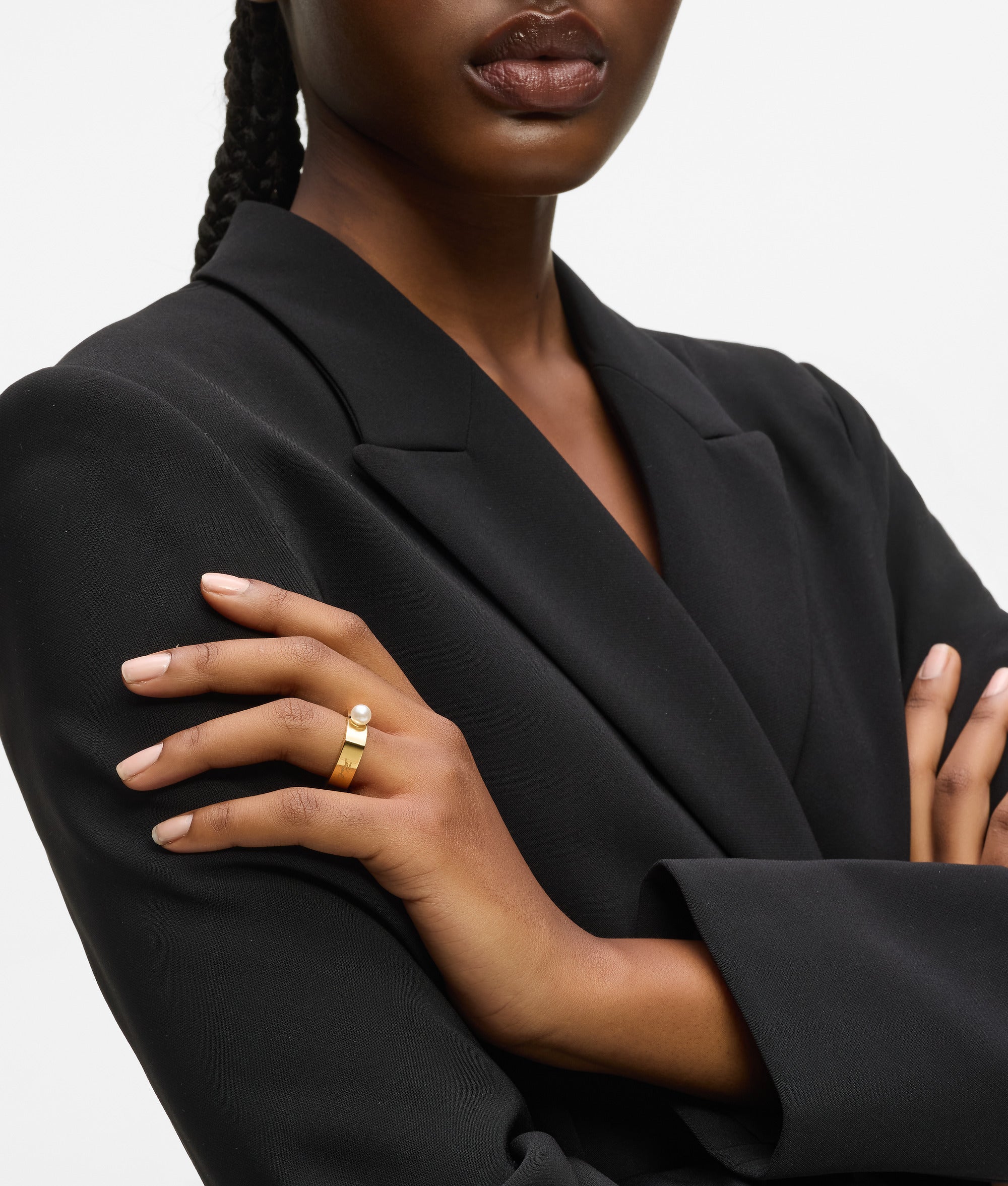 Un anello quadrato dal tocco contemporaneo, con una singola perla di conchiglia che cattura la luce. Il logo inciso Signature aggiunge un tocco di discreta raffinatezza. Abbinalo agli articoli coordinati, per uno stile raffinato.