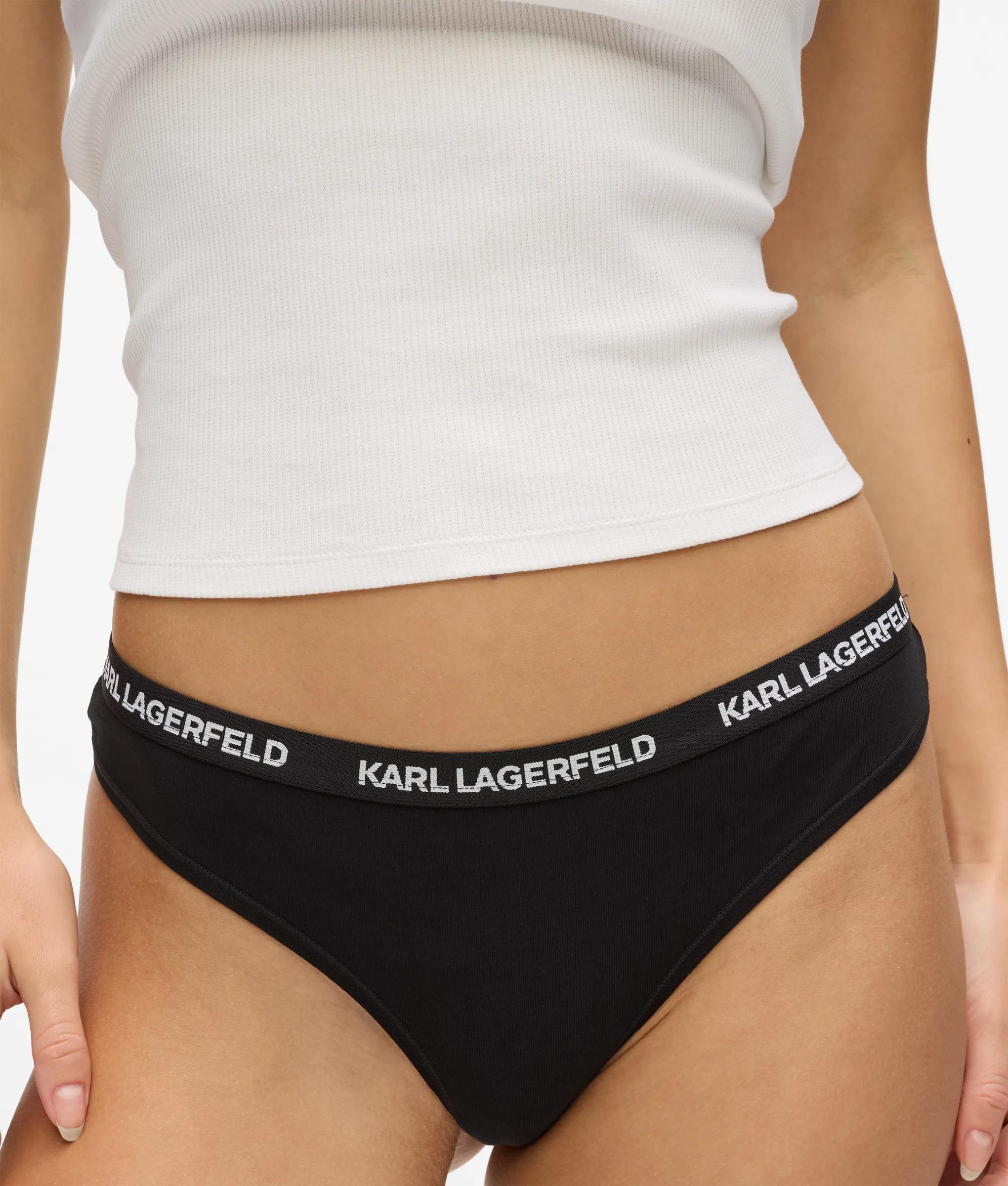 Tanga eleganti con copertura minima e sensazione di morbidezza del cotone. La cintura elastica presenta un logo Karl Lagerfeld ripetuto per un tocco di eleganza senza sforzo.