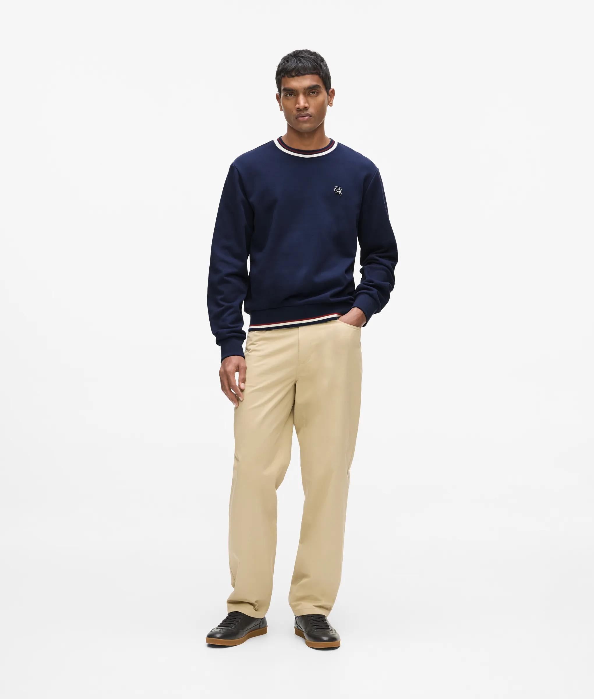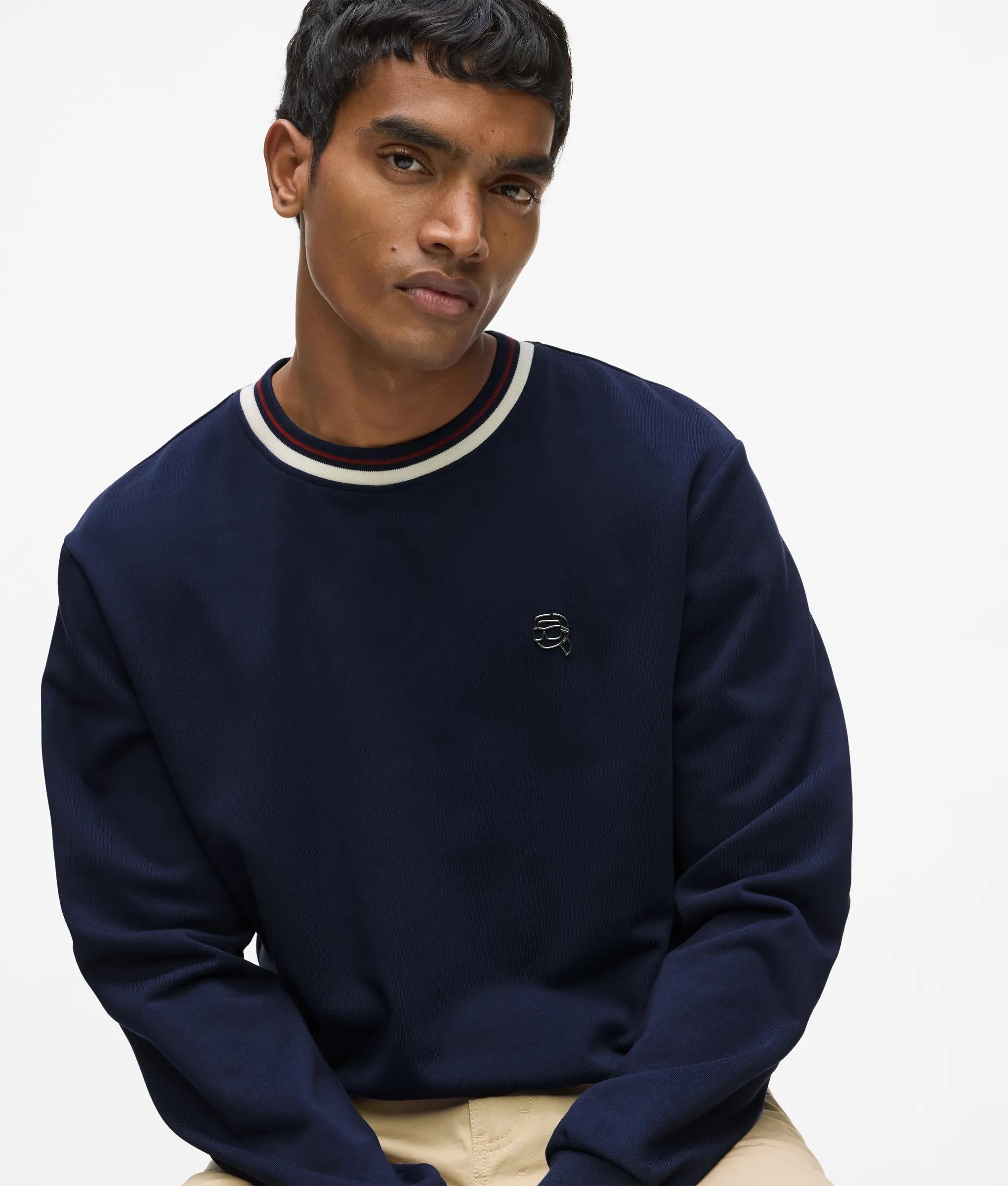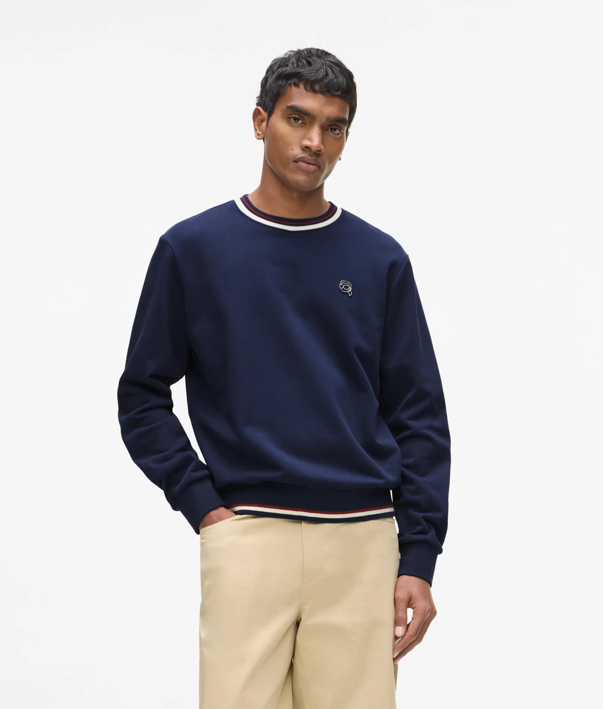 La morbida maglia a costine incornicia questa classica felpa girocollo, caratterizzata da una riga ispirata a Saint Tropez che apporta un tocco fresco e nautico. La spilla Ikon in metallo conferisce un inconfondibile tocco Signature.