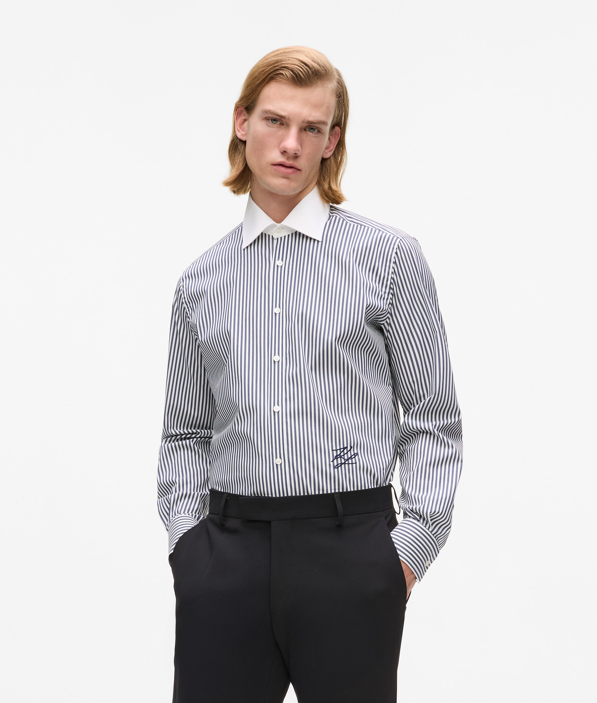 Il netto contrasto definisce questa camicia a righe, dove un colletto a punta e il ricamo Monogram ne esaltano il classico design con bottoni sul davanti.