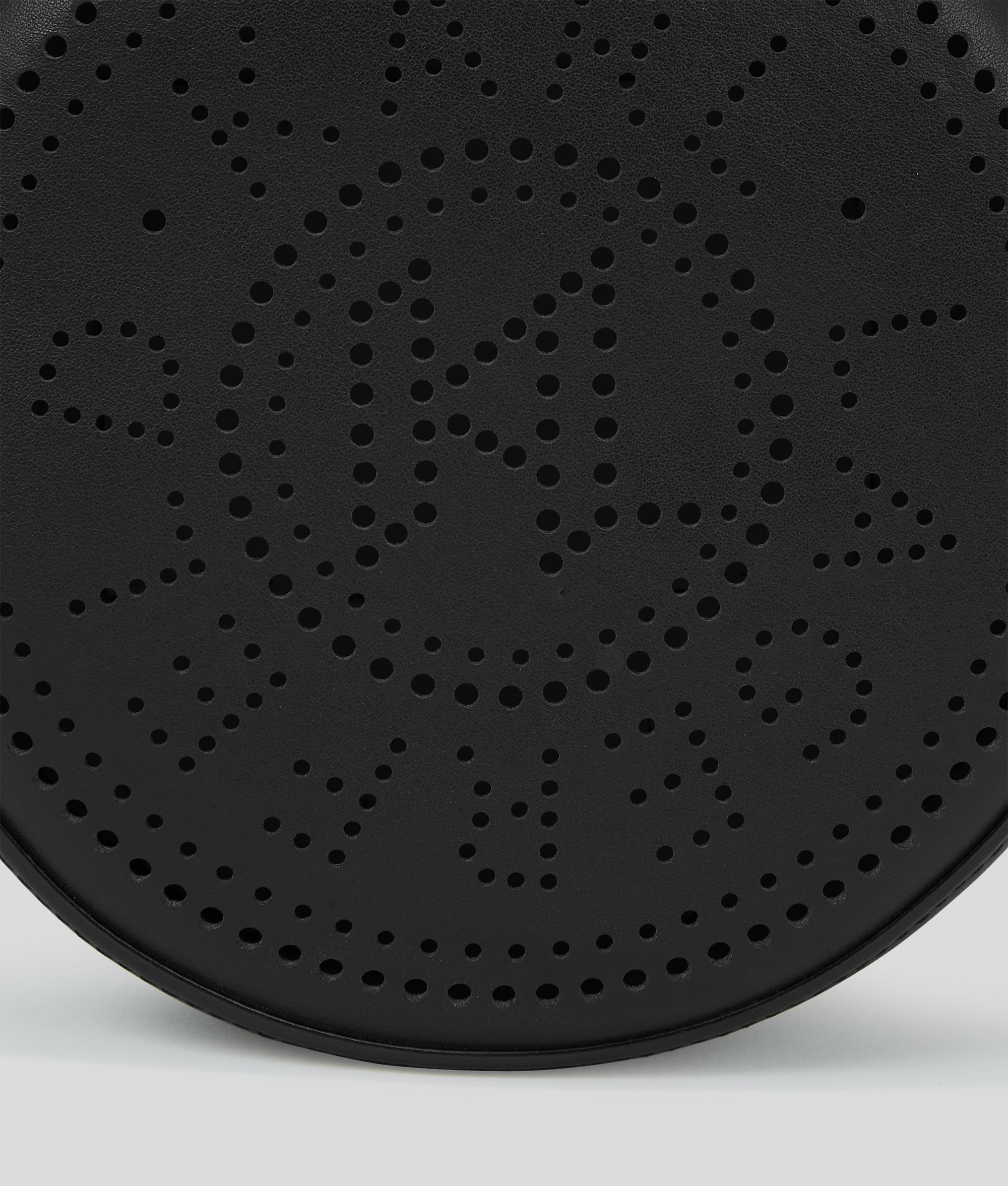持ち運びに便利なクロスボディバッグ。存在感のある円形のシルエットと、大胆なKARLロゴ入りのウェビングストラップが特徴。滑らかなレザー製。現代的なデザインで、アイコニックなKL Houseのモノグラムを囲むようにパンチング加工のKARLのロゴがあしらわれています。