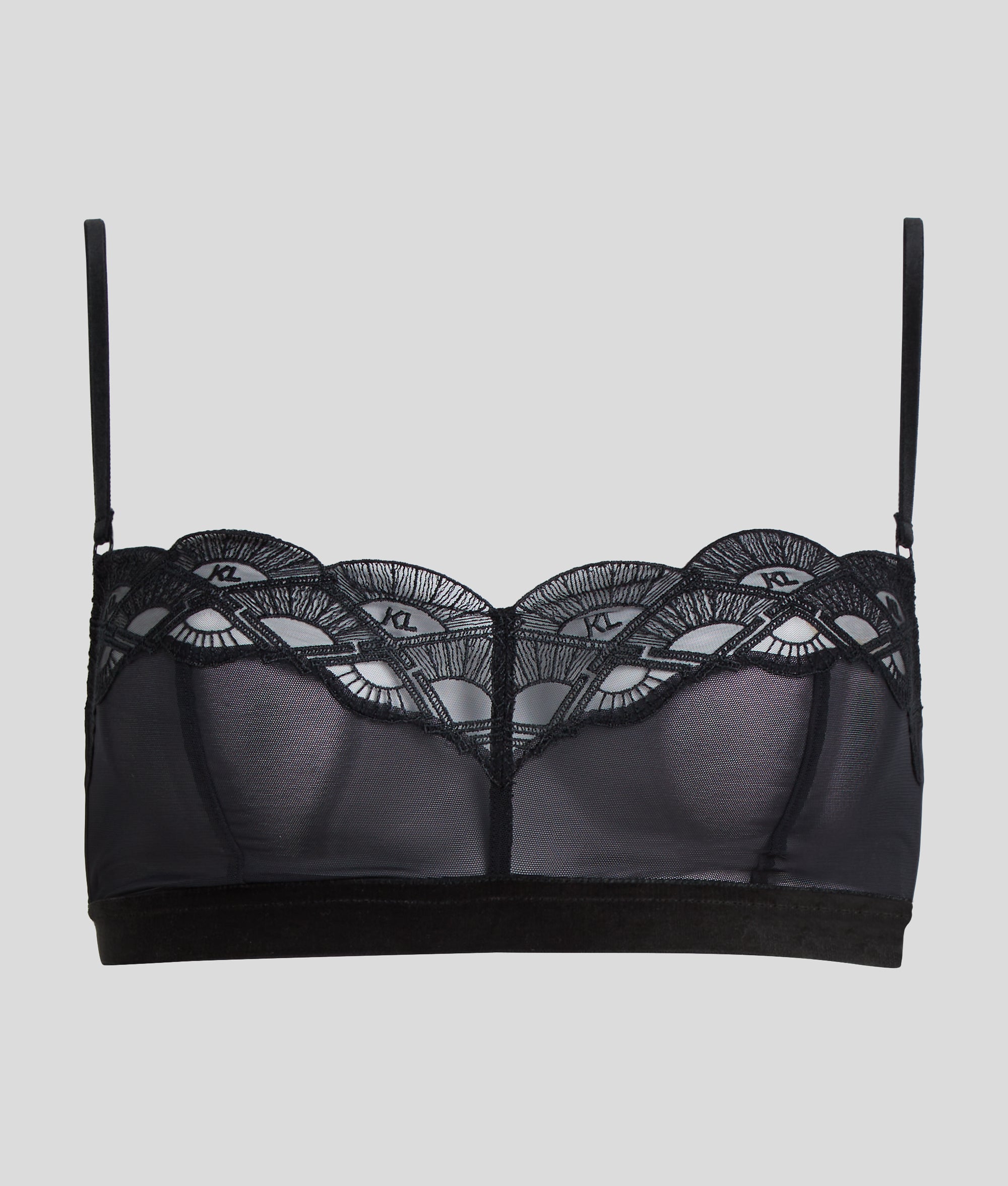 扇の刺繍を施した、魅惑的でとてもフェミニンなサテンブラレット。シックなデザインで、お揃いの刺繍入りのブラジリアンやハイライズのブリーフを合わせれば、ランジェリーのスタイルがワンランクアップ。