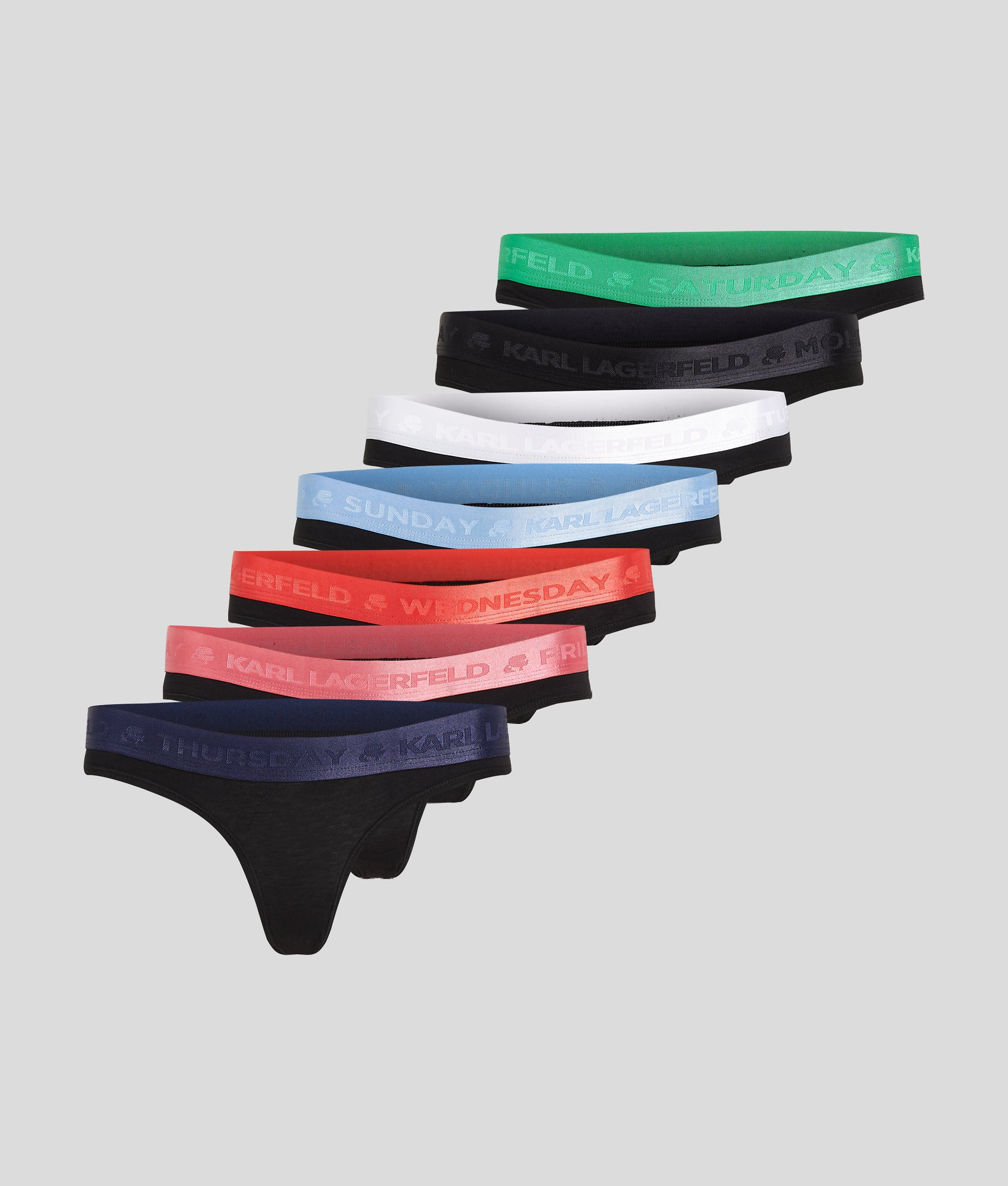 KARLスタイルを毎日身につけられるオーガニックコットンのTバック。ブランドロゴ入りのウェストバンドと曜日名のディテールが特徴。