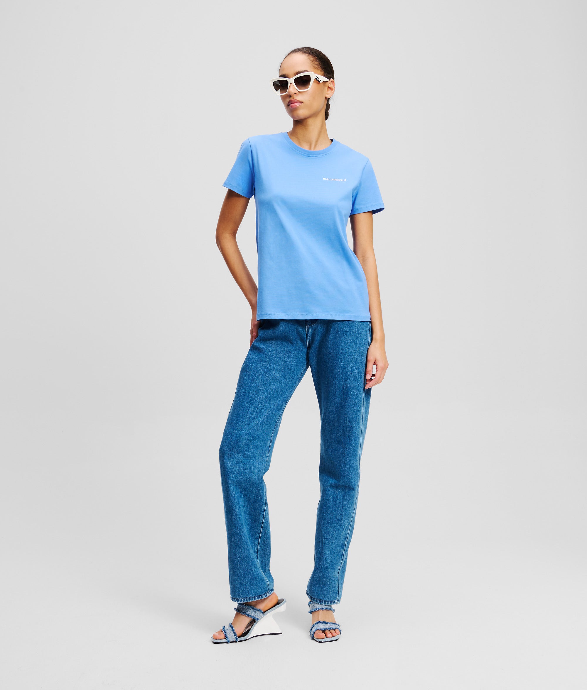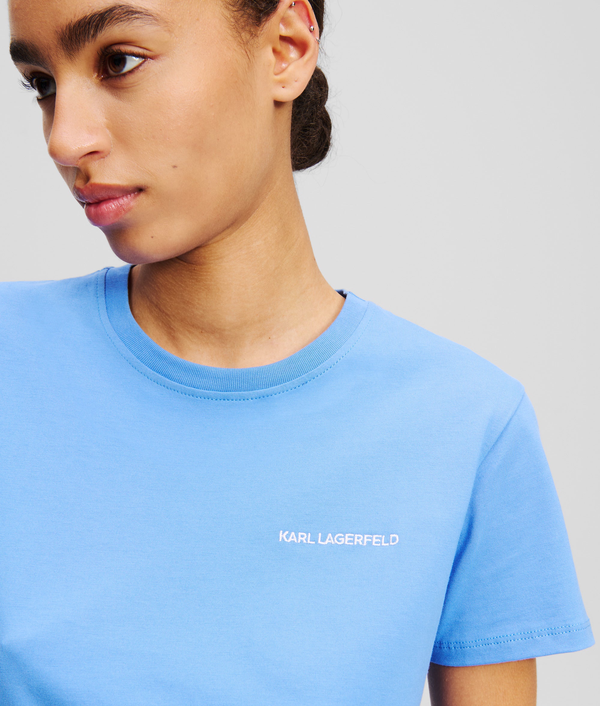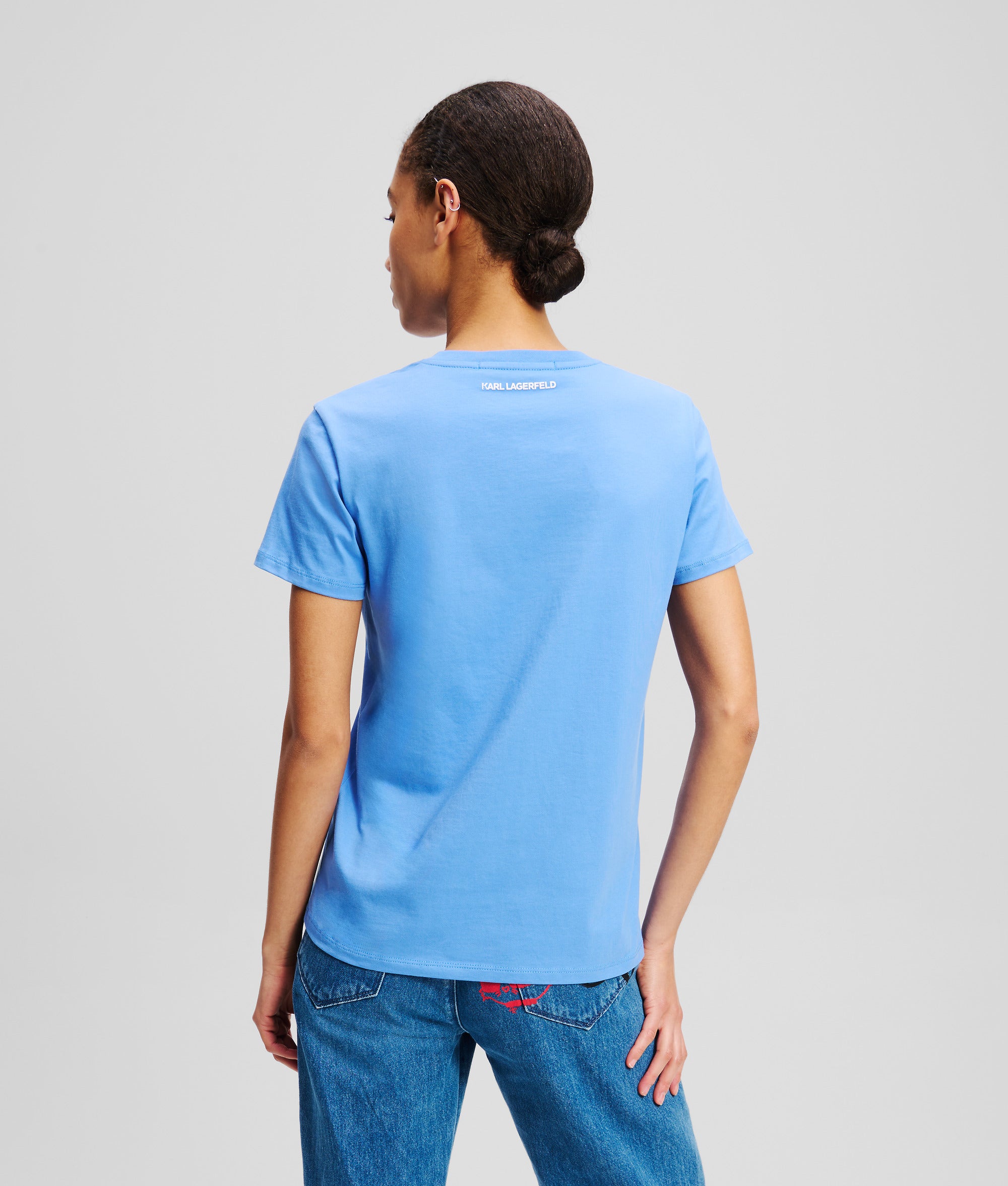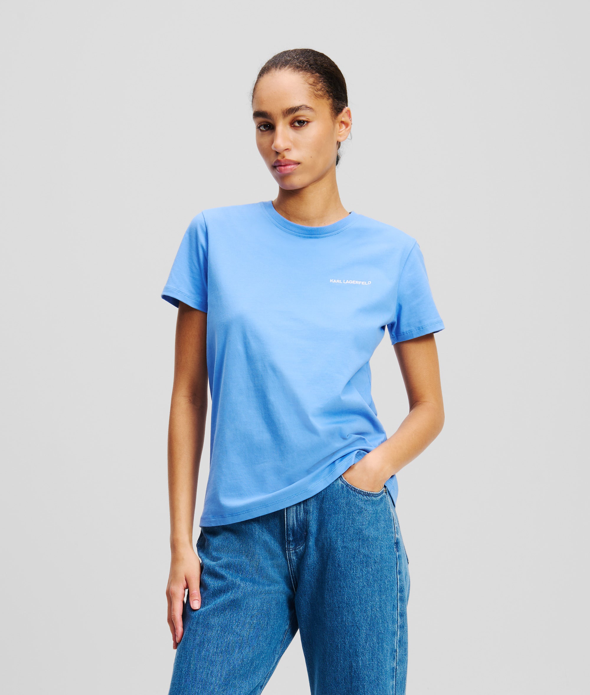 オーガニックコットンジャージー素材を使用したTシャツ。ミニマルなKARL LAGERFELDのロゴを胸元にあしらって、洗練された雰囲気を演出。