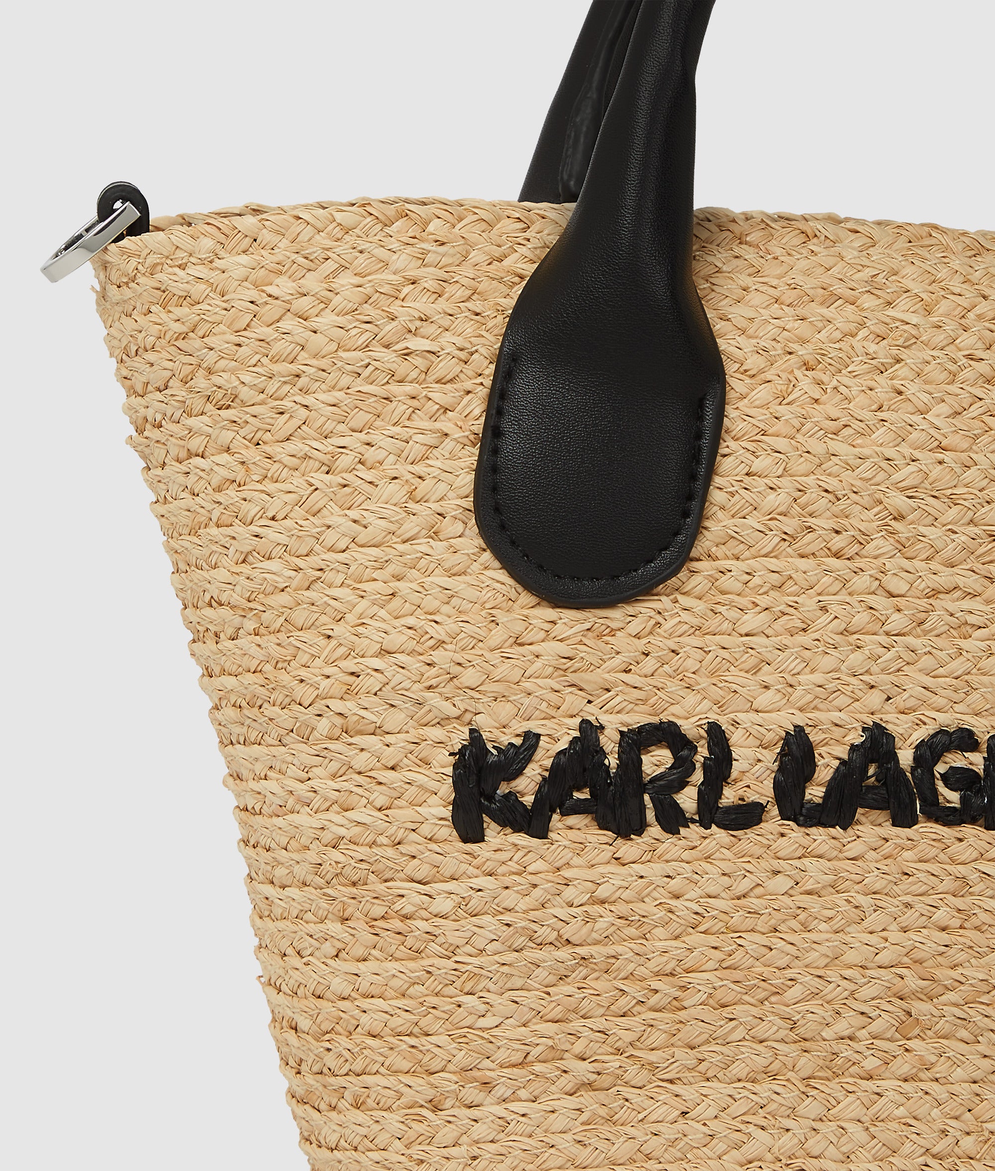 夏らしいラフィア素材で作られた洗練されたビーチバッグは、バケーションの冒険に持っていくのにぴったり。2本のトップハンドルと取り外し可能なクロスボディストラップで多彩なスタイリングを楽しめるバッグ。KARL LAGERFELDの大胆なロゴが独特の雰囲気をプラス。