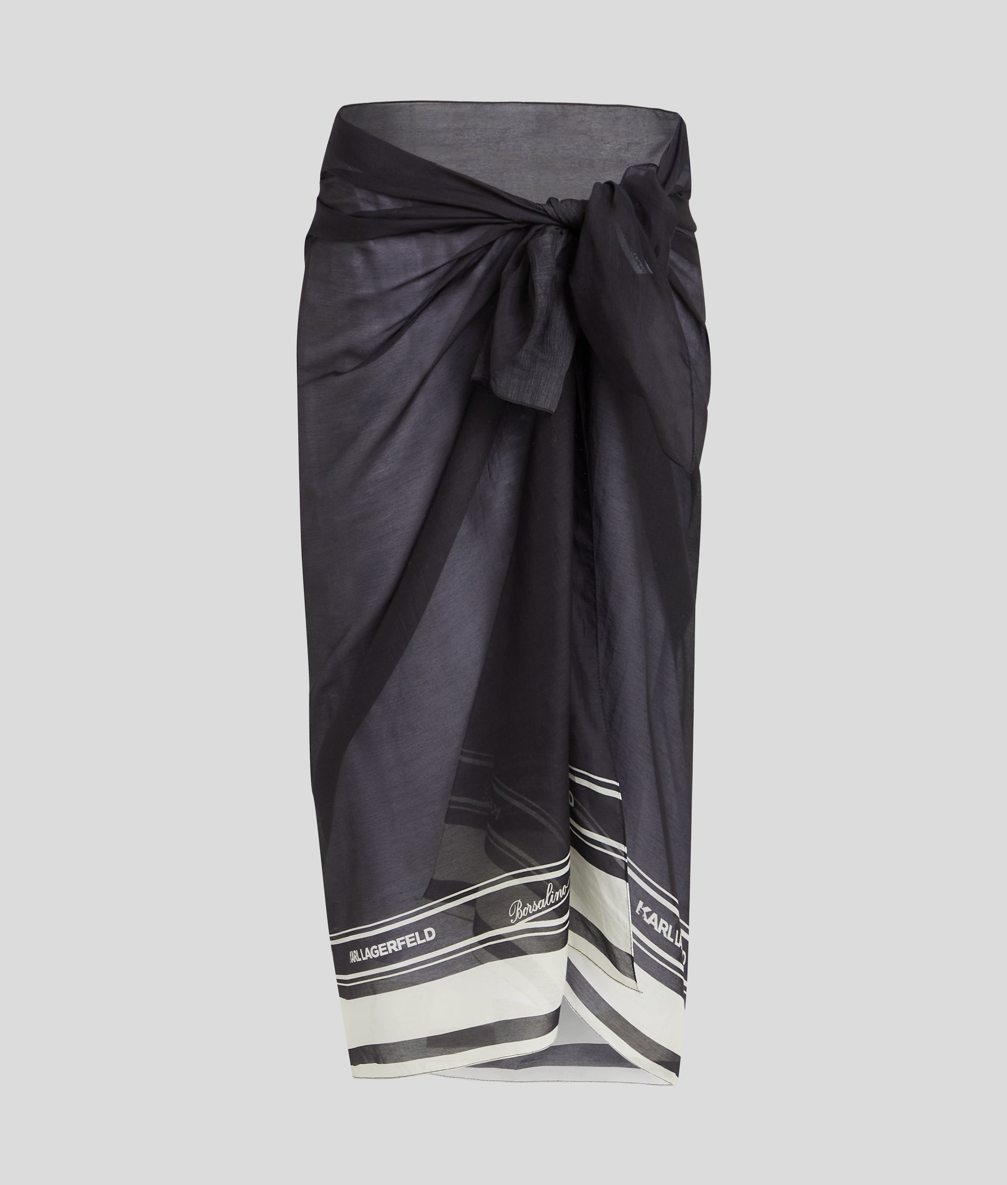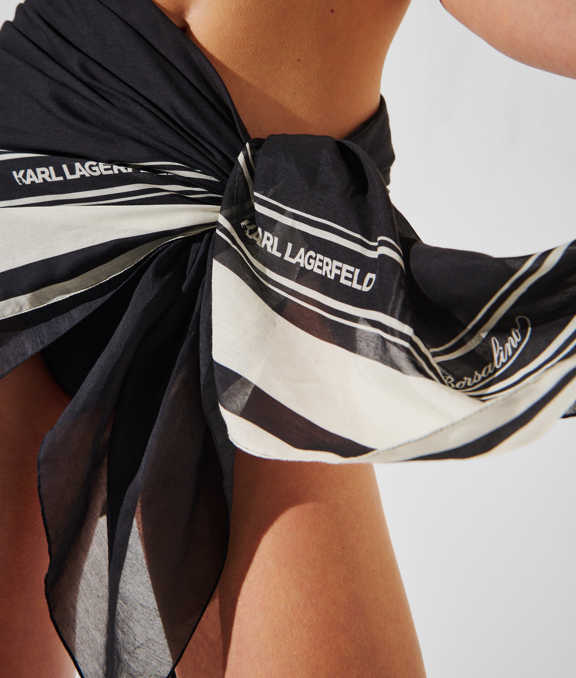 何通りもの着こなしが楽しめる多用途のセルフタイ式パレオは、プールサイドのワードローブに最適。美しいシルク混素材を使用し、エレガントなリボンロゴがあしらわれたアイテムは、イタリアの有名ブランド、Borsalinoとのコラボレーションによるデザイン。