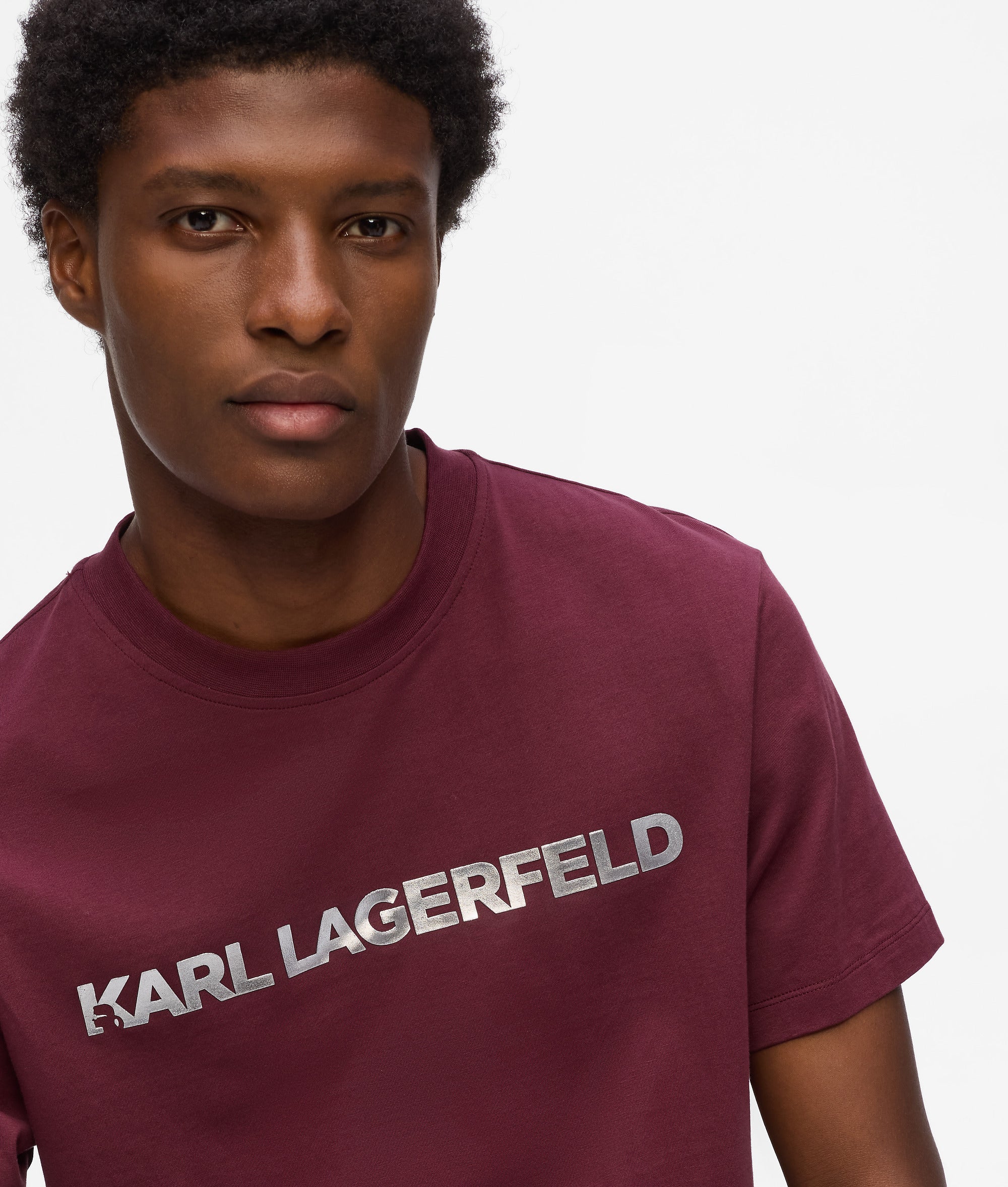 光沢のあるメタリックなKARL LAGERFELDのロゴがユニークなテイストを添える、クラシックなクルーネックのTシャツ。柔らかなオーガニックコットン仕立てで、一日中快適な、気軽に着られるスタイル。
