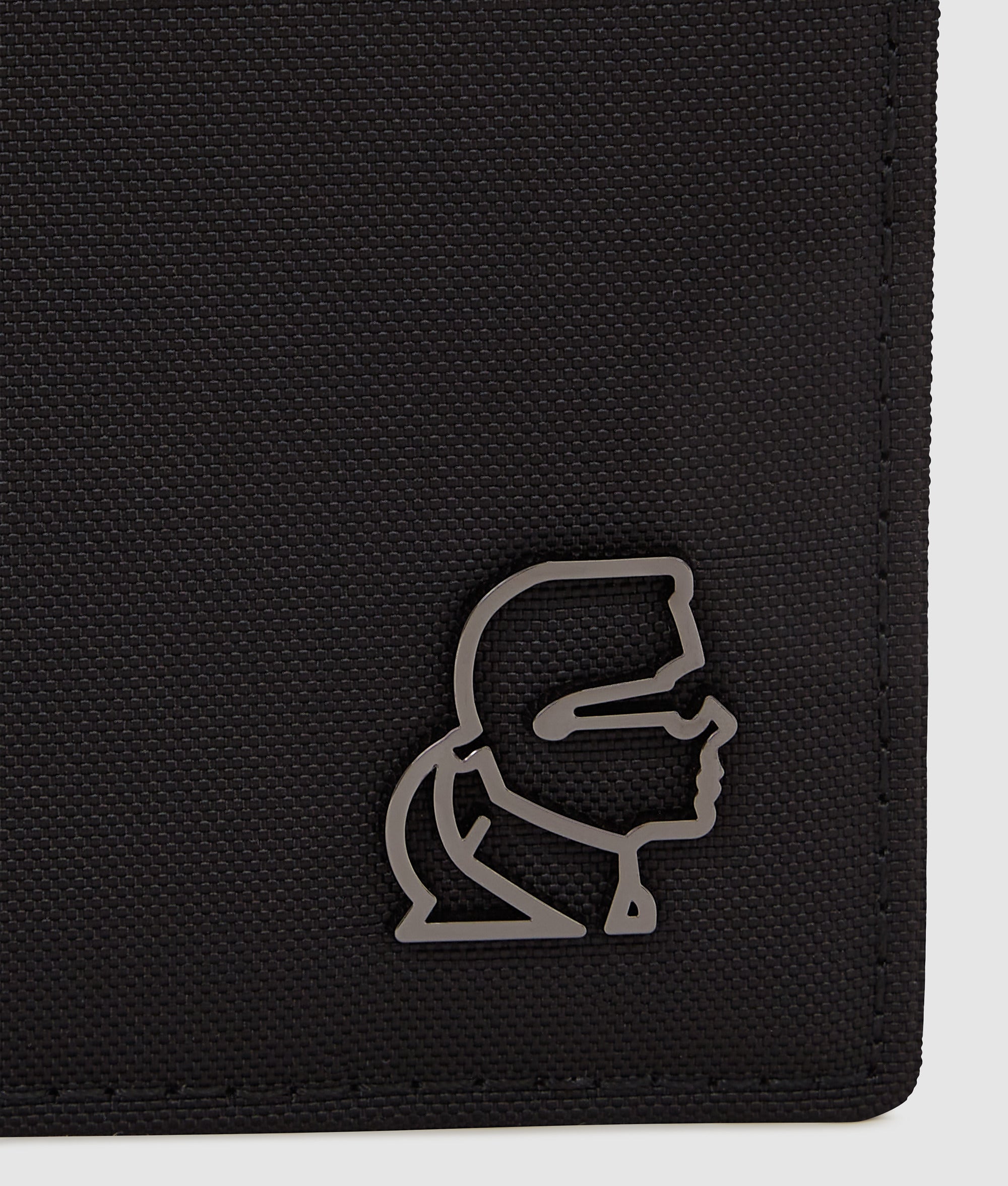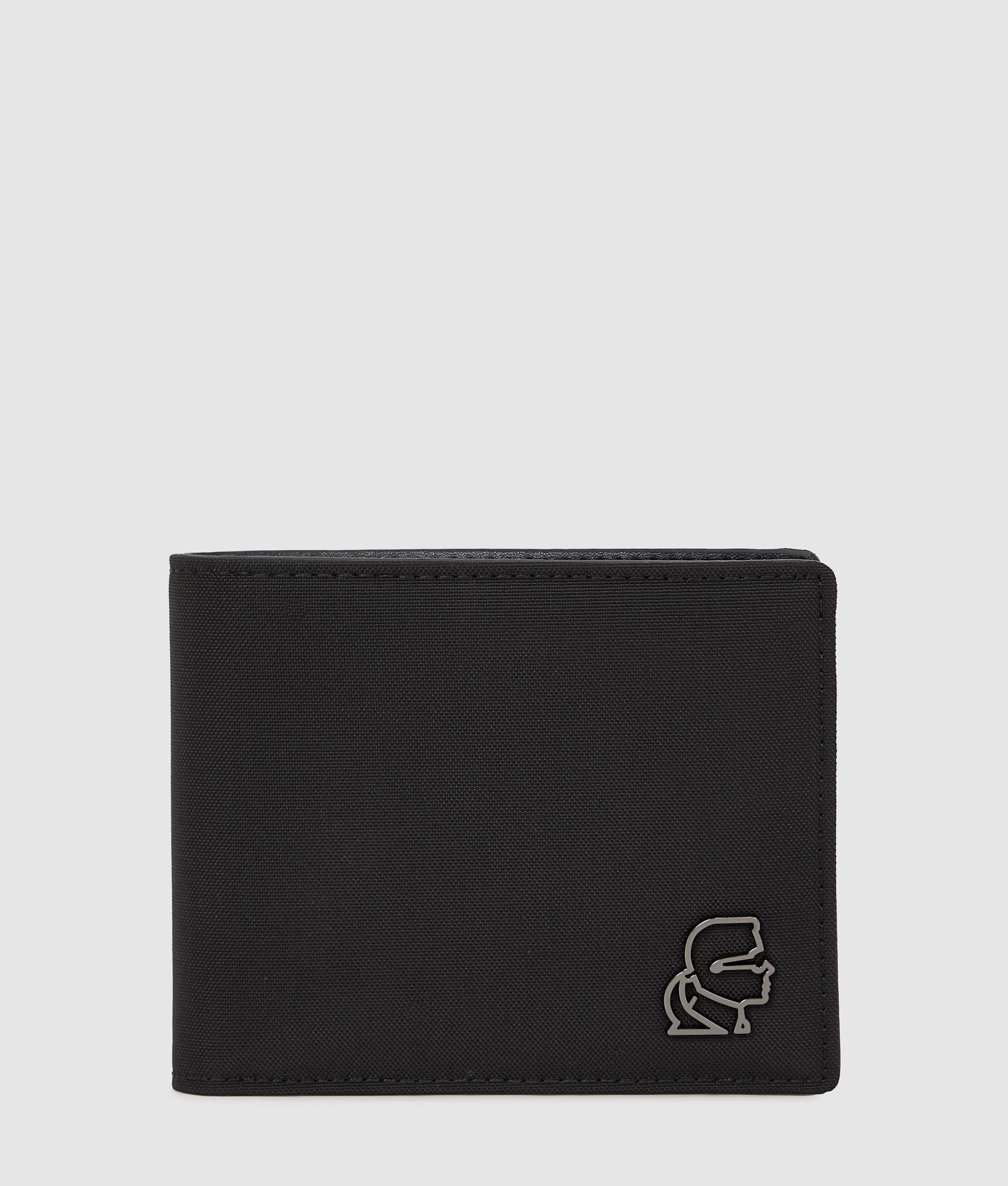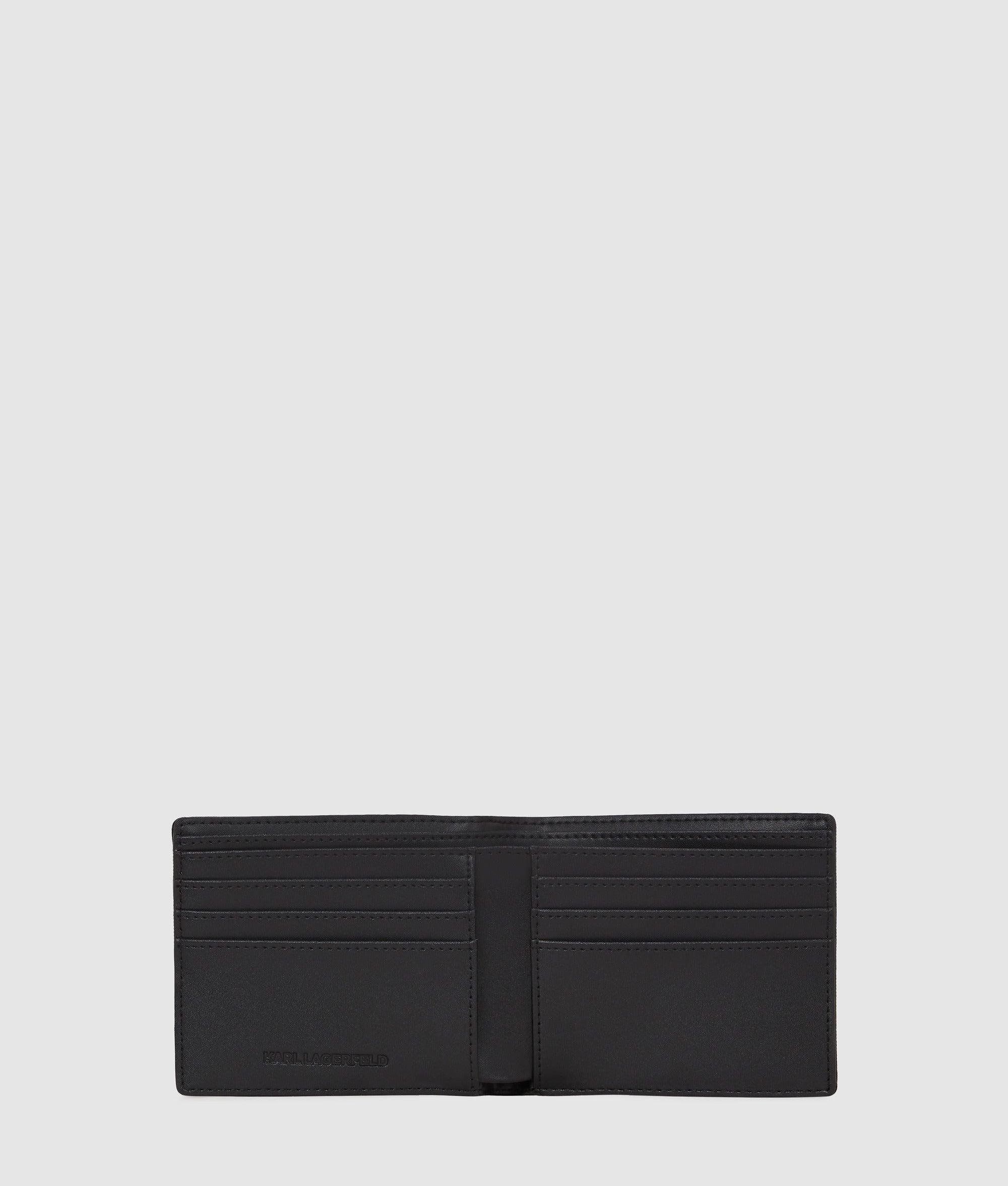 洗練された二つ折りデザインのK/KAMEO財布。複数のカード入れと小銭入れが付いており、外出時に整理整頓を保つのに便利。さりげないKarl Kameoハードウェアでアイテムが完成。