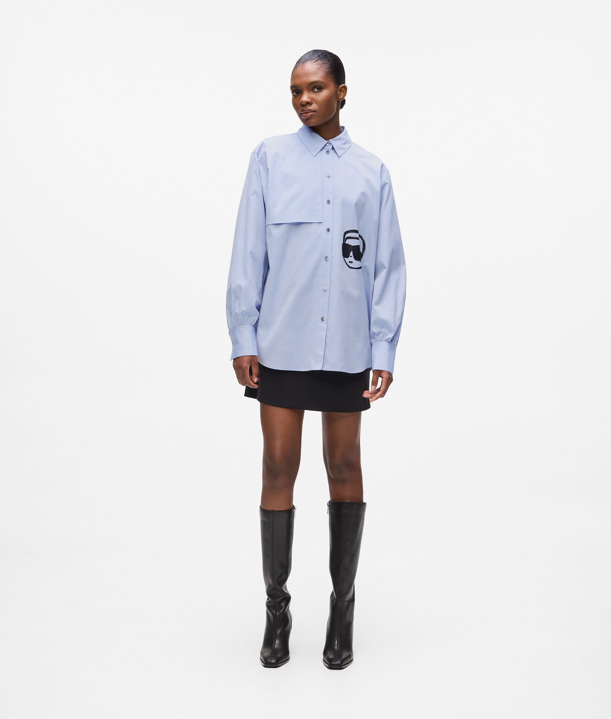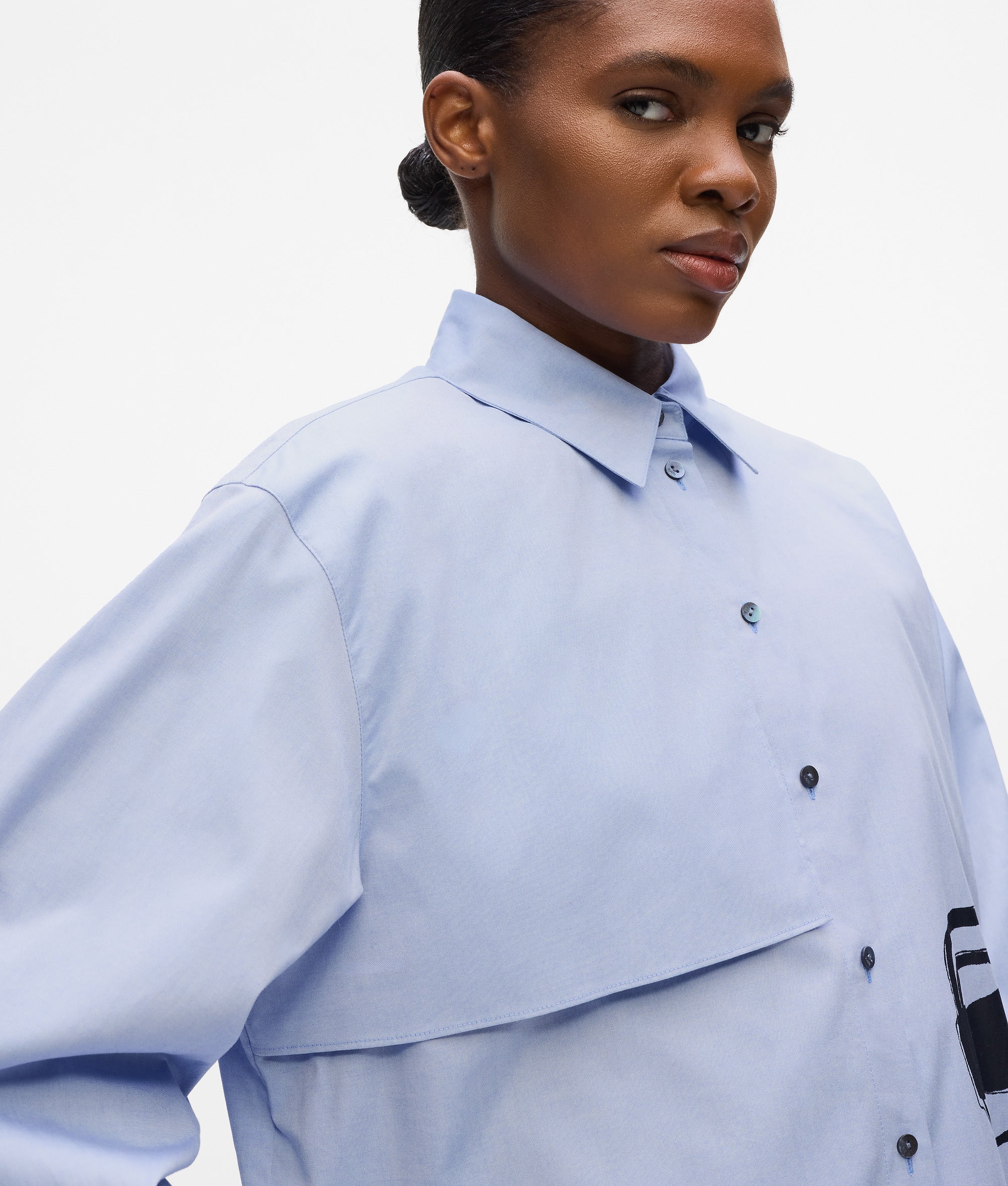 オーバーサイズの袖、ストームフラップのディテール、目を引くIkonのアートワークがインパクトを与える大胆なデザインのシャツ。シルエットが際立つシンプルにスタイリングがおすすめ