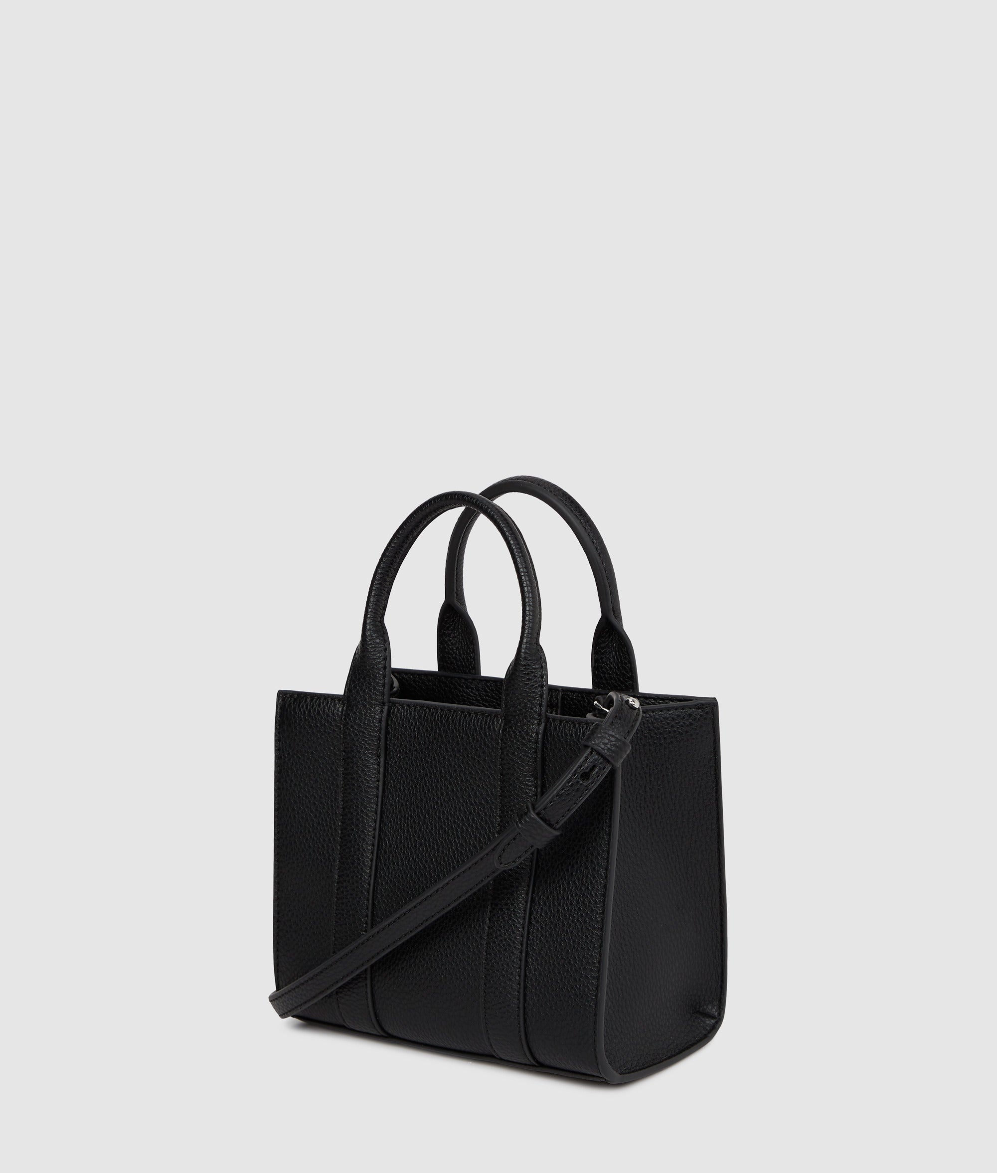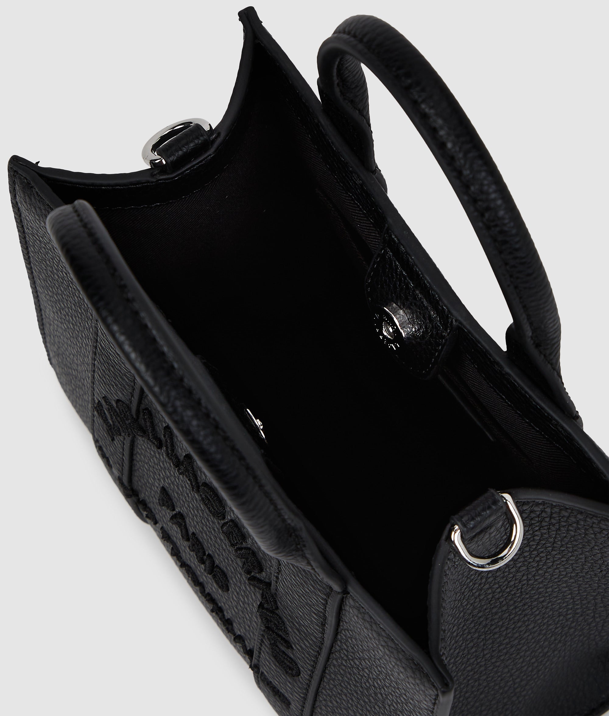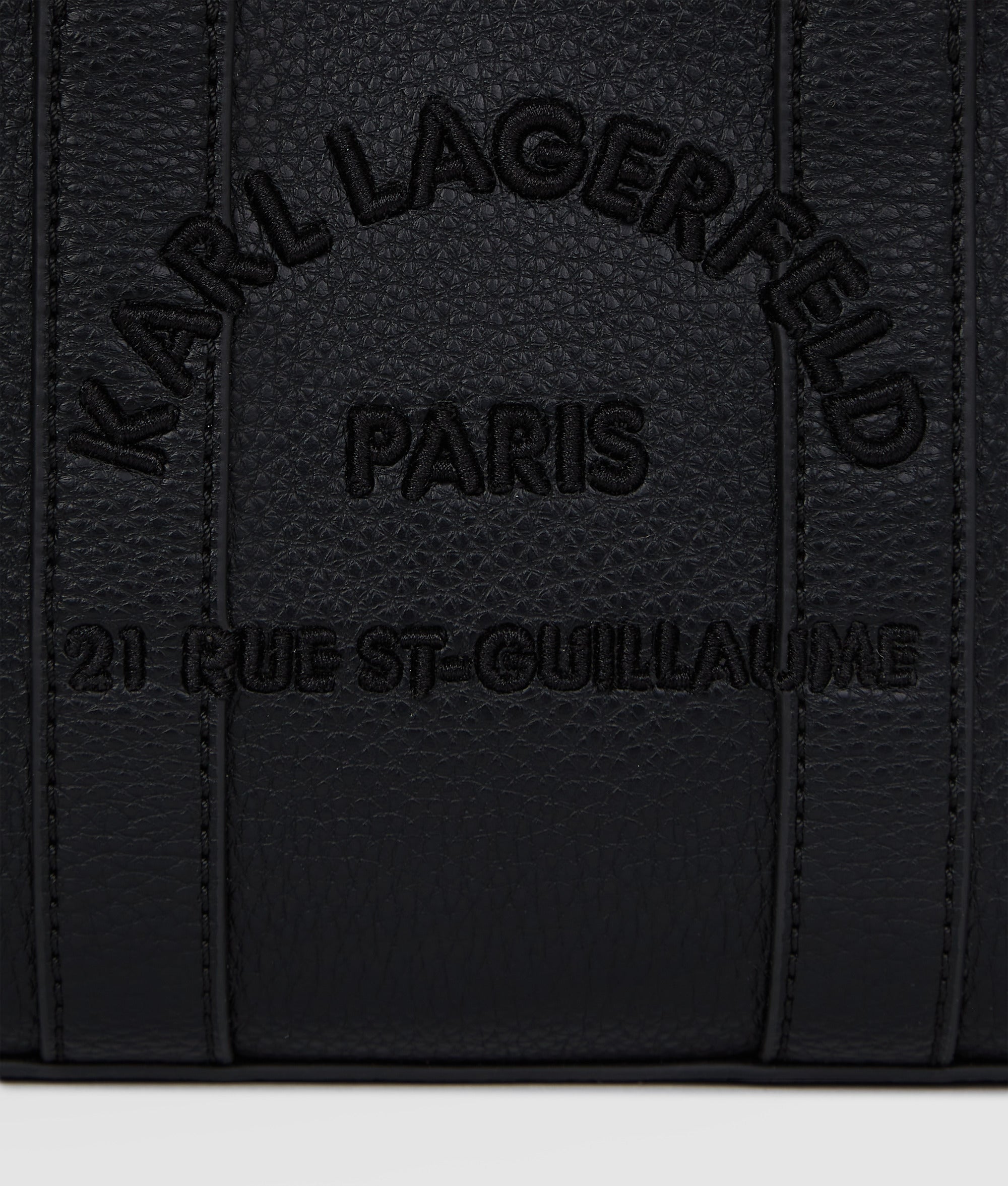 ミニサイズのトートバッグでアクセサリーをワンランクアップ。現代的なスクエア型のシルエットと風合いのあるテクニカルレザー仕上げがポイント。同系色のRue St-Guillaumeの刺繍が洗練された印象を演出。
