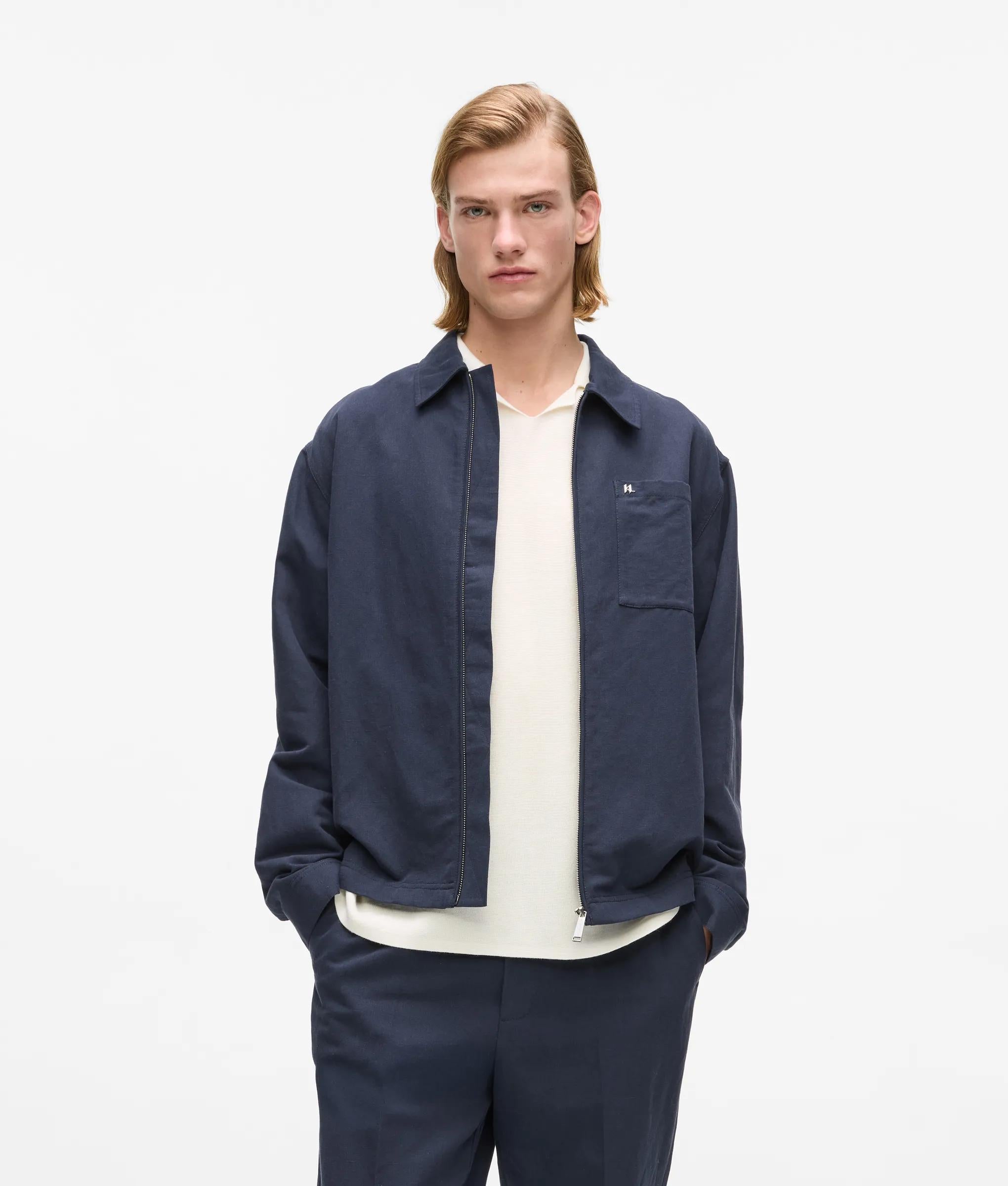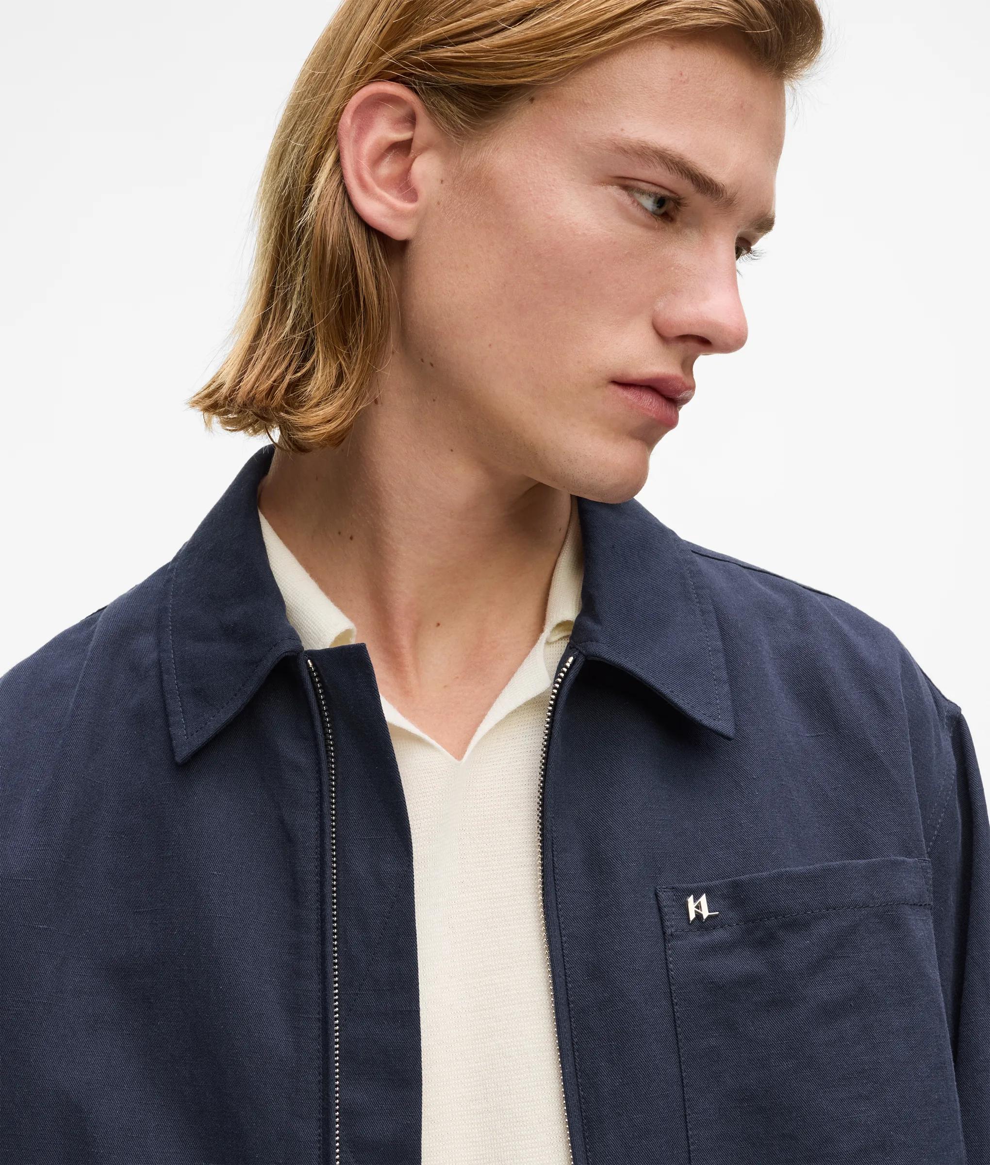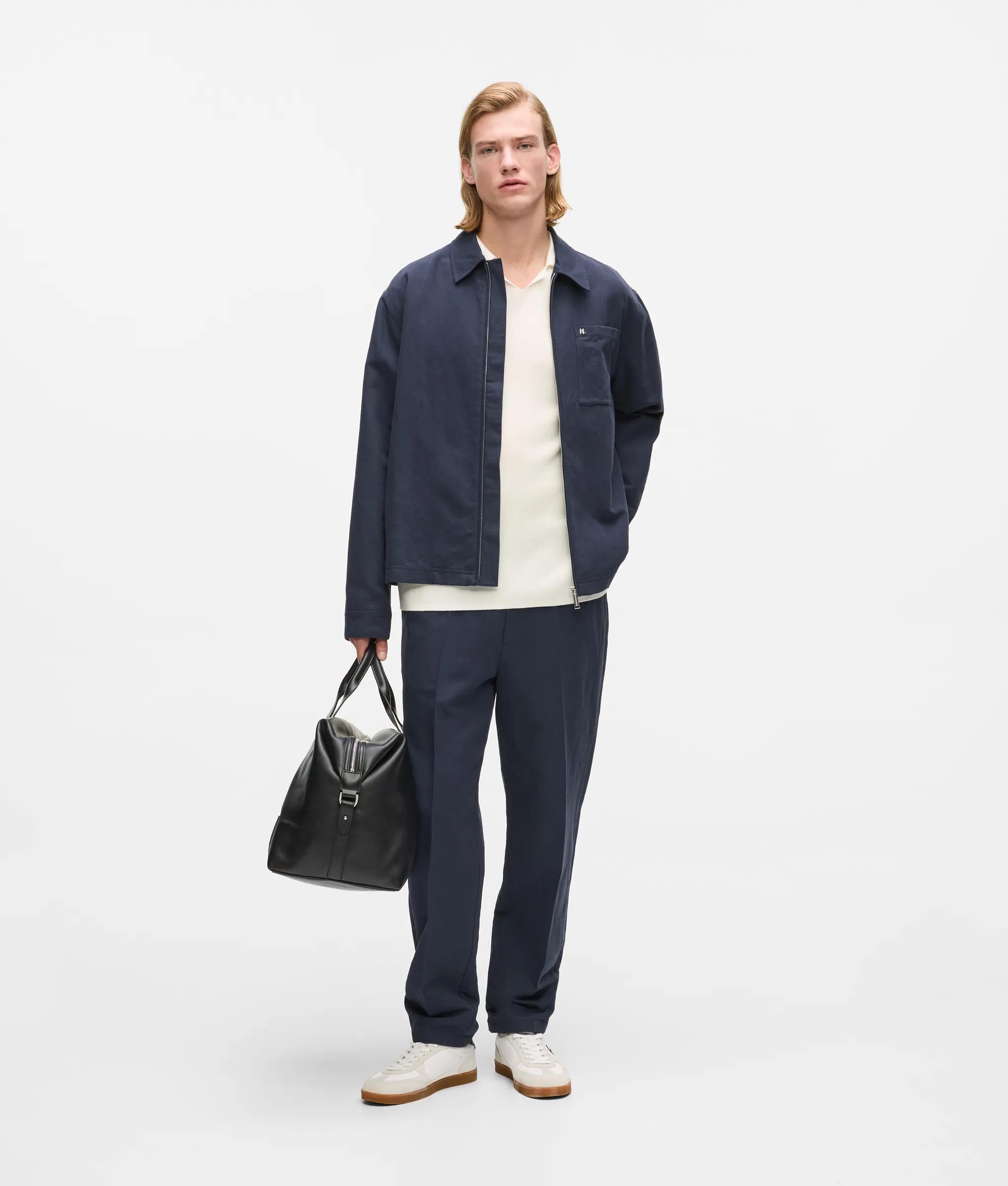 軽やかでテーラードスタイル風のエッジを効かせたフロントファスナーのジャケットは、通気性のある麻混紡素材を使用し、温暖な季節に着回しがきくアイテム。お揃いのパンツと合わせれば、リビエラにぴったりのスタイルが完成。