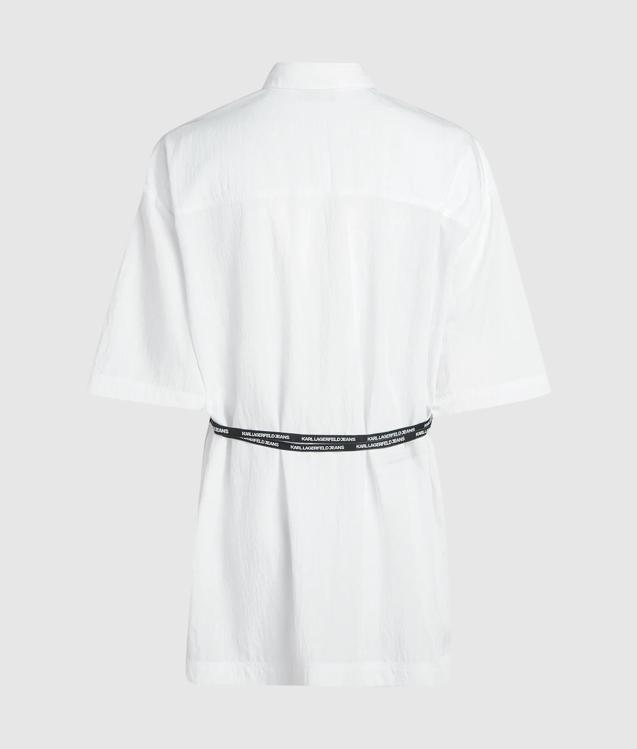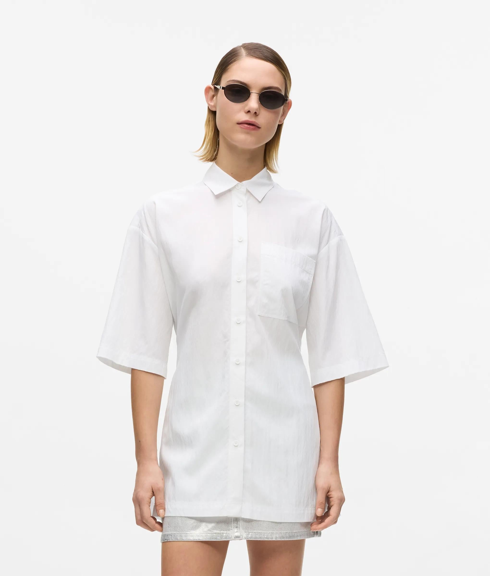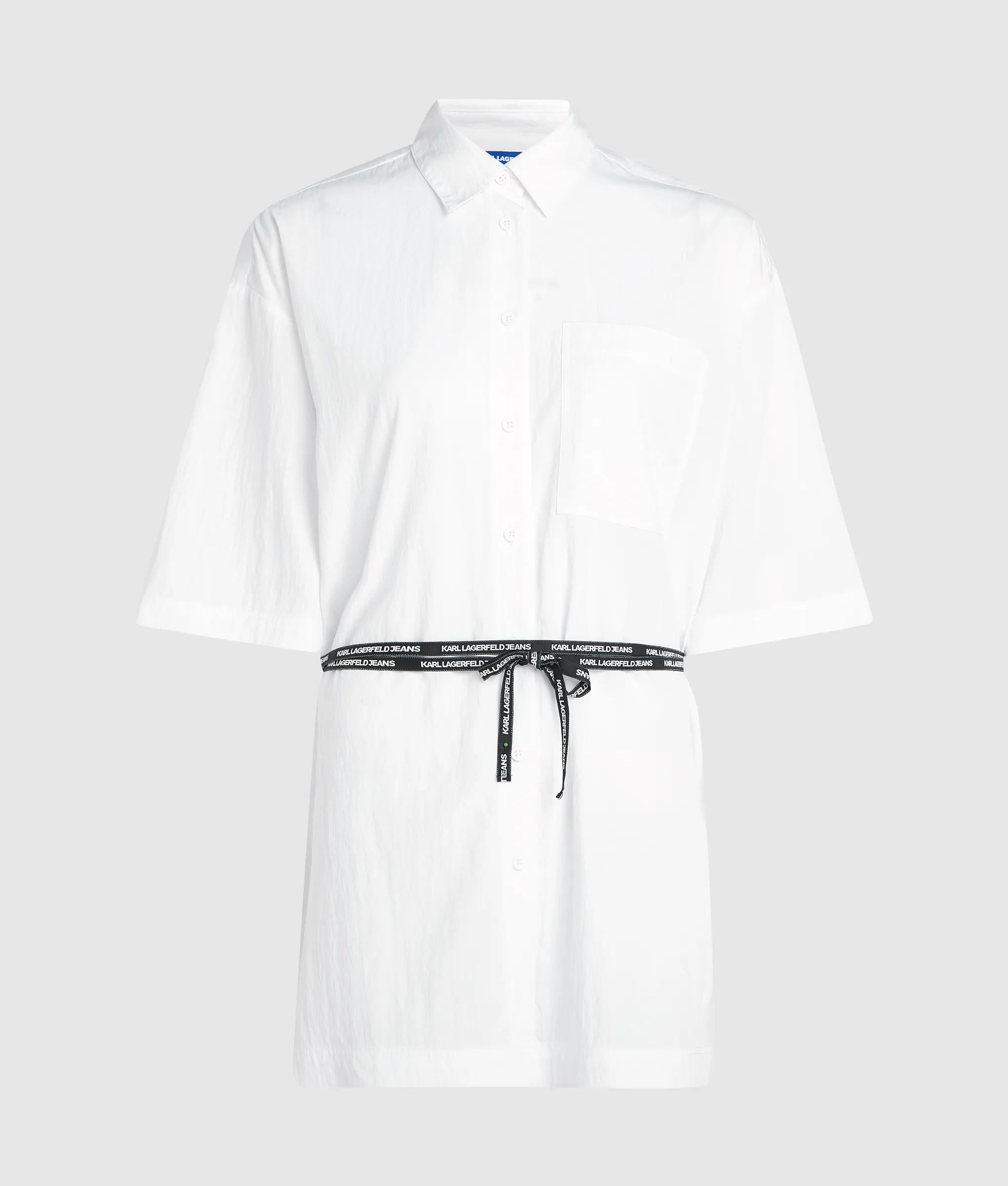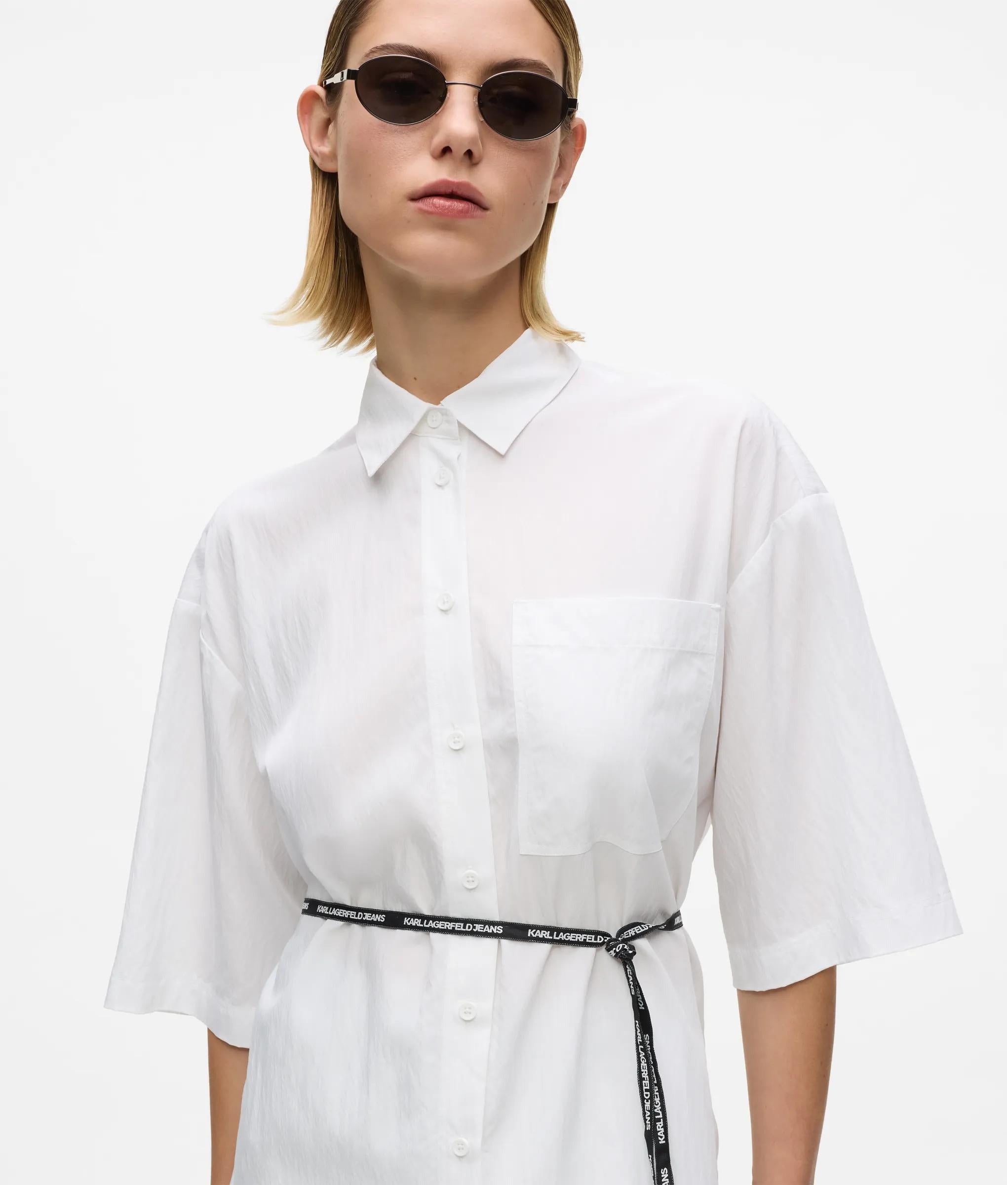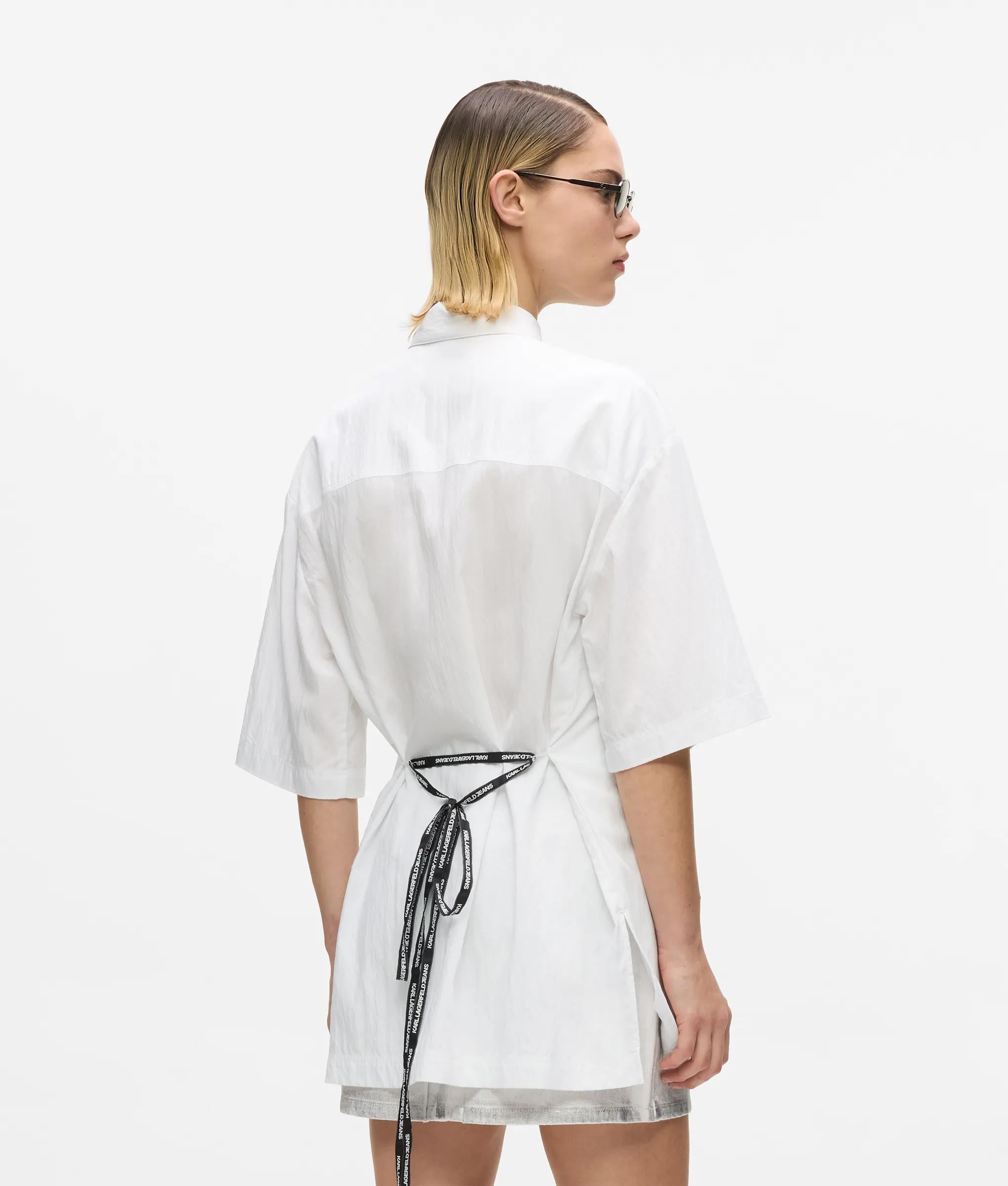 暖かい日向けに一新したクラシックなデニムシャツ。深いサイドスリットのゆったりとしたカット。シルエットがなめらかに動き、ウエストのタイがシェイプを引き締めるアイテム。デニムのショートパンツと合わせれば、そよ風の吹く昼間にぴったり。