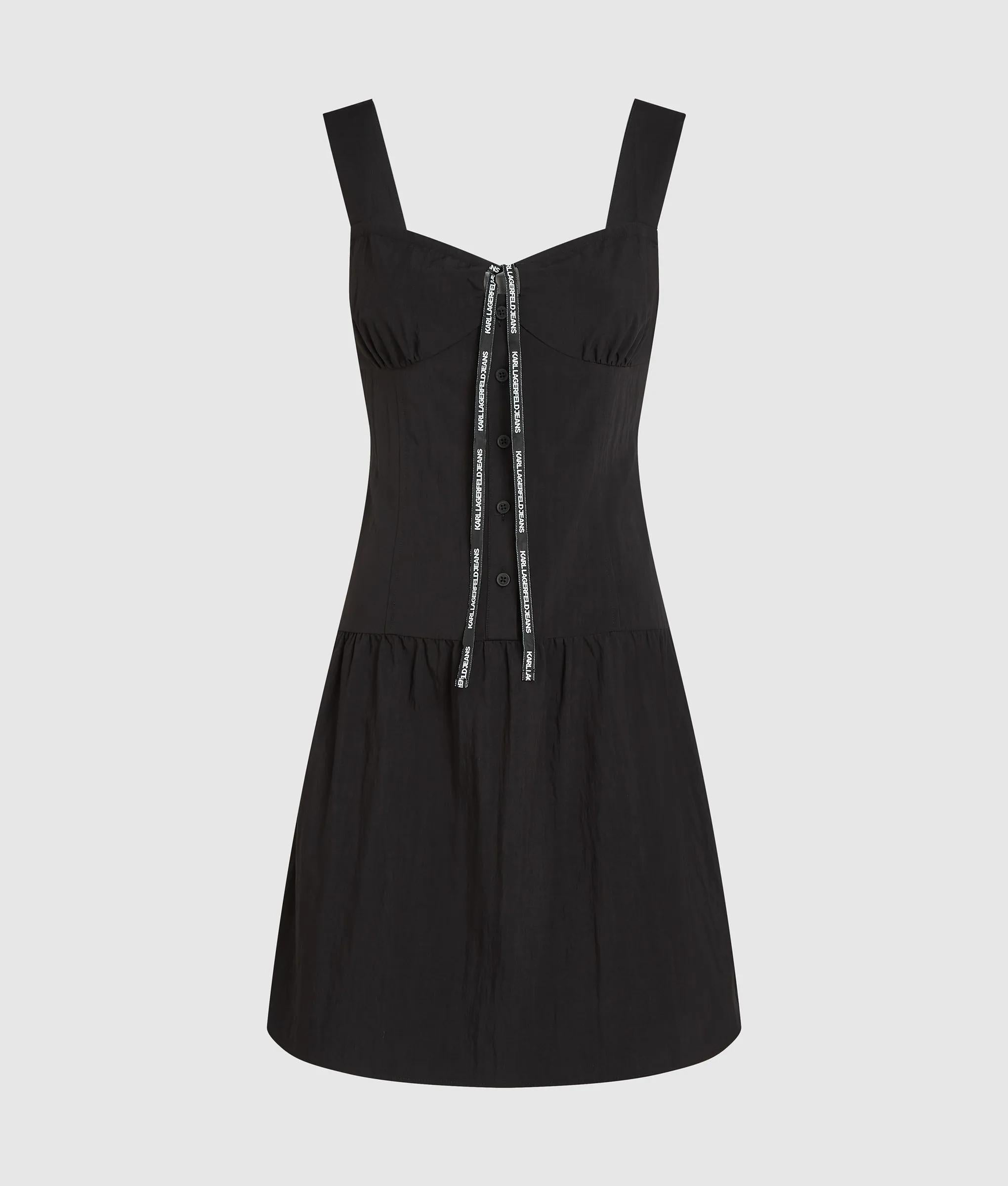 柔らかさとエッジを兼ね備えた真のKARL LAGERFELD JEANSスタイルで、ビスコース混紡のミニドレスは、ぴったりとしたボディスとスイートハートネックが特徴。調節可能なブランド名入りタイで締めたり緩めたりすれば、好みのシェイプに。