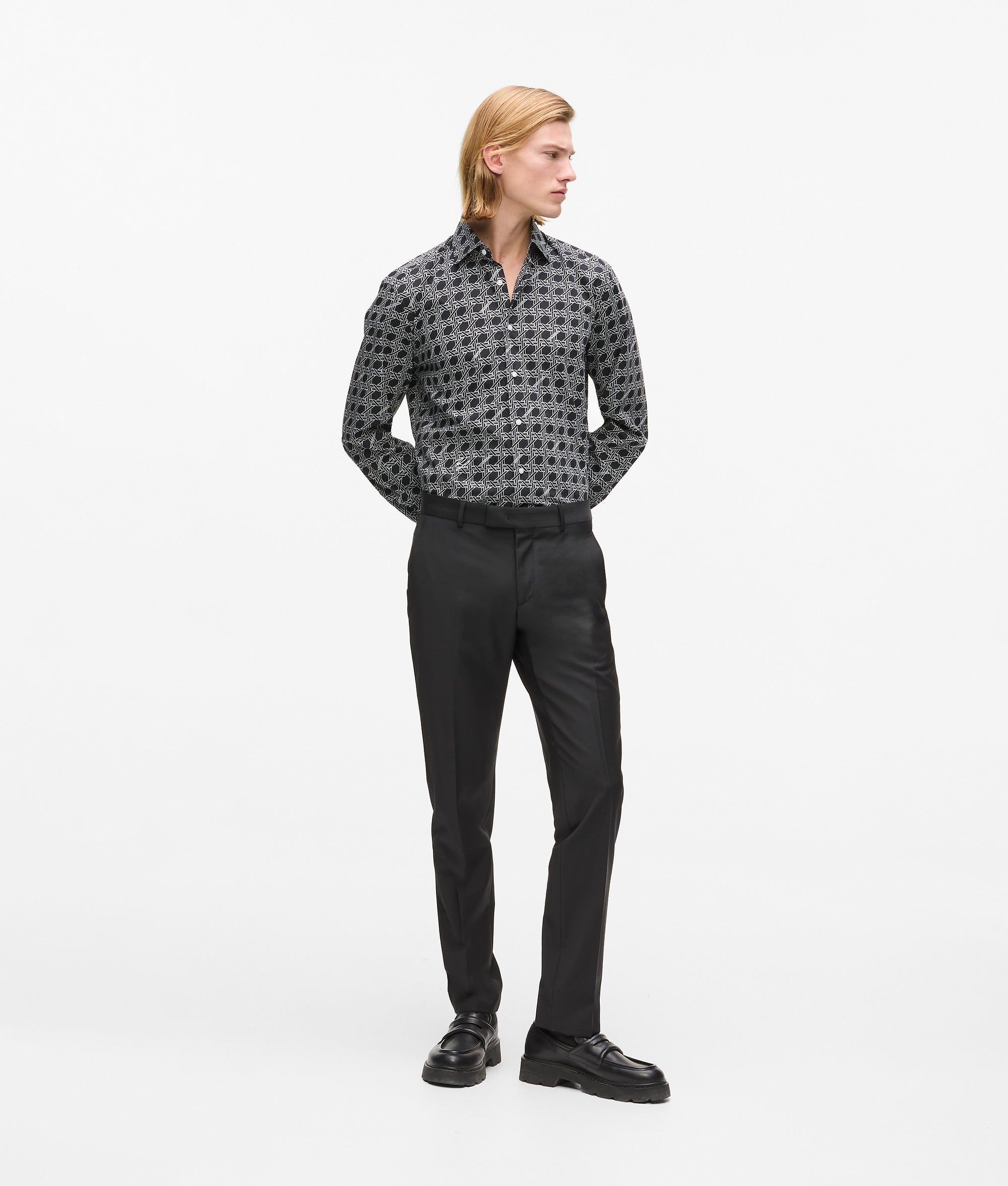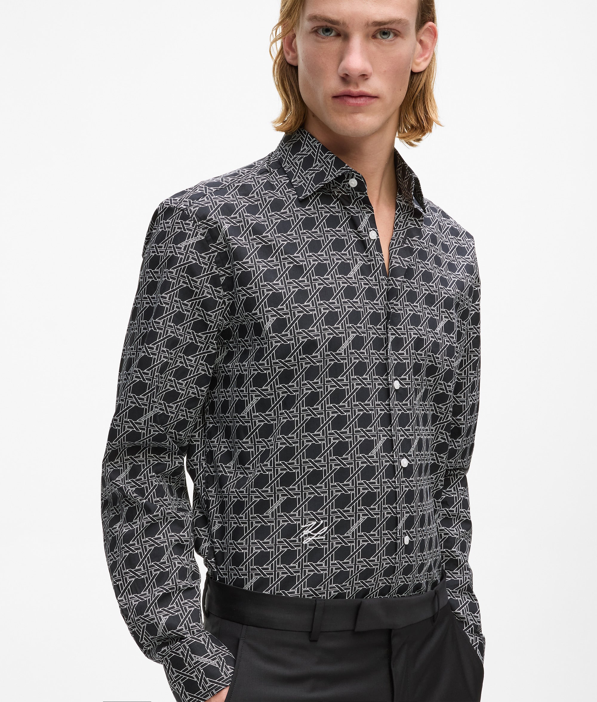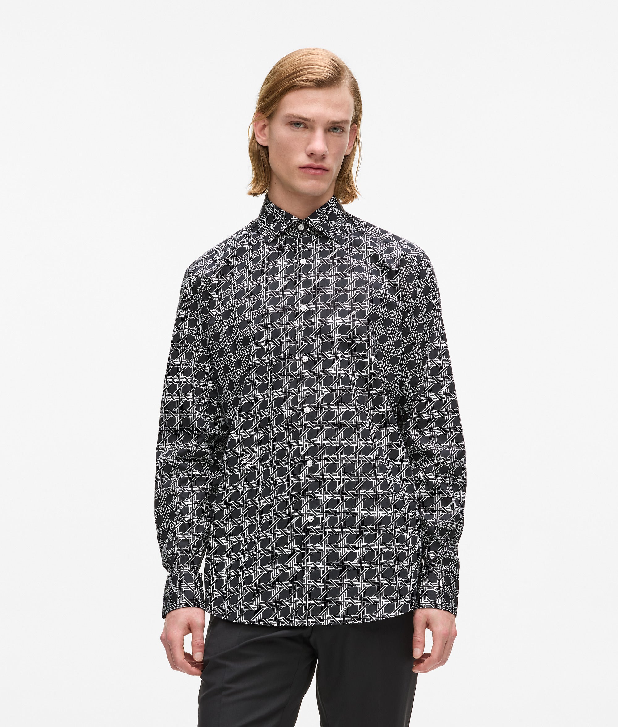 大胆な総柄プリントがボタンダウンのシャツを瞬時に個性的にアレンジ。パリッとした襟とmonogramの刺繍が洗練された印象を与え、昼夜を問わず活躍する一枚。