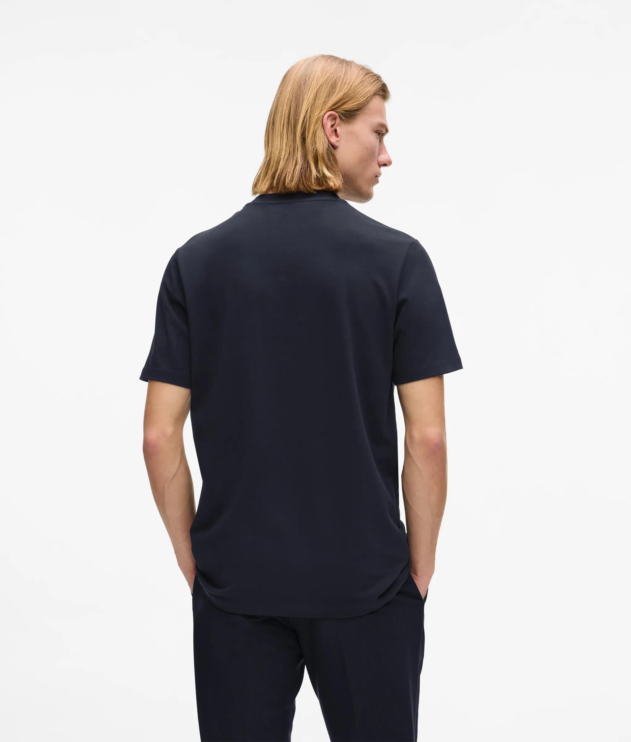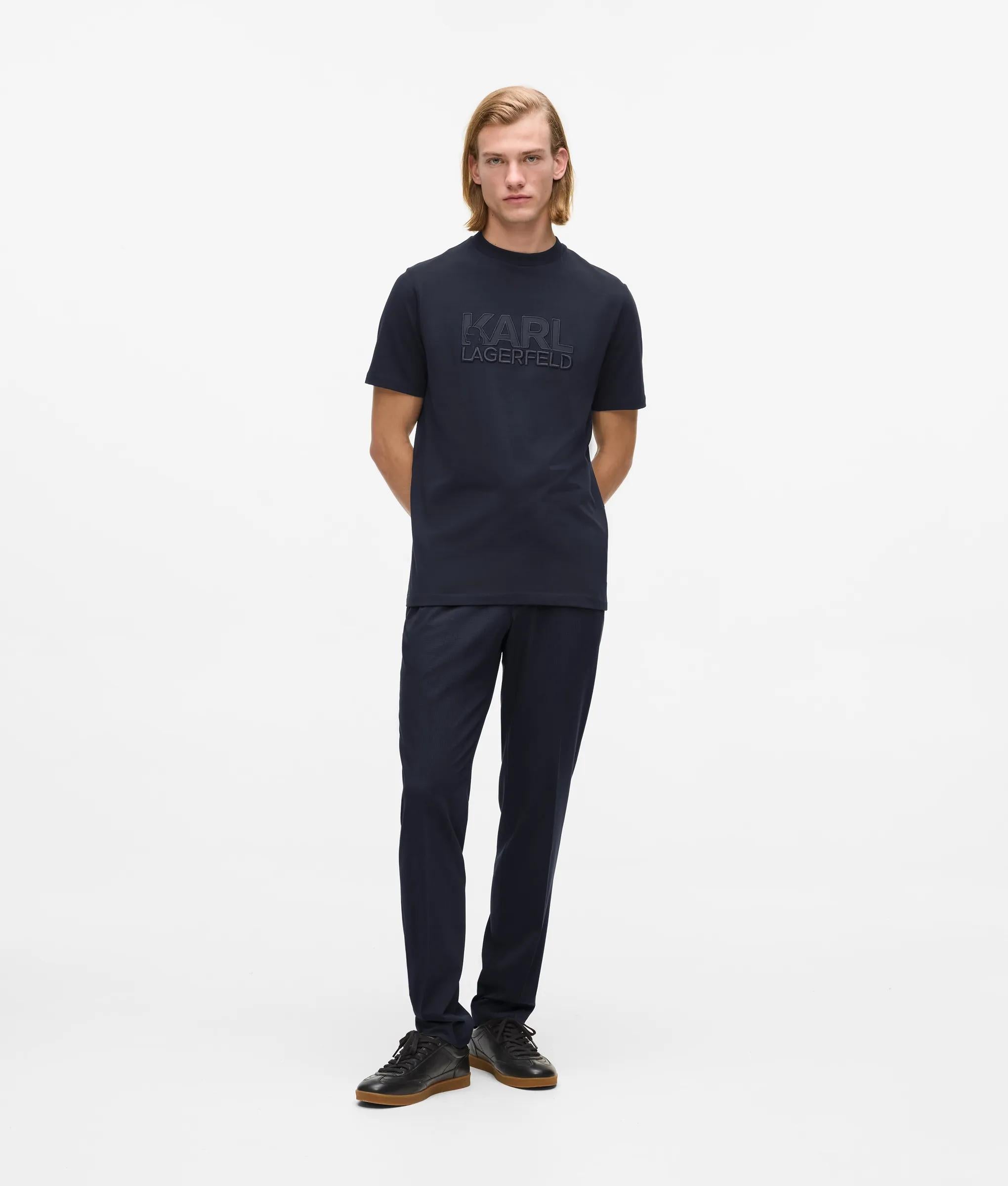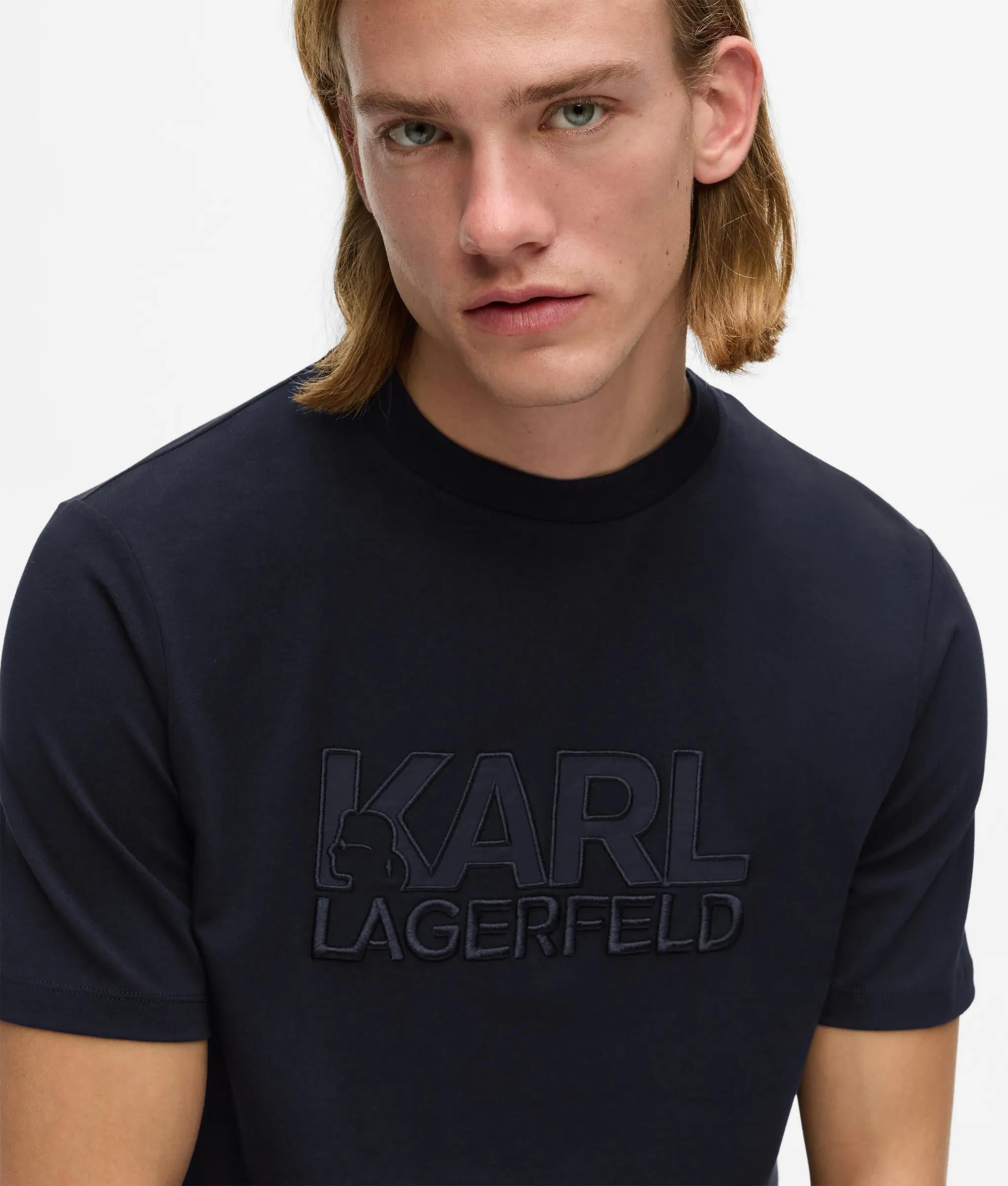 柔らかなコットン素材がカジュアルな雰囲気を醸し出すクルーネックのTシャツ。半袖で、胸元に大胆なナイロンのロゴがあしらわれた、快適さと現代的なグラフィックタッチが融合した一枚。
