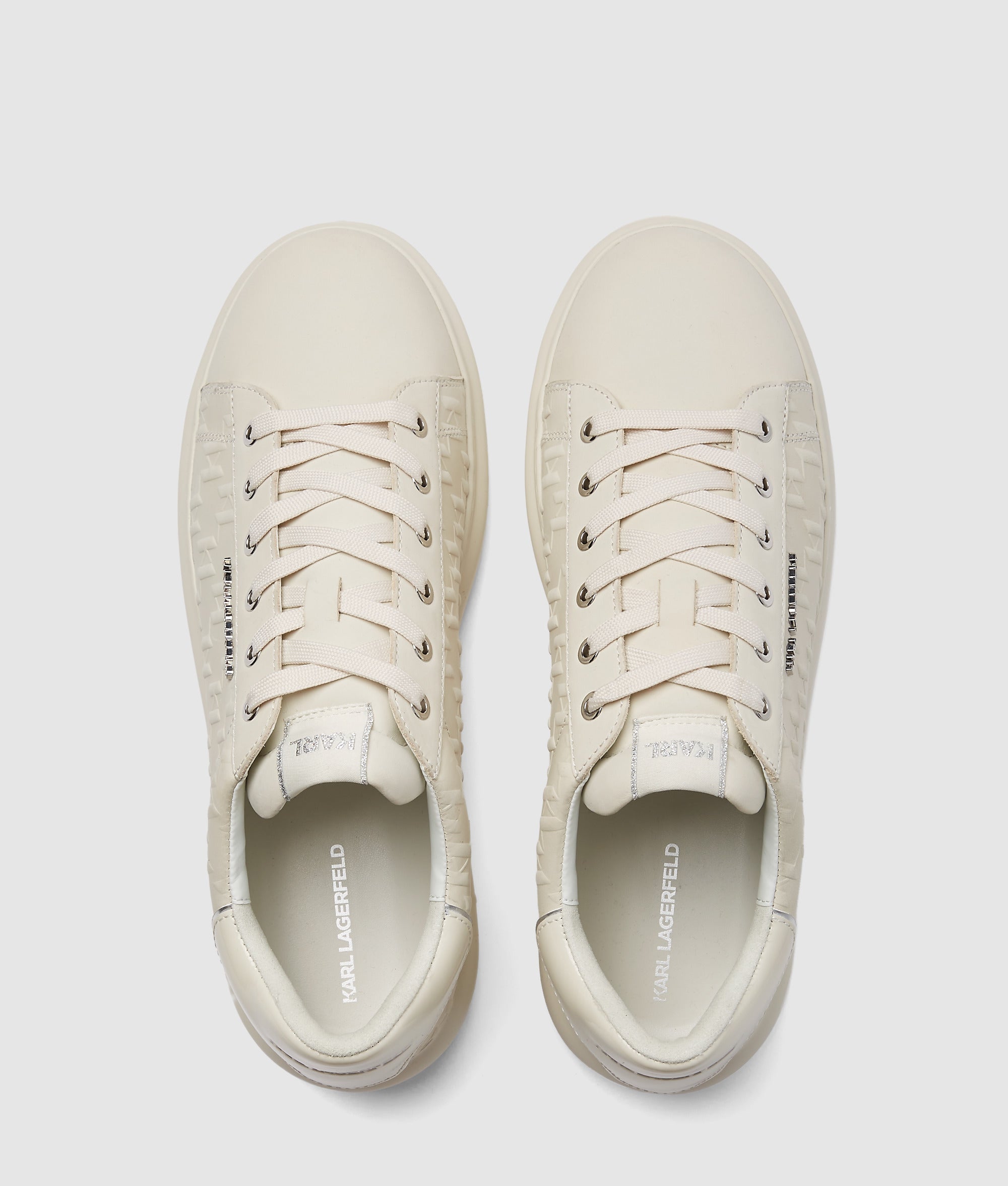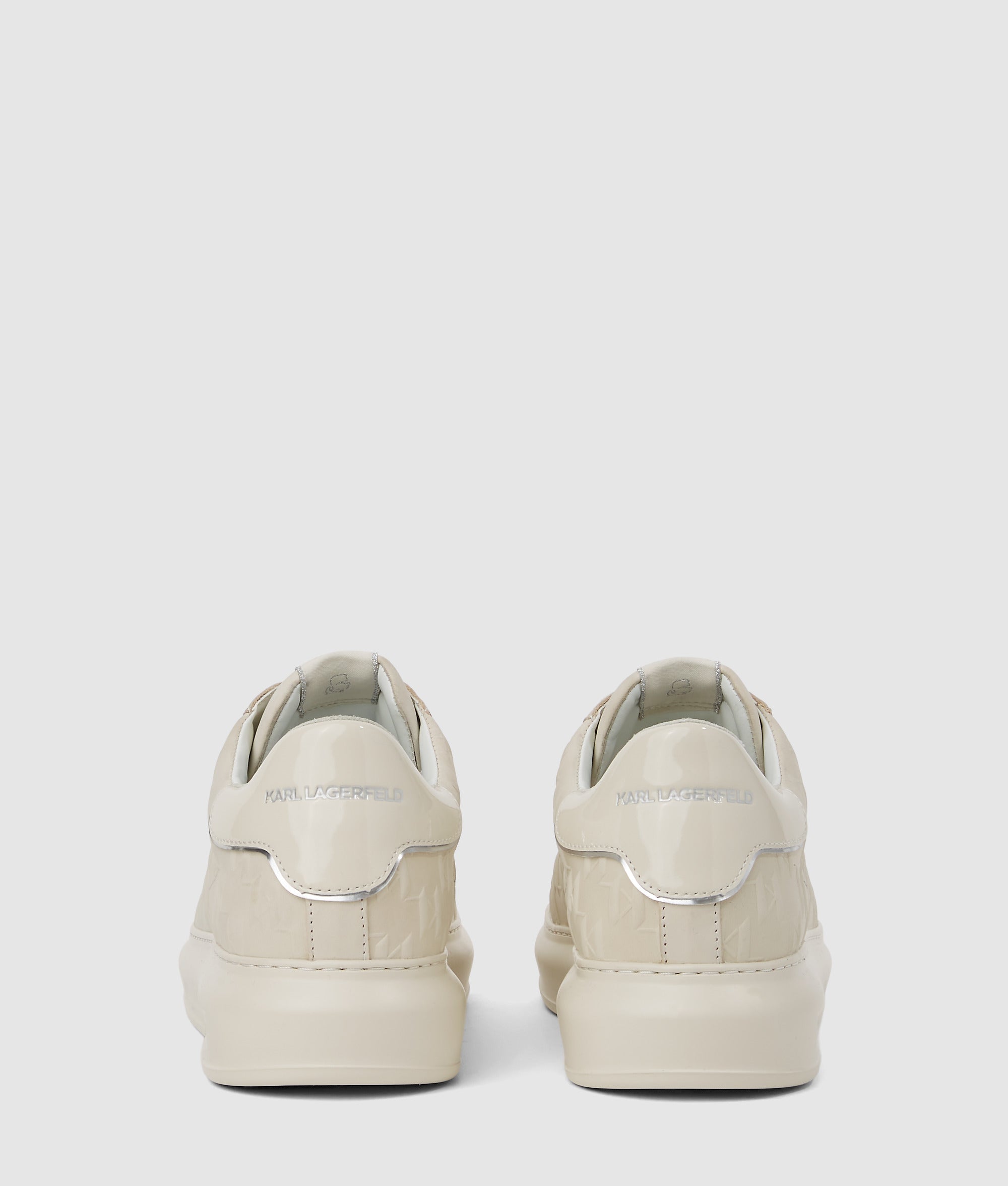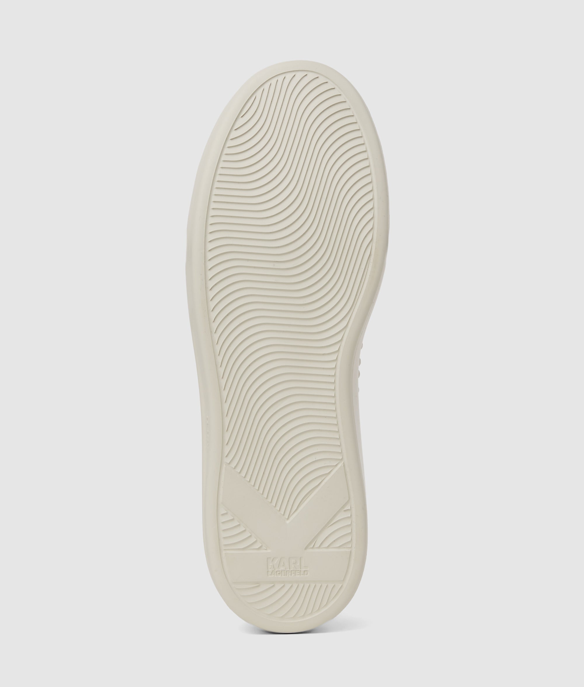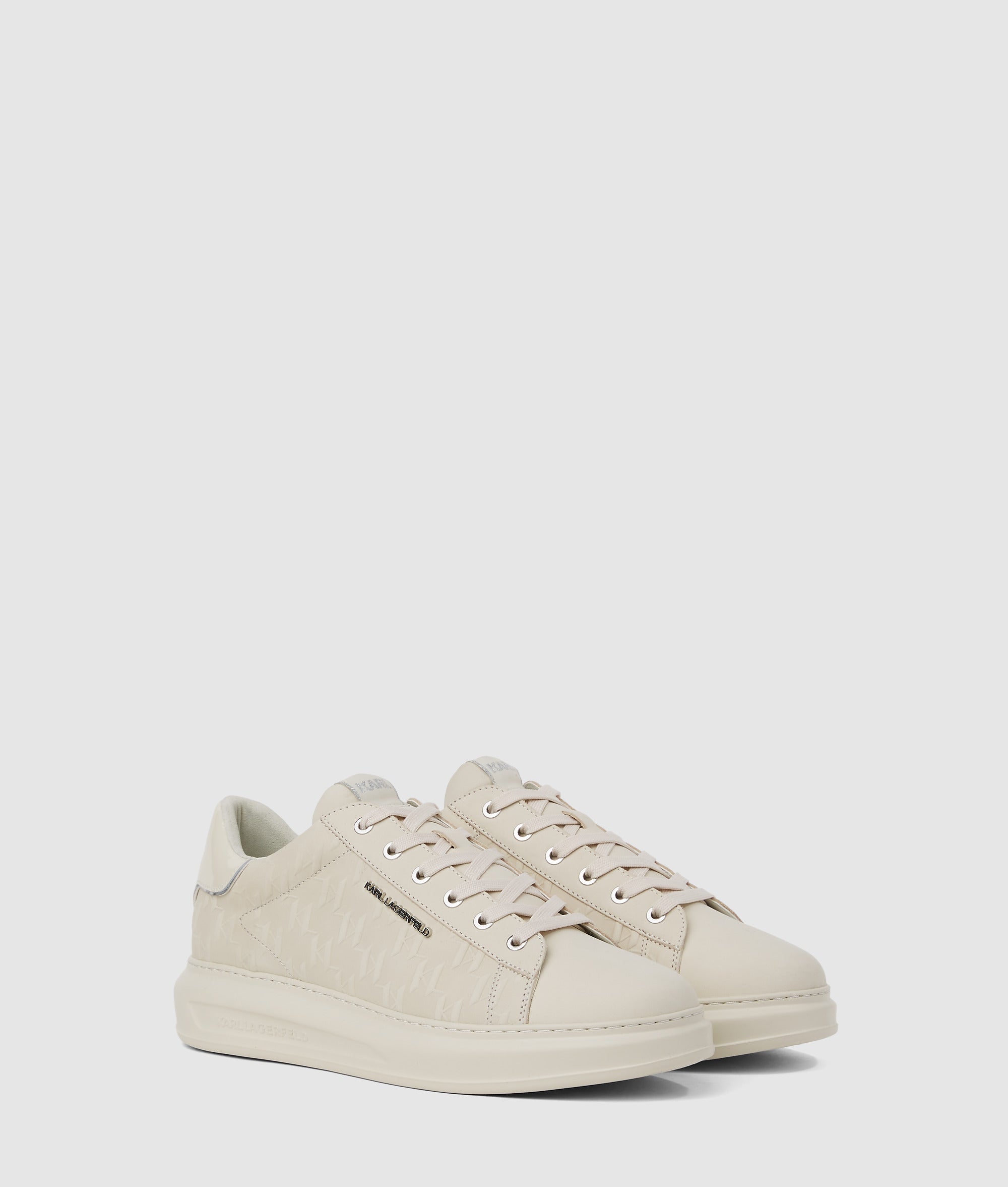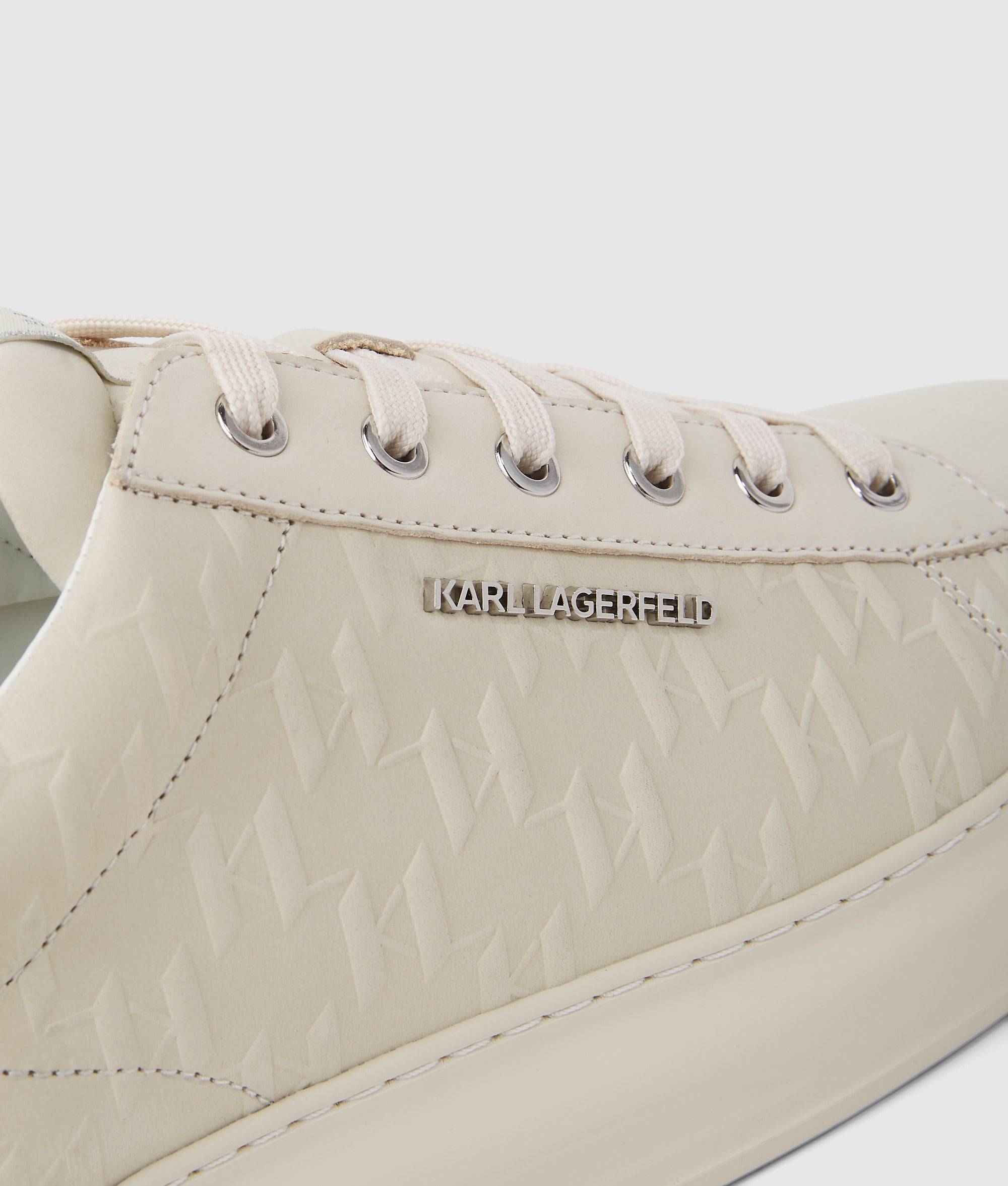 存在感のあるスニーカーで、スタイリッシュにお出かけ。柔らかなヌバックレザーを使用した、KARL LAGERFELDのロゴとKARL Monogramの総柄をあしらったヒールカウンターが印象的な一足。