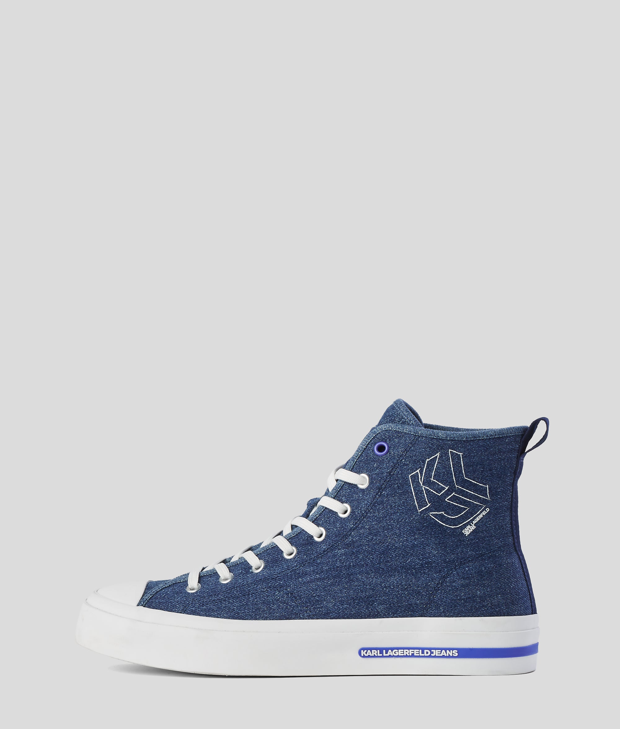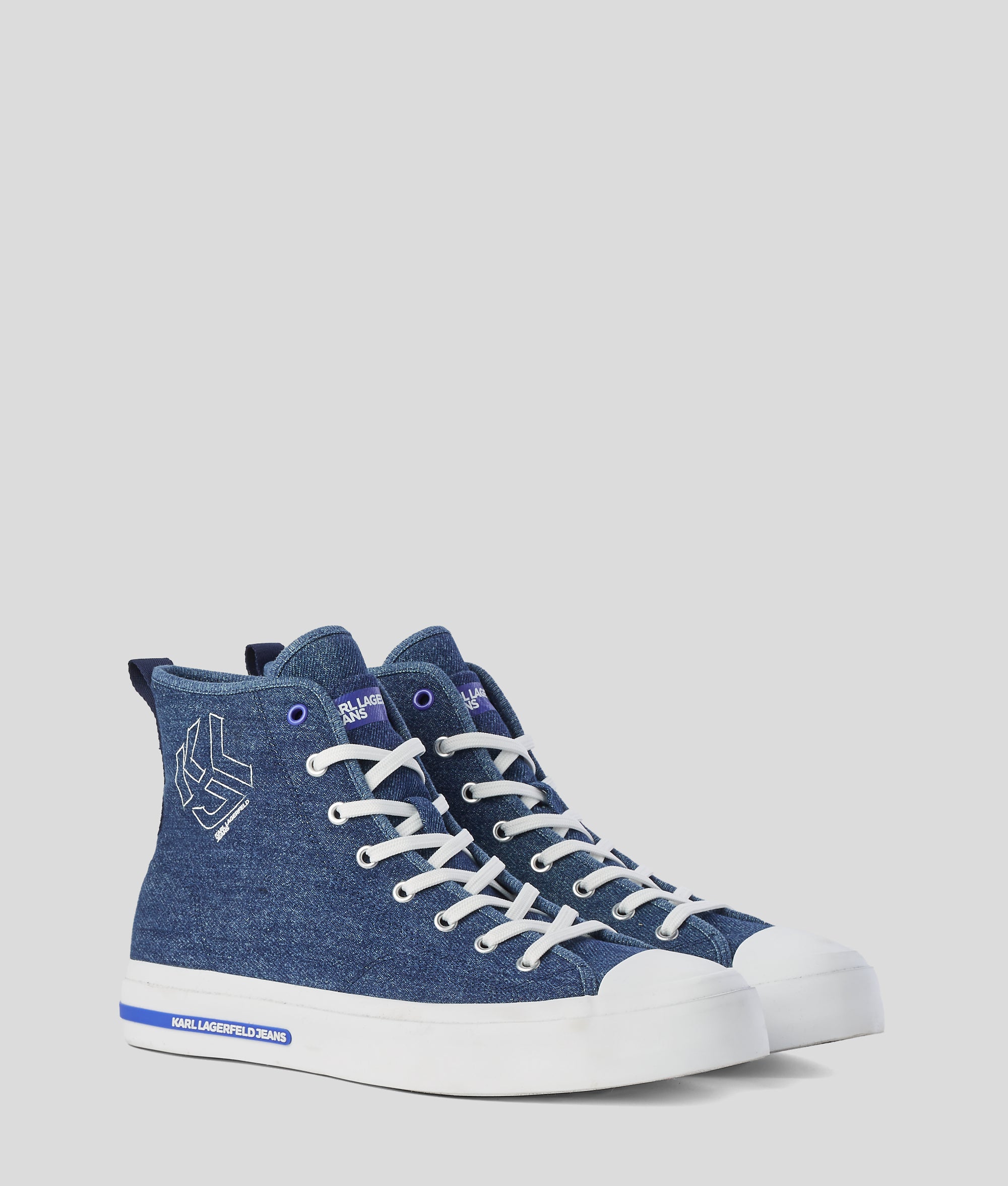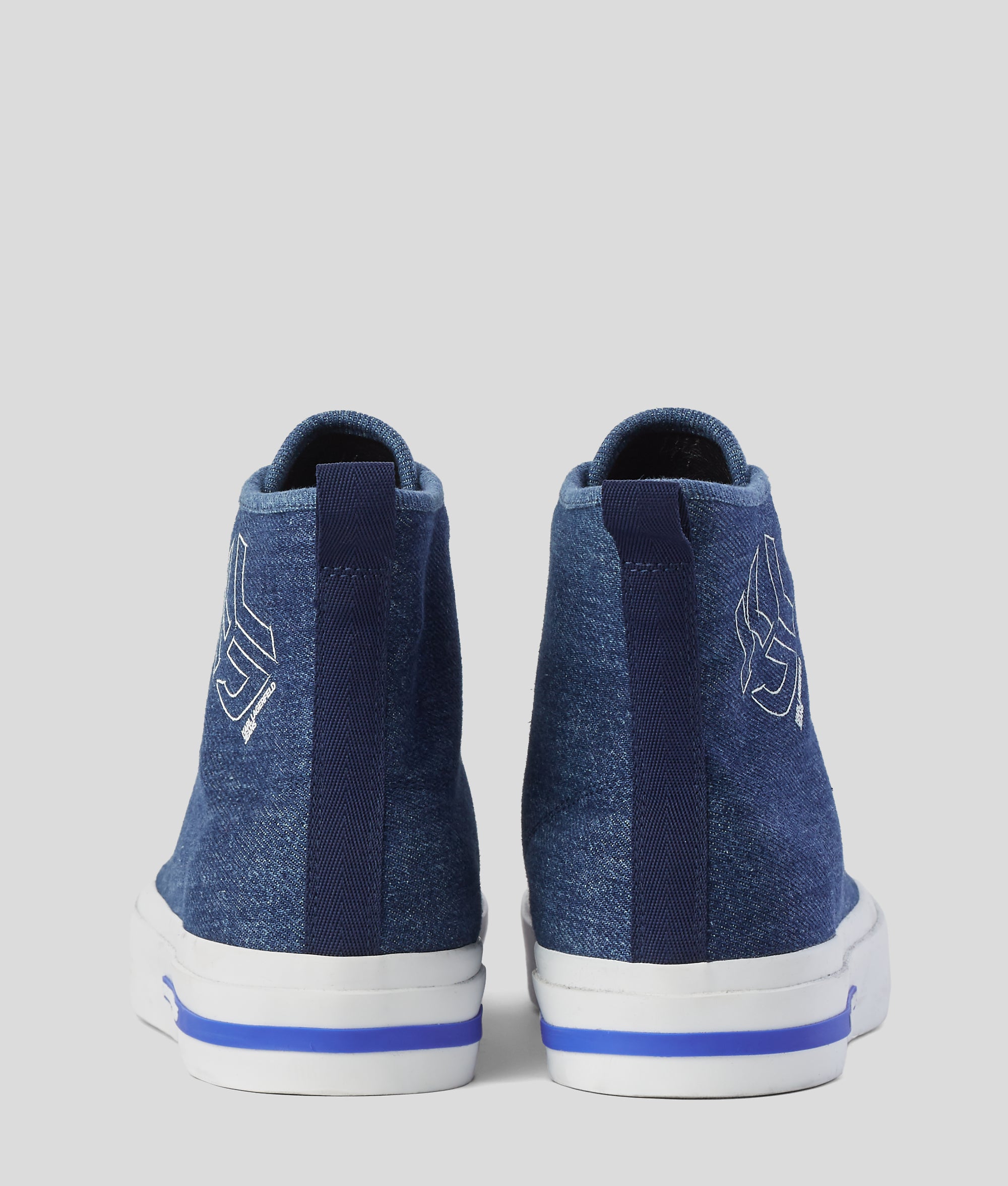 ウォッシュドデニムのアッパーに、KARL LAGERFELD JEANSのロゴ刺繍を施したスニーカー。つま先のラバー製キャップがアクセントに。