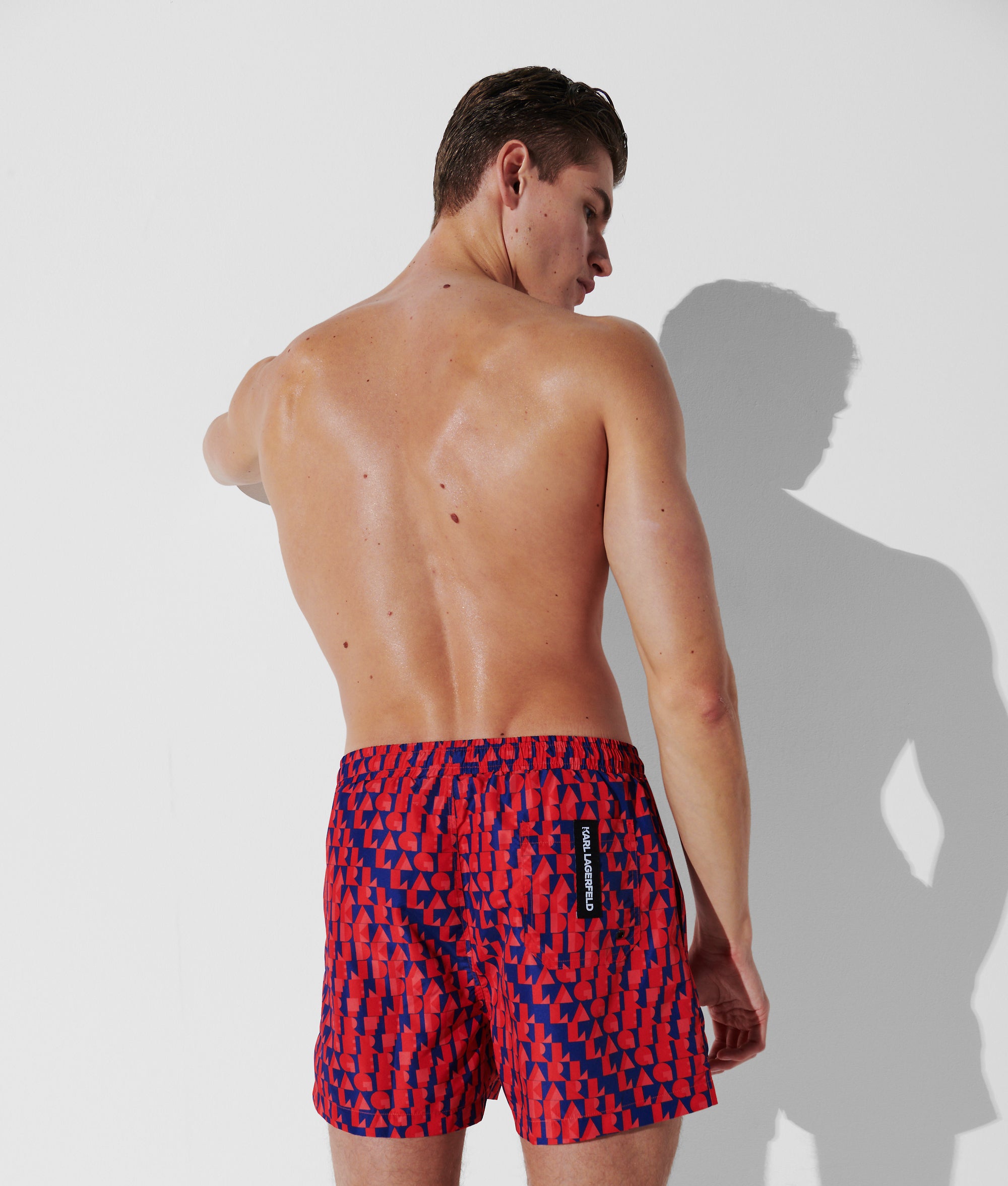 Voor een opvallende verschijning op het strand of bij het zwembad is deze klassieke boardshort versierd met een betoverende KARL-logoprint in vrolijke zomerkleuren.