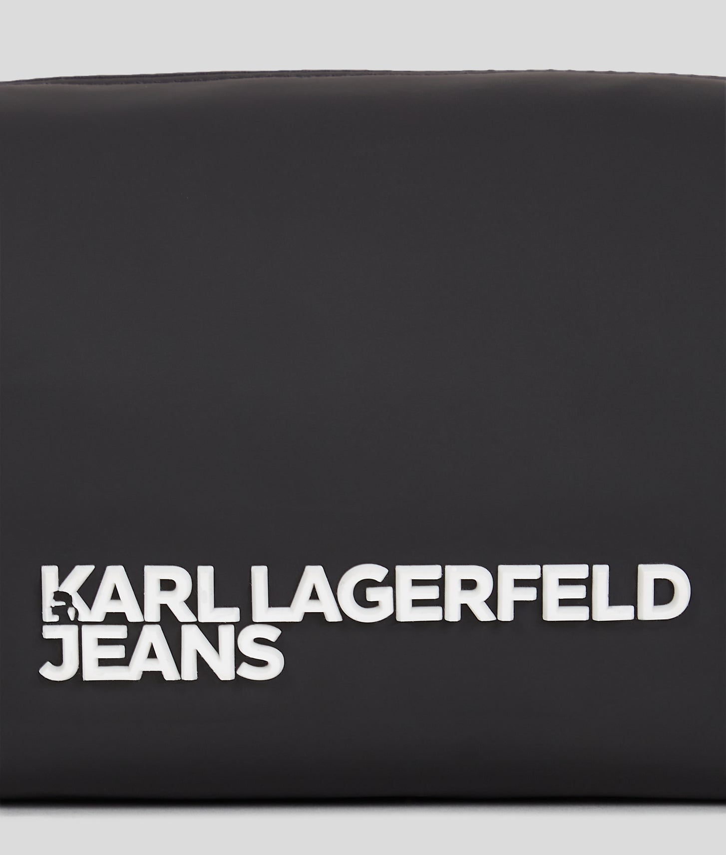 Deze technische waszak van leer combineert een strakke, gevoerde afwerking met essentiële functionaliteit, inclusief een stevige ritssluiting aan de bovenkant en een merkgebonden handvat. De opvallende KARL LAGERFELD JEANS-branding maakt een statement en is perfect voor wie waarde hecht aan vorm en functie.
