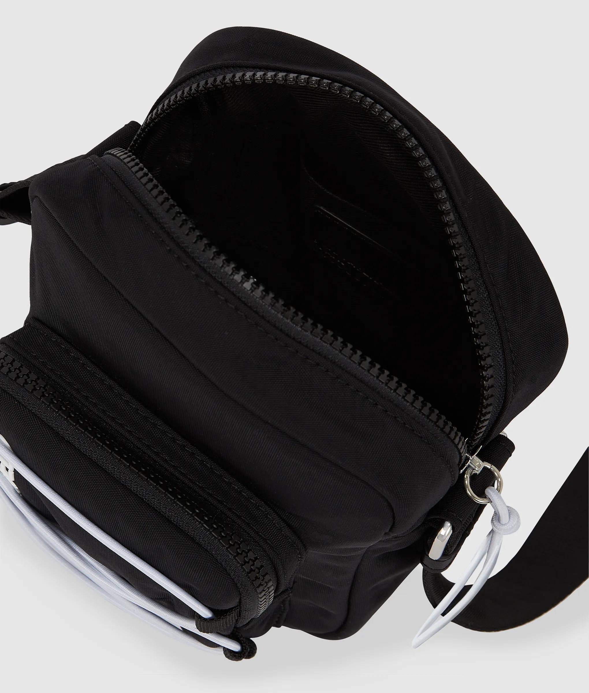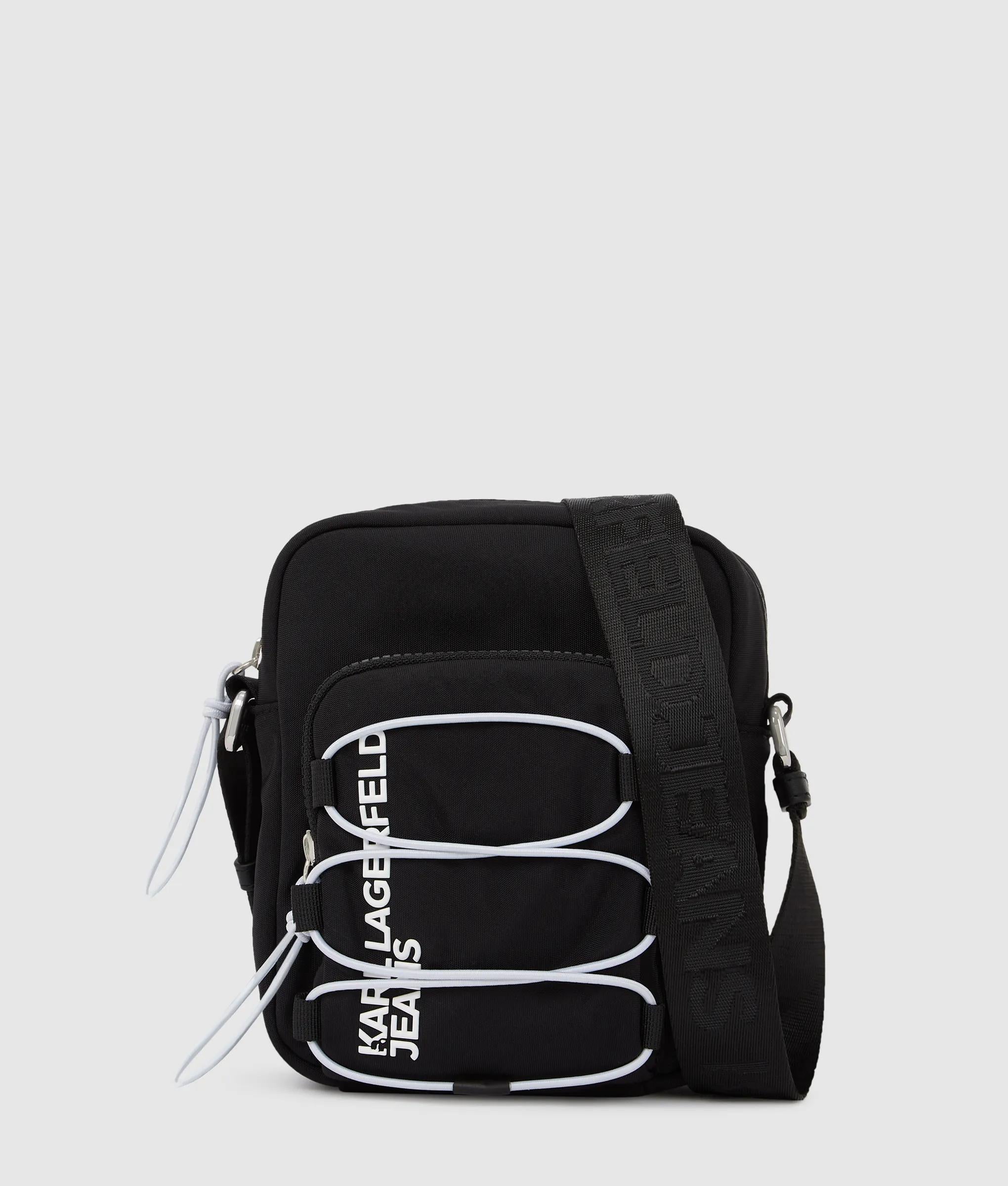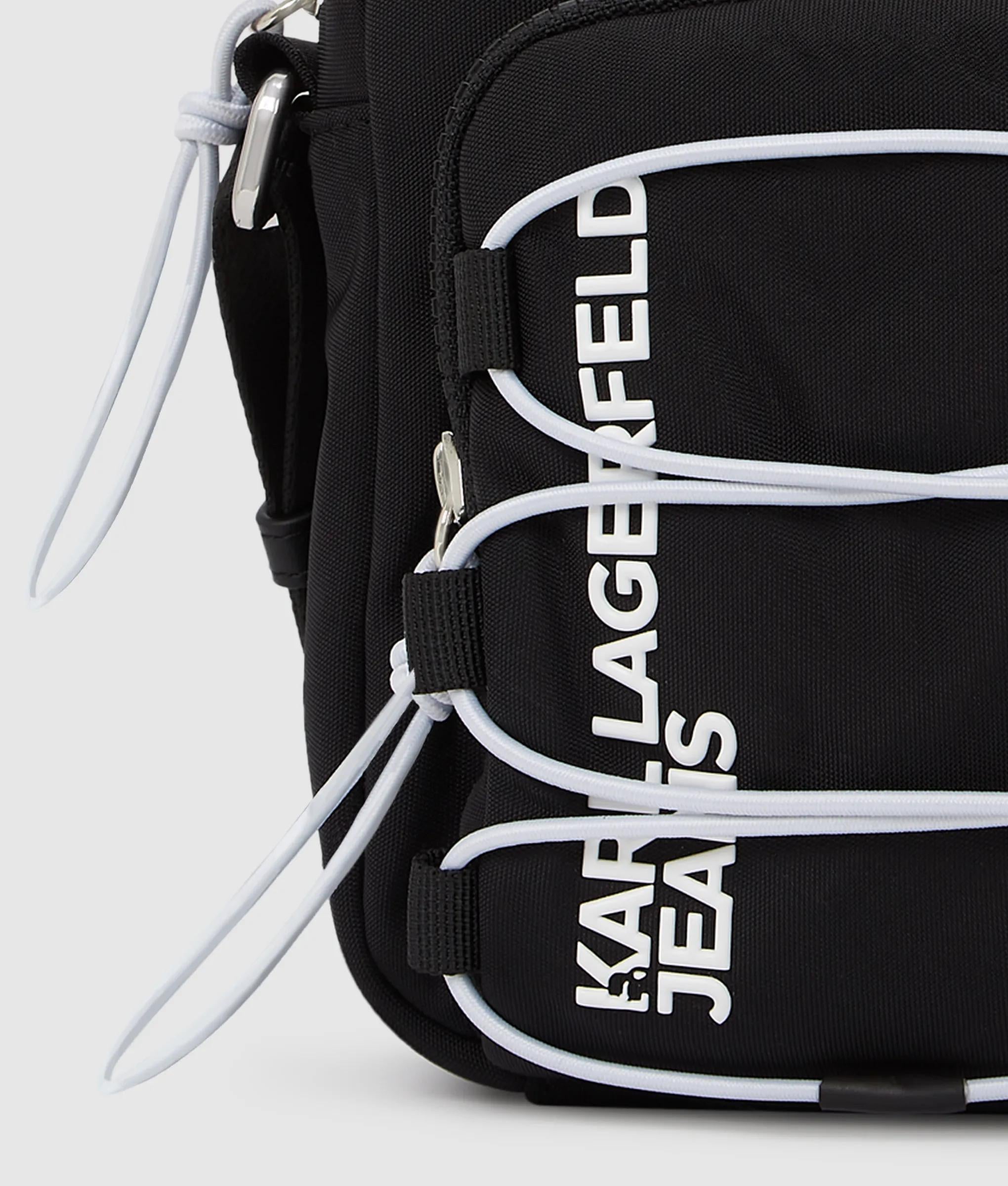Een veelzijdige reporterstas van gestructureerd nylon, met een stevig ritssluiting en verstelbare riem. Verankerd door edgy trekkoord details en opvallend KARL LAGERFELD JEANS logo, perfect voor street-ready looks.