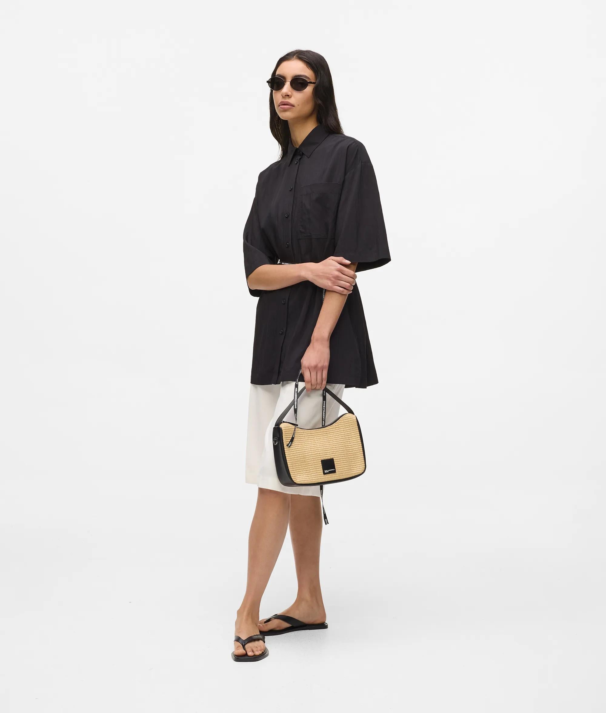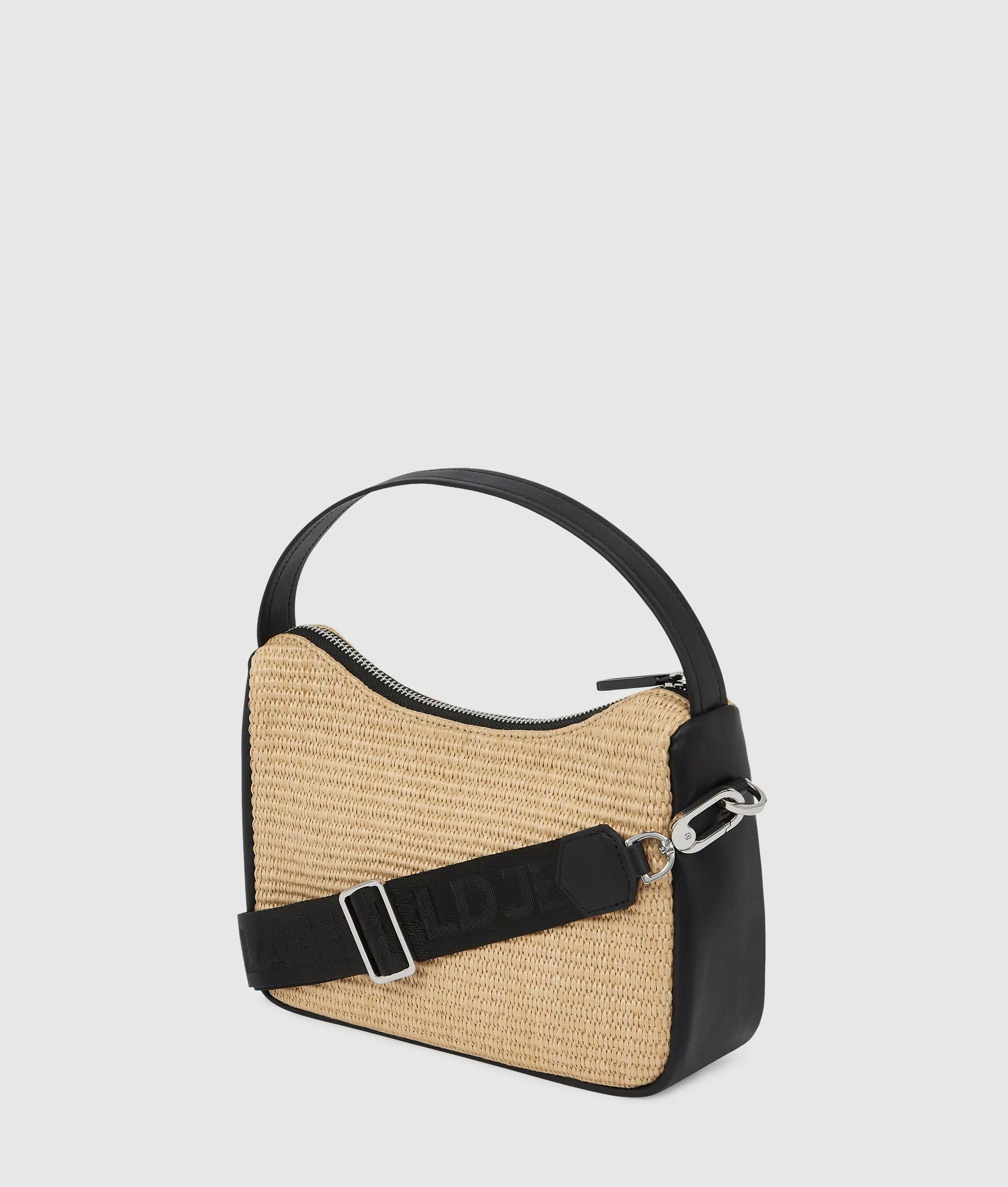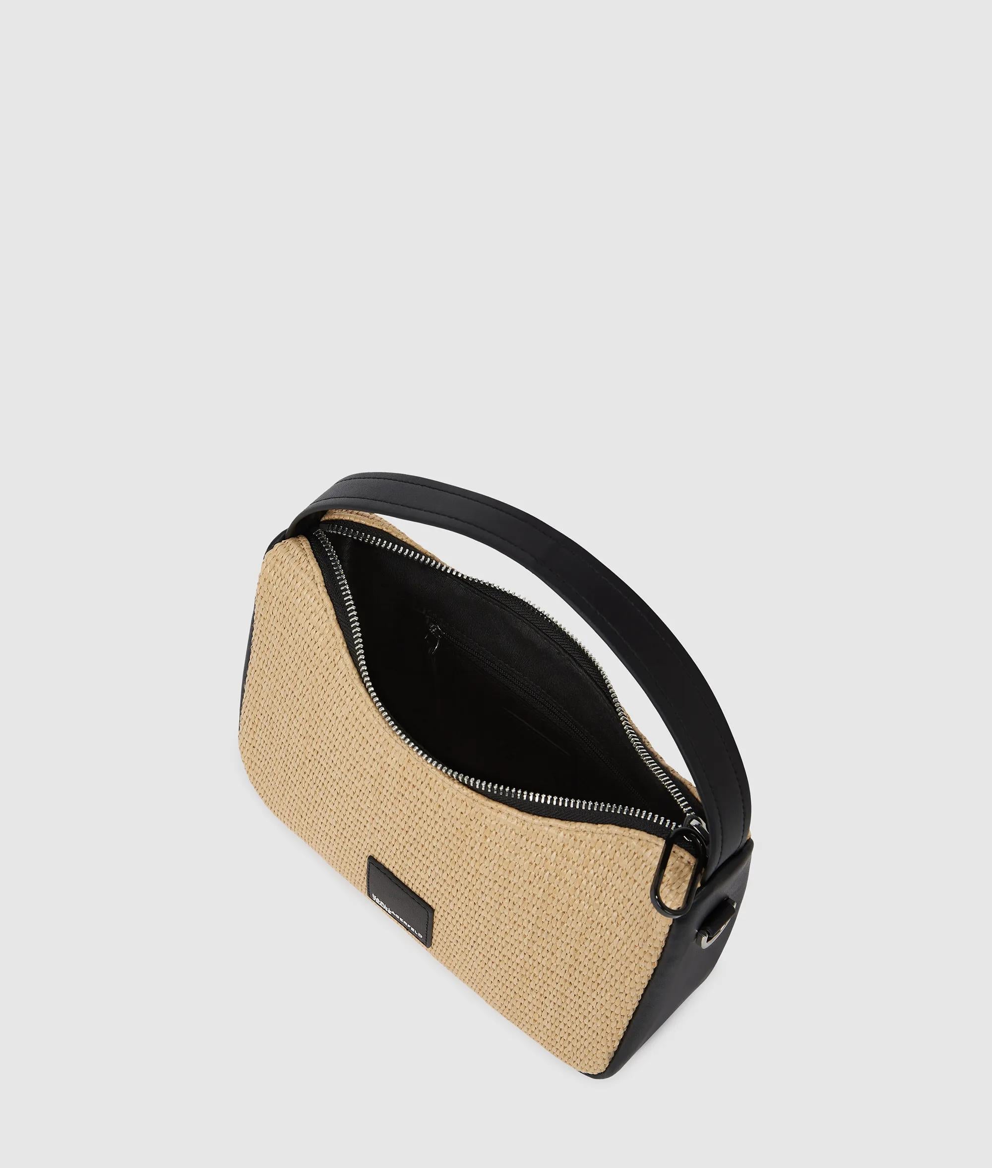 Een opvallende mini schoudertas met een stevig ritssluiting, veelzijdige riem en zomerse geweven afwerking, die opvallend KARL LAGERFELD JEANS attitude combineert met alledaags gemak en stijl.