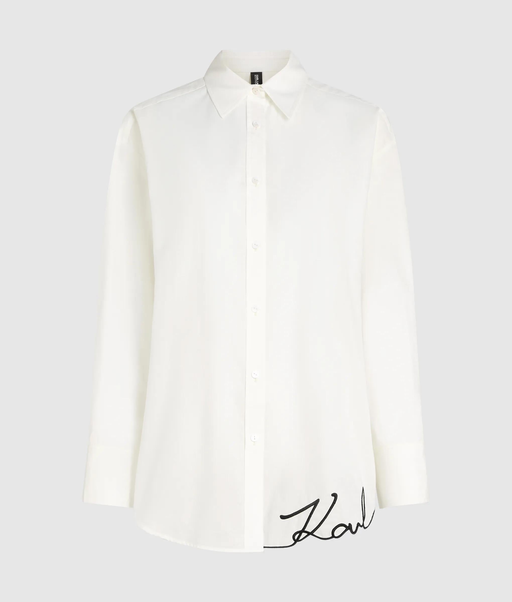 Een ontspannen oversized strandshirt shirt met een luchtig katoen gevoel en een opvallend handtekening logo op de zoom. Het ontwerp met knoopsluiting is perfect om moeiteloos over badmode te dragen.