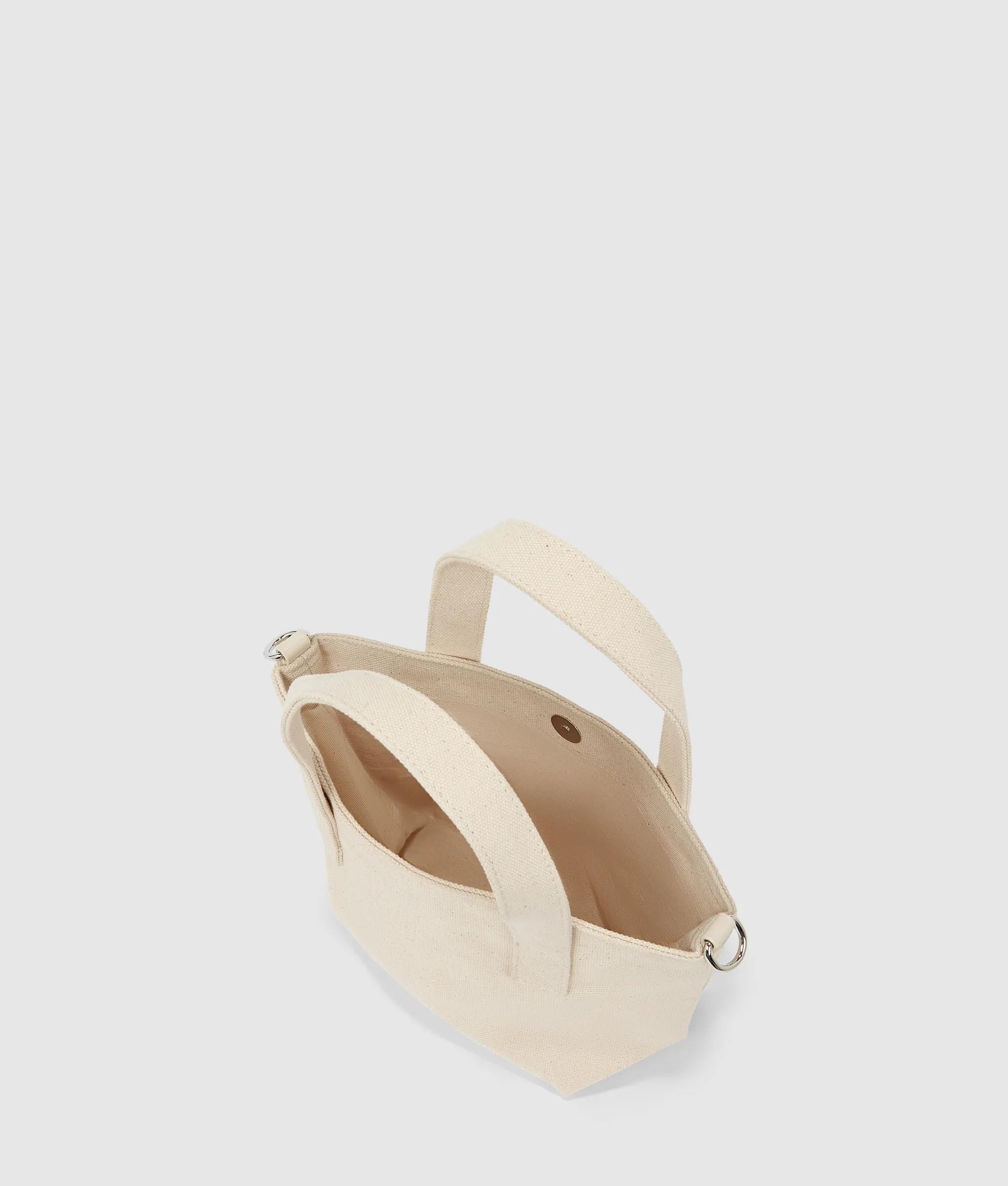 Glinsterende glittersteentjes verlichten de compacte shopper, die geweven katoen combineert met veelzijdige handgrepen voor een moeiteloze elegantie in de stad.