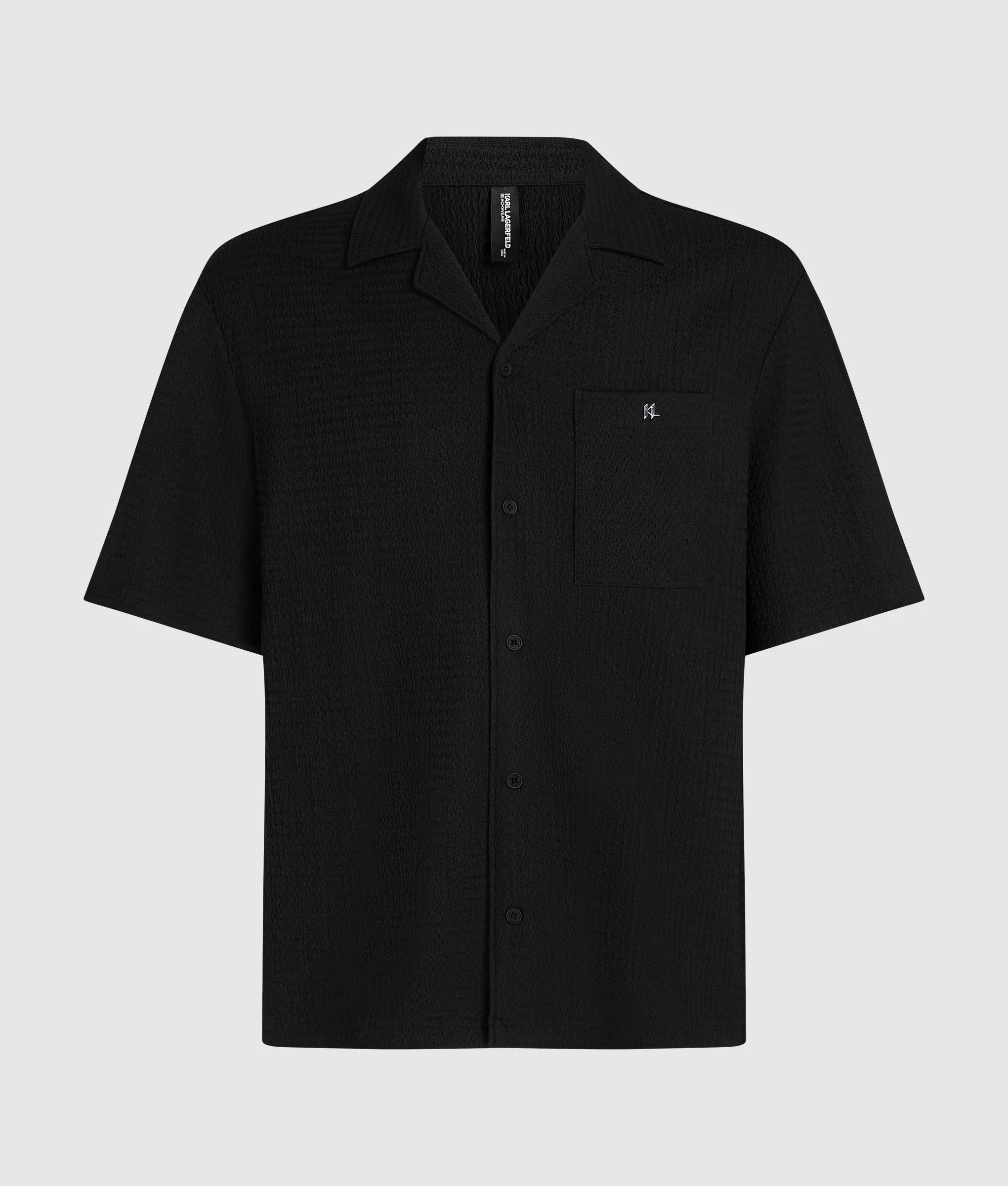 Licht speelt over een gestructureerde weave, wat dit badmode shirt met korte mouwen een ontspannen maar verfijnde uitstraling geeft. De knoopsluiting en de met monogram bedrukte borstzak zorgen voor een subtiel, gepolijst detail.