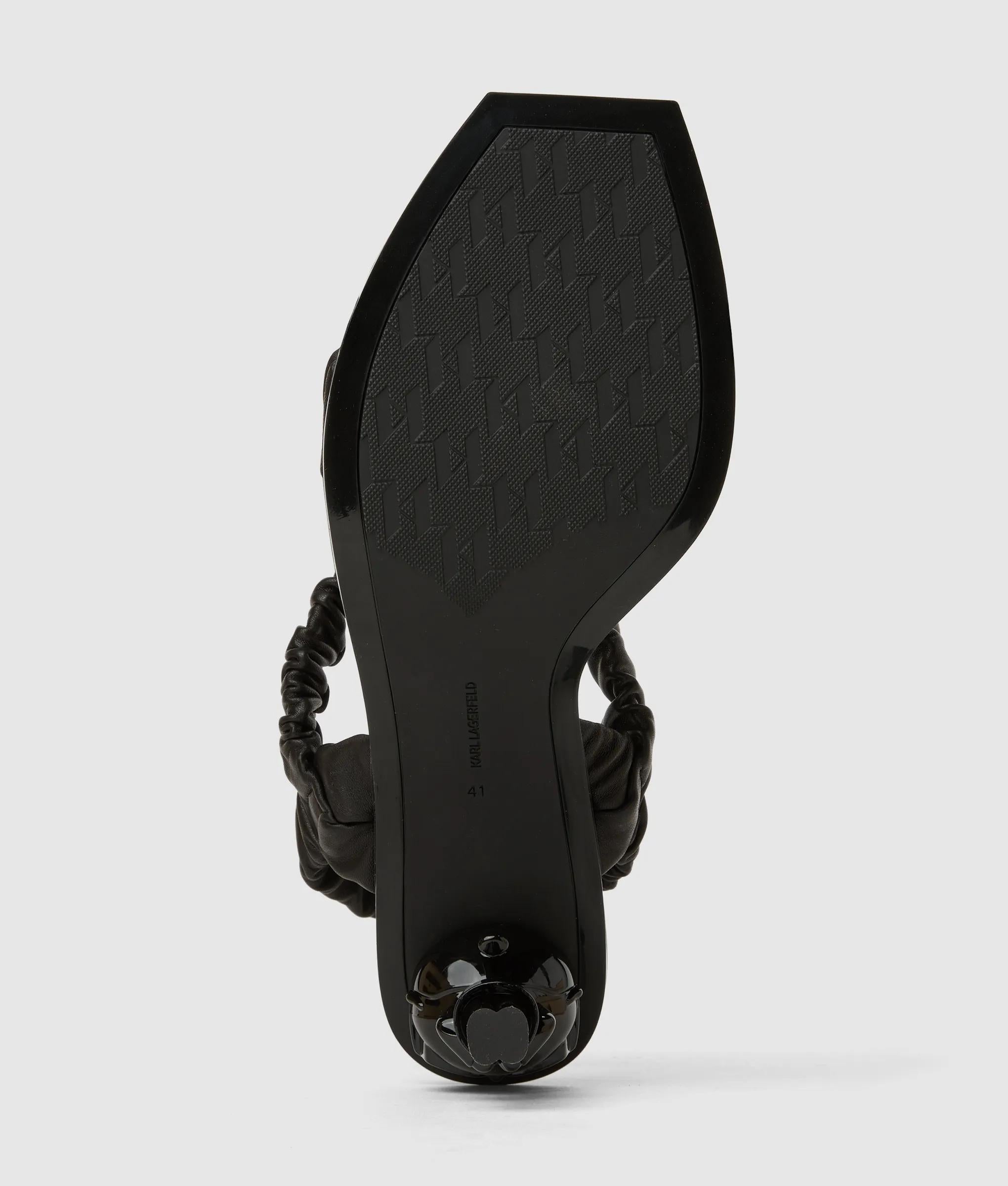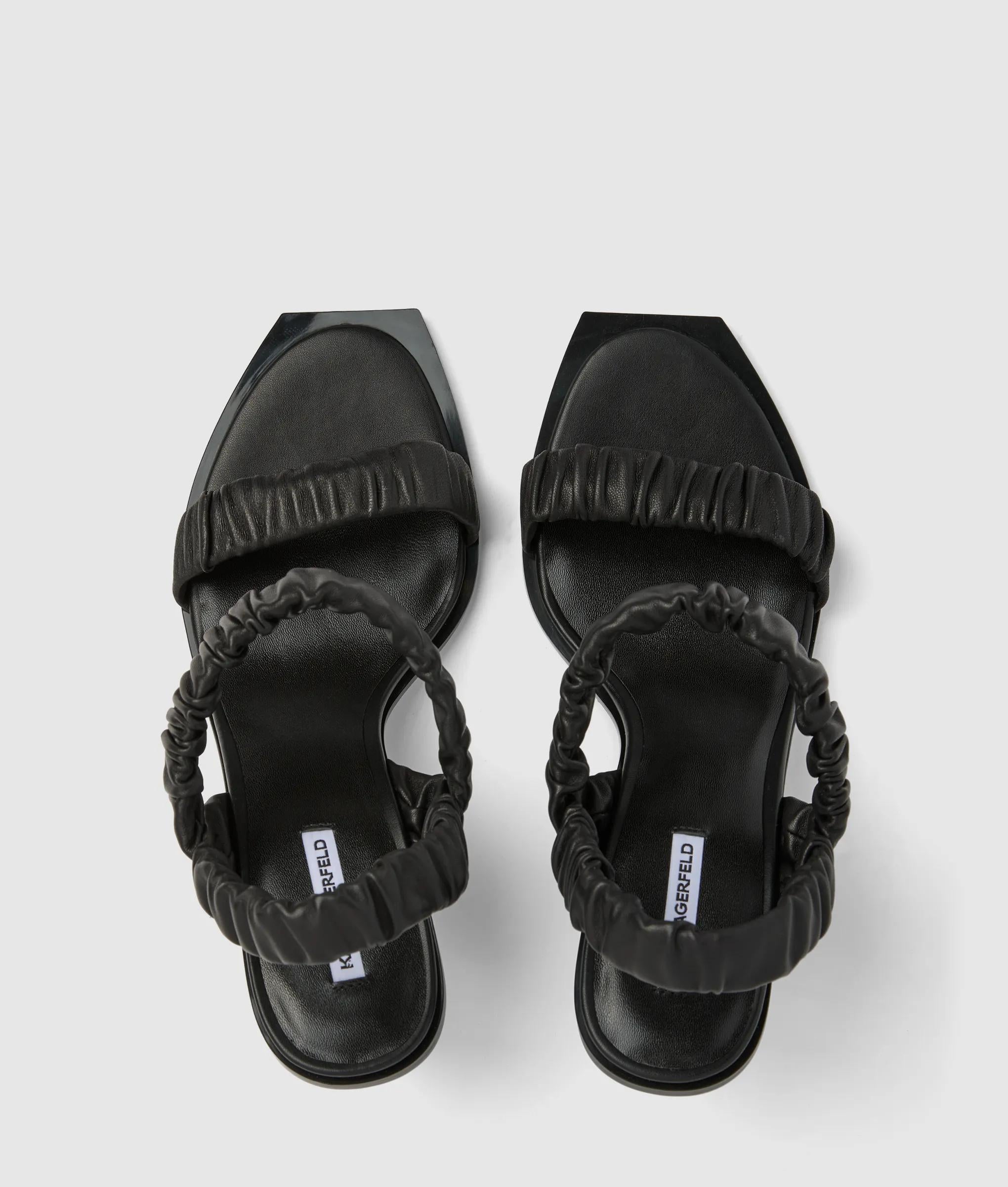 Deze sculpturale slingbacks zijn een nieuwe definitie van moderne elegantie en combineren een chic slip-on silhouet met een speelse Ikon Karl gegoten hak. Tactiele lederen bandjes met ruches geven elke stap extra uitstraling.