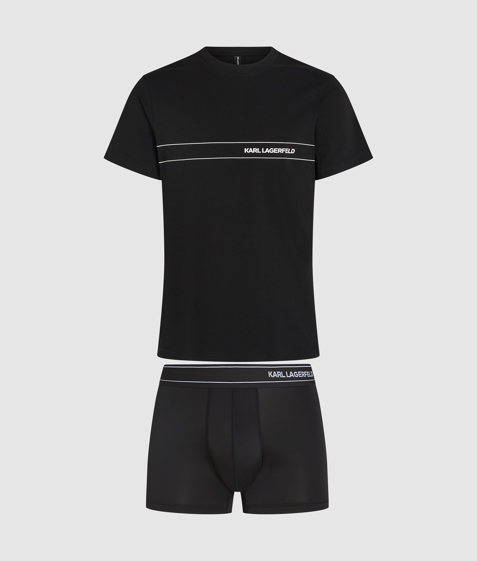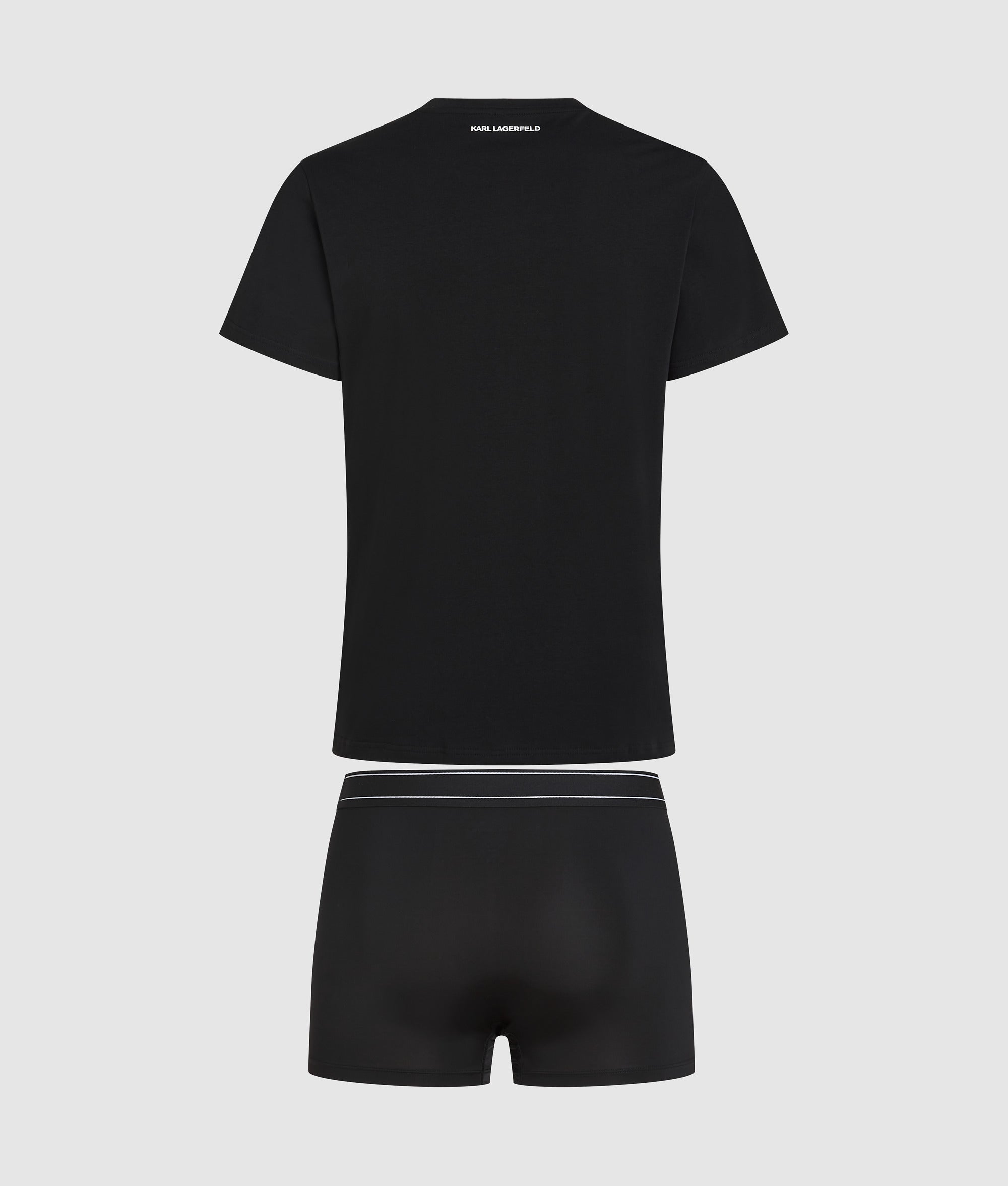 Deze elegante pyjamaset is een ideaal cadeau. De set bestaat uit een T-shirt met korte mouwen met bijpassende boxer. Beide zijn voorzien van het iconische Karl Lagerfeld-logo.