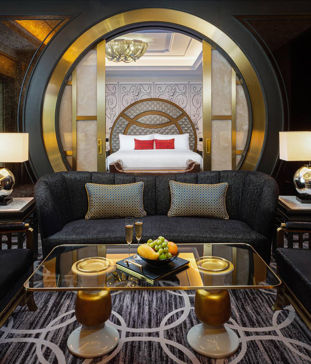 The hotel's 271 opulent guest rooms and suites offer a palatial retreat, with each space showcasing commissioned furniture, Chinoisierie-inspired décor and Art Deco elements. These arresting interiors represent Karl Lagerfeld's contemporary residential sensibility, distinct aesthetic vision and commitment to absolute hospitality. The door to each room is framed in red, a symbol of luck in Chinese culture and a subtle homage to the red frame drawn around each of Karl's iconic design sketches throughout his career.​