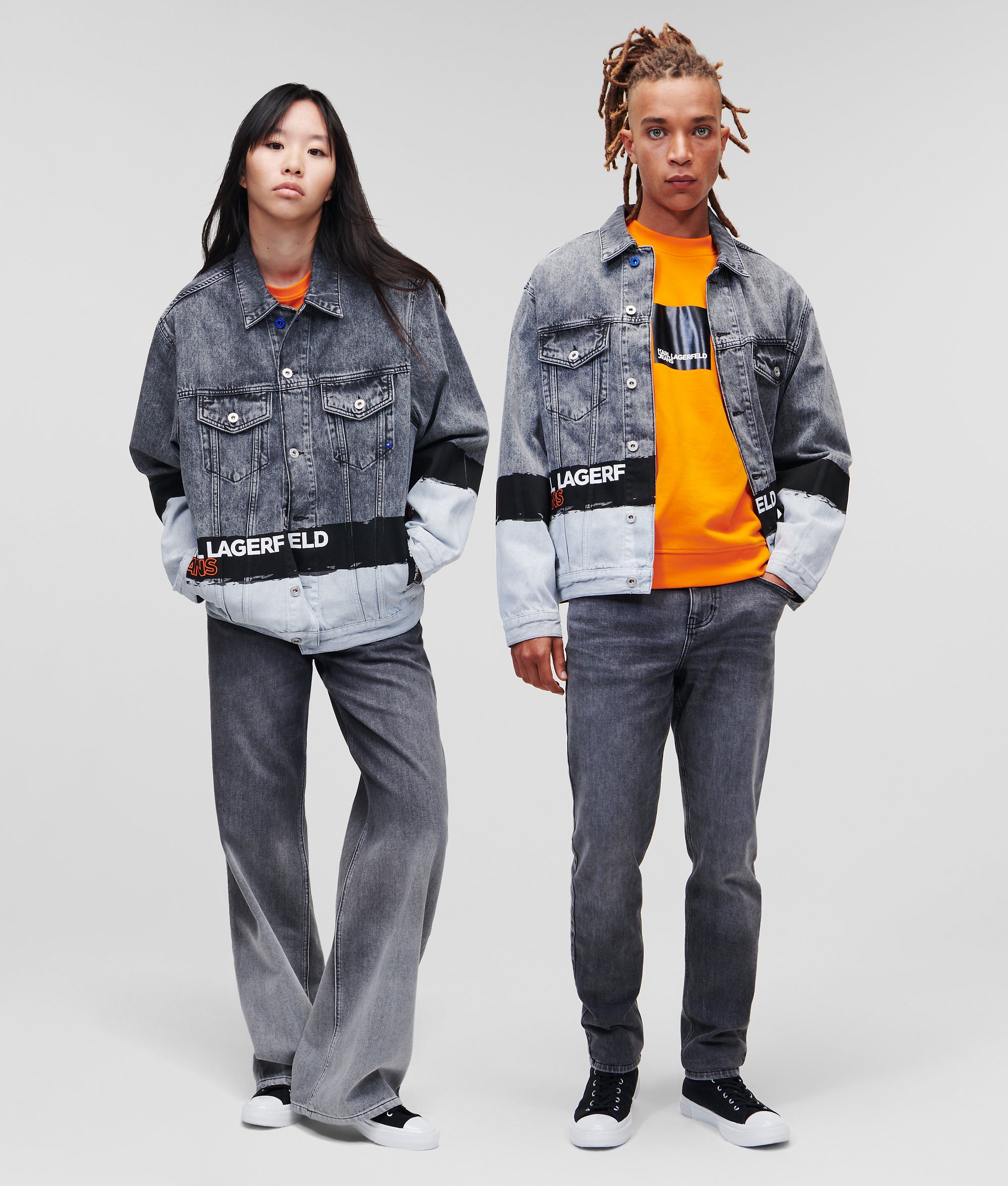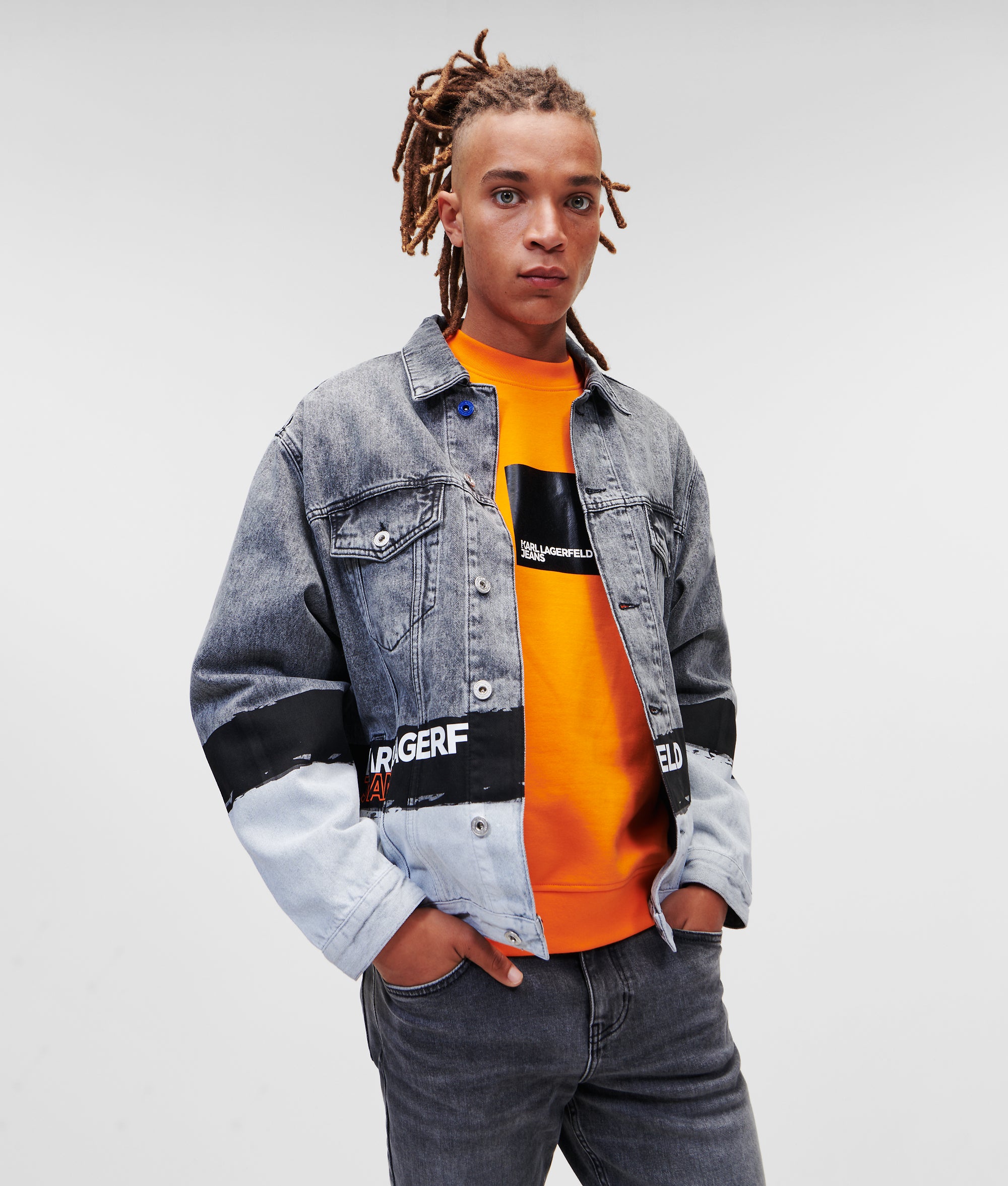 Casual vrijetijdskleding wordt in een nieuw jasje gestoken met deze tweekleurige spijkerjas met grijze wassing. De combinatie van het contrasterende KLJ-logo op de zwarte illustratie met verfeffect op de onderkant van de body en mouwen geeft deze relaxed-fit jas een zelfverzekerde attitude. Ideaal als extra laagje, of u nu een korte broek, joggingbroek of bijpassende slim-fit jeans draagt.