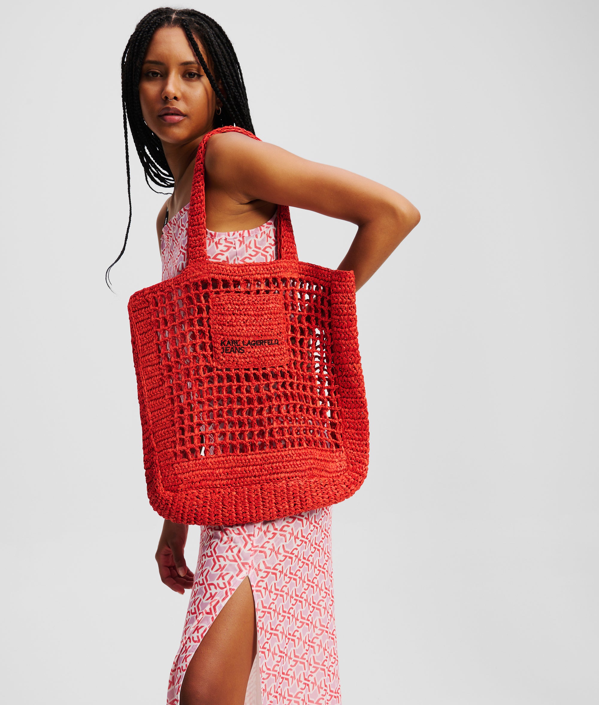 Omarm de vrije geest van de jaren 70 met deze zomerse raffia shopper, perfect voor een ontspannen sfeer op festivals en tijdens vakantie-uitjes. Met een ruim silhouet, dubbele schouderbanden en een KARL LAGERFELD JEANS-logopatch die ook als handige steekzak fungeert, combineert dit opvallende item unieke stijl met functionaliteit.