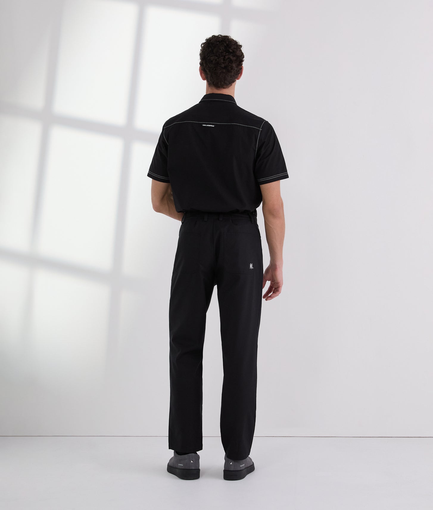 Tijdloze stijl ontmoet moderne flair in deze broek met contrasterende stiksels. Met een glanzende zilveren merkknoop en een klassiek five-pocket-ontwerp bieden ze een uniek model met opvallende stiksels. Het KARL Monogram zorgt voor een stoere afwerking, perfect voor elke garderobe.
