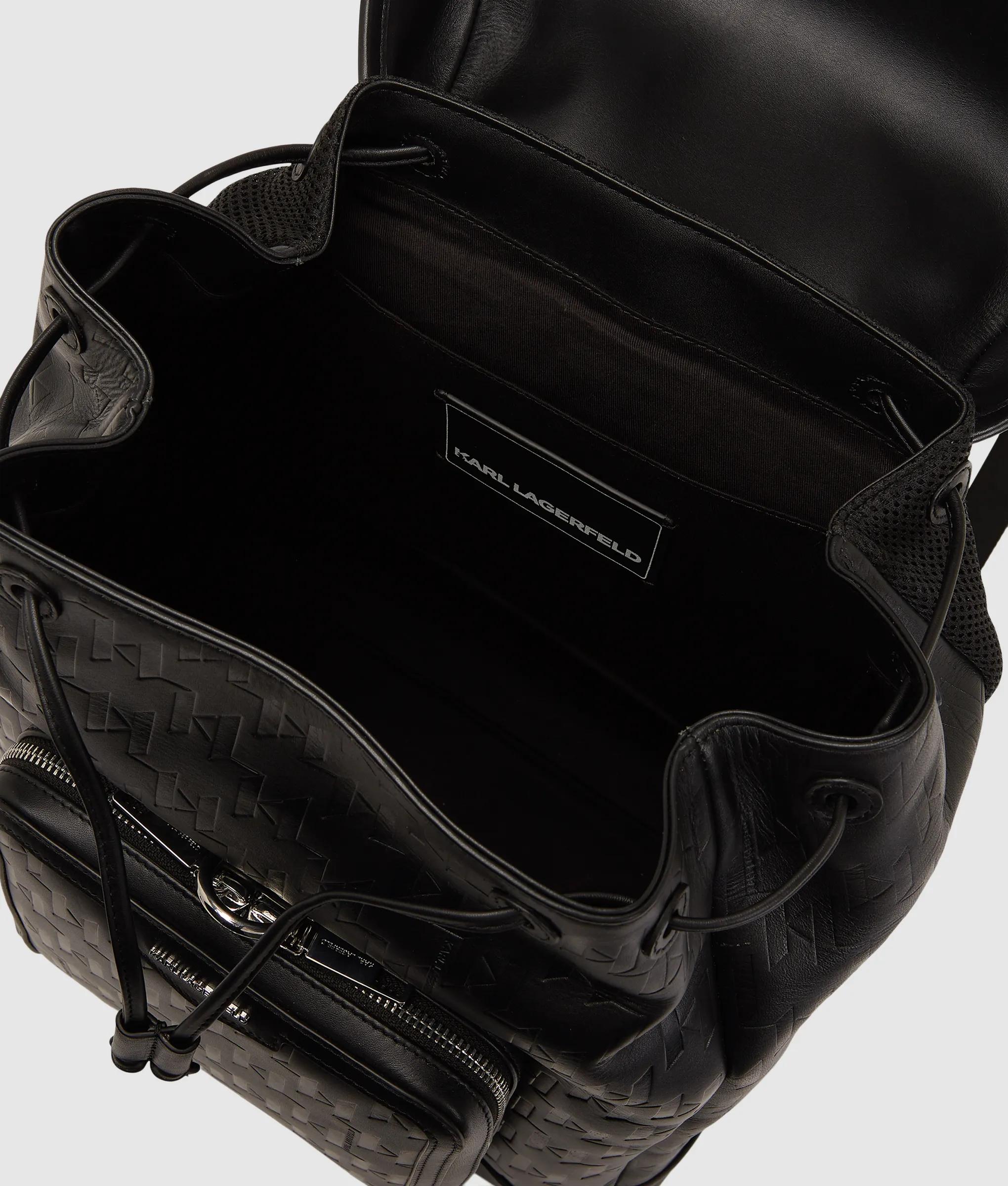Ontdek de perfecte metgezel voor uw dagelijkse verplaatsingen of weekendavonturen in deze slank uitgevoerde rugzak met een stevige gesp op de klep en een opvallend Karl Monogram-dessin. Een voorvak met rits en een speciaal laptopvak bieden optimale organisatie, terwijl de gewatteerde schouderbanden de hele dag door comfort bieden.
