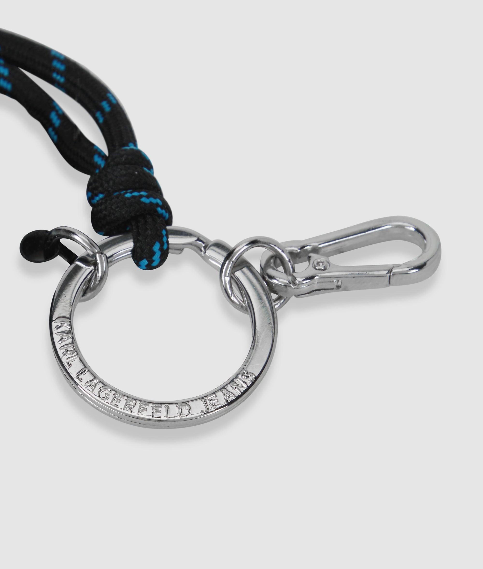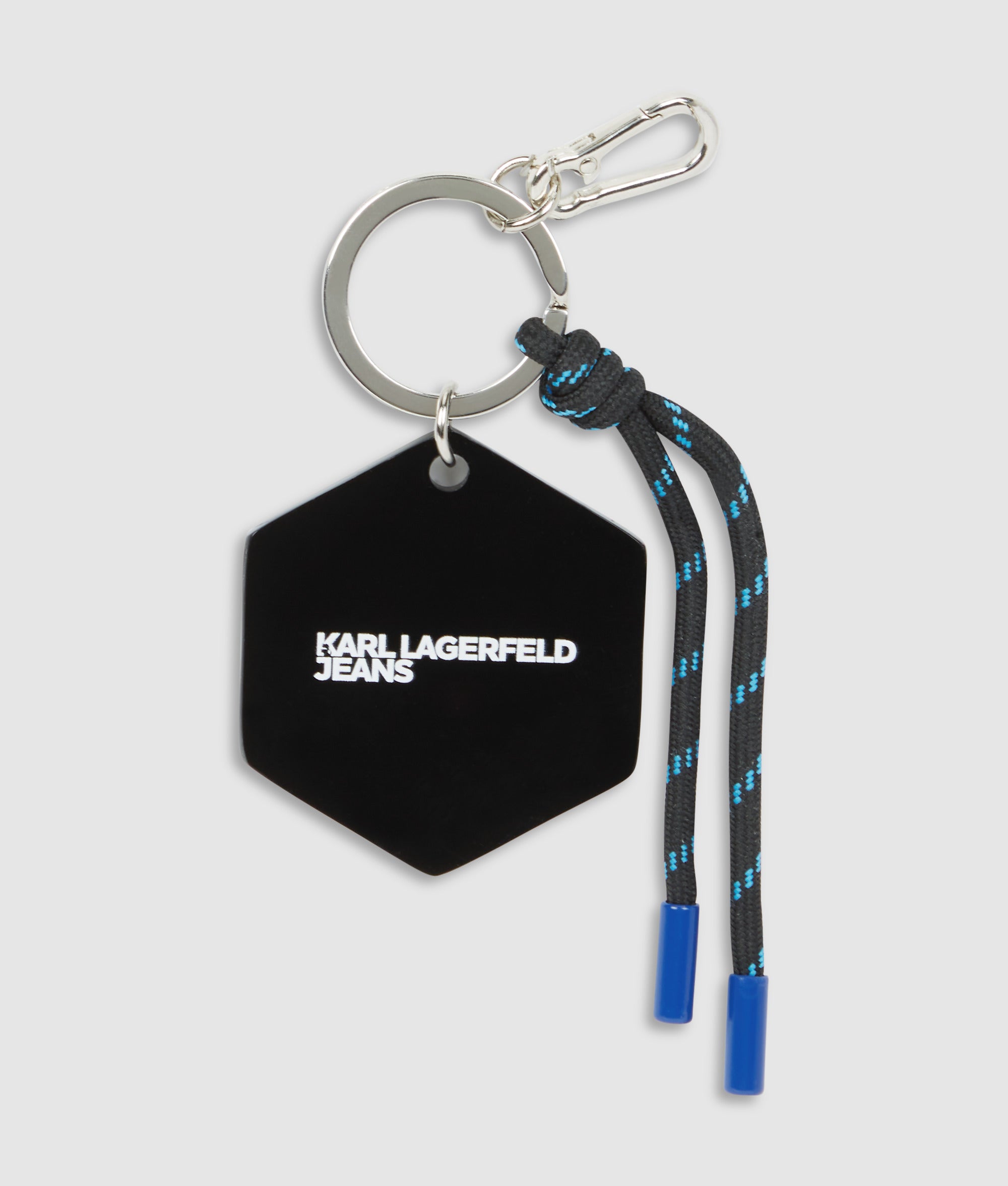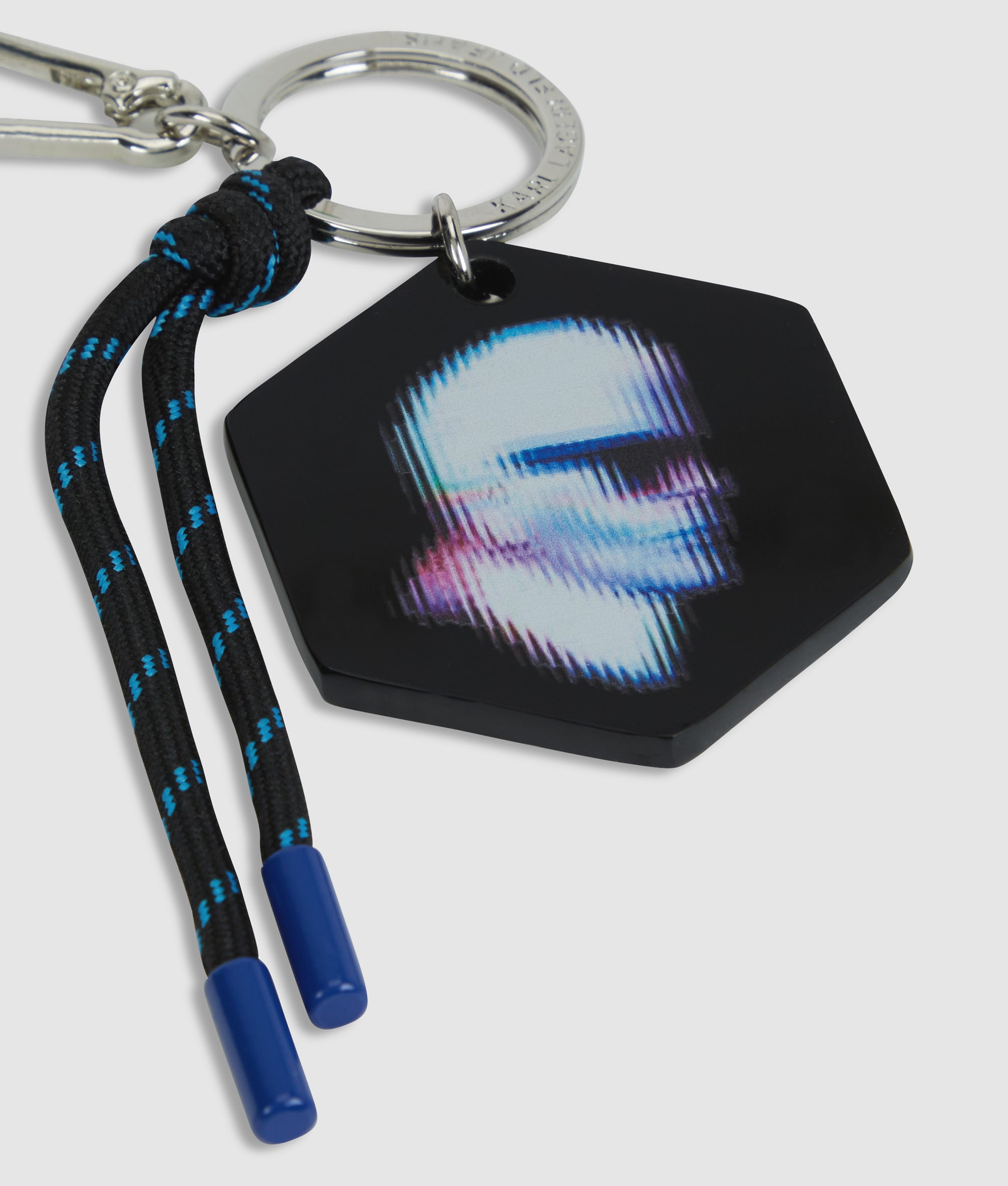 Deze opvallende sleutelhanger combineert met hars verrijkte koorden met een zeshoekige bedel met een opvallende glitch-afbeelding als eerbetoon aan Karl Lagerfeld. Stevige sluitingen zorgen ervoor dat u alles gemakkelijk bij de hand hebt.