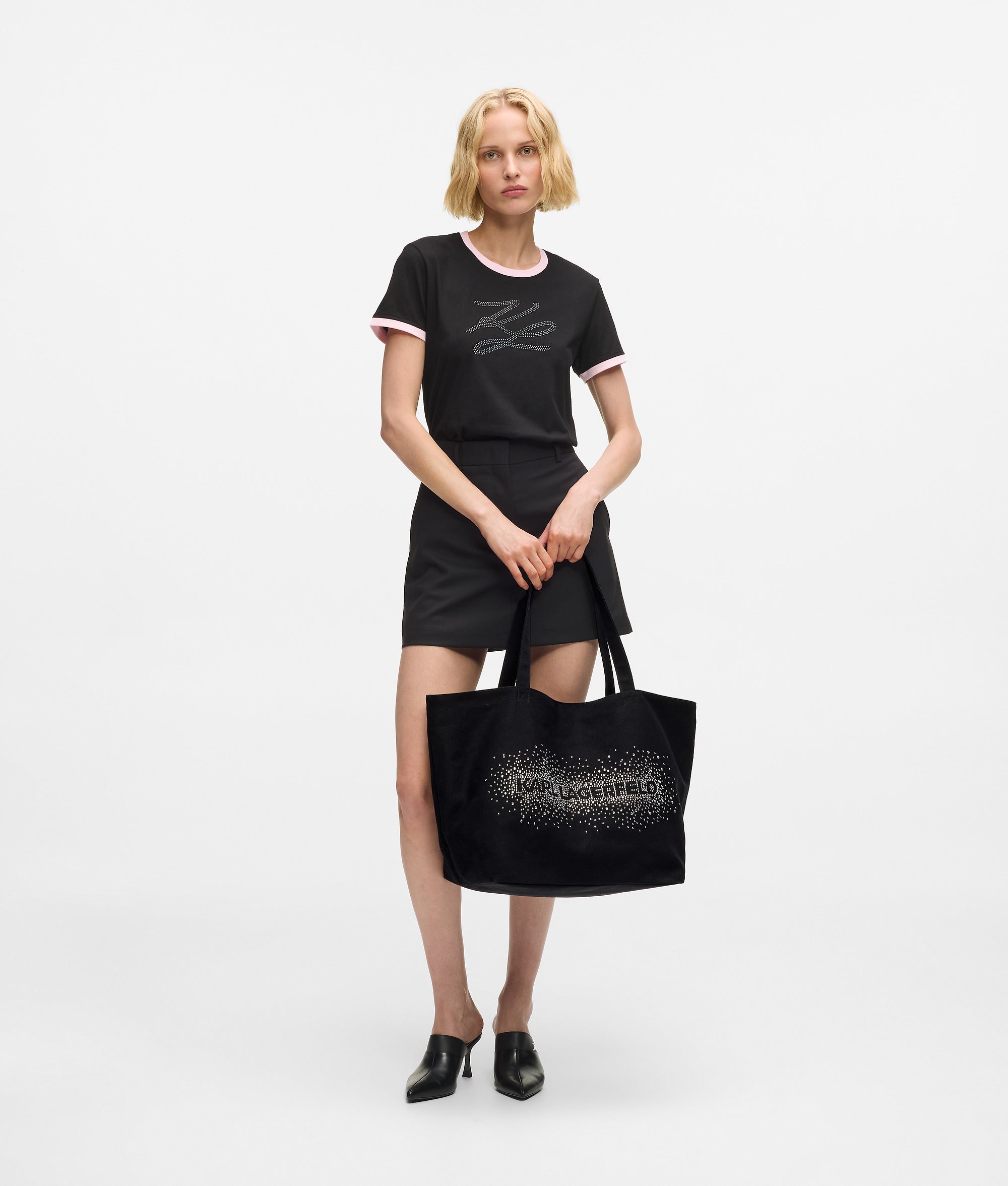 Voeg een vleugje glitter toe aan je dagelijkse accessoires met deze katoenen shopper met glinsterende siersteentjes. De dubbele hengsels en de stevige knoopsluiting zorgen voor extra functionaliteit.